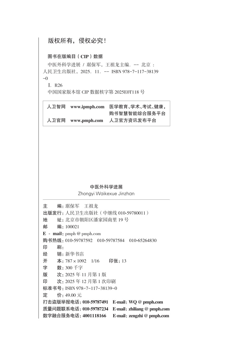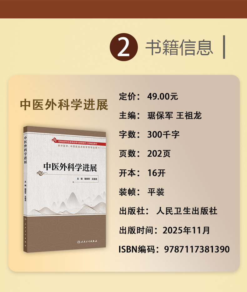 中医外科学进展 琚保军 王祖龙 主编 供中医学、中西医临床医学等专业用 改革创新教材 创新教材 9787117381390 人民卫生出版社