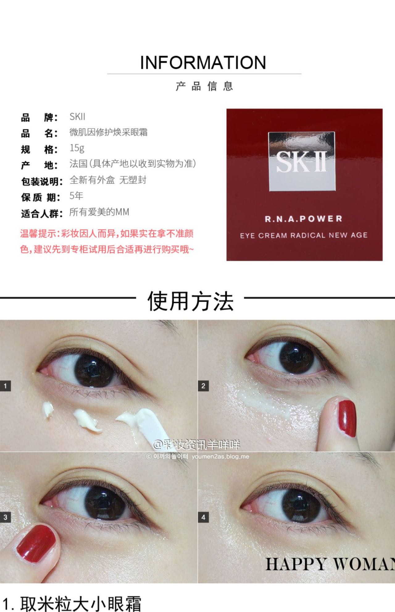 商品名:SK-II赋能焕采眼霜规格:15g 产地:日本 - 全新大眼眼霜- 源自SK-II获奖最多的亢老科技精研出创新的眼部产品 INFINITPOWER技术 SK-II创新注能成分组合,蕴含槲皮素、马蹄莲提取精华、芍药提取精华, 从内到外”充分作用于肌肤的多个层面“源源不断给肌肤补充能量。 这款滋养眼霜,能够让眼部肌肤更加嘭弹饱满,眼部看上去神采奕奕。 - 核心精华成分PITERA,与肌肤天然保湿因子非常相似的天然酵母发酵萃取物, 内含维生素、矿物质、氨基酸和有机酸等50多种微量营养素,可帮助修护肌肤屏障。 柔润、细滑、老化迹象、紧实提拉、减少皱纹, 令肌肤紧致弹性,双眼变大变明亮♥ - 备案文号:国妆网备进字(沪)2020000919 适用肤质:所有肤质通用 生产批号:3214211800 生产日期:大红瓶面霜80g 生产日期2025-7 大红瓶眼霜15g 生产日期 2025-9 保质期:三年包装方式:单独有盒无塑封 储存方式:避免阳光照射,置于阴凉干燥处 快递:中通 申通 发货地:上海 发货时效:24.48.72小时 售后标准:支持七天无理由退换(未拆封且配件齐全,不影响二次销售);质量问题,我司承担退换运费;非质量问题,客户承担退换运费。 ![]() ![]() ![]() ![]() ![]() ![]() ![]() ![]() ![]() |
