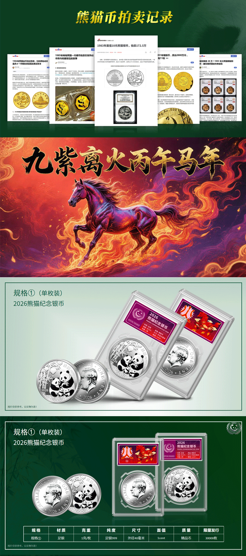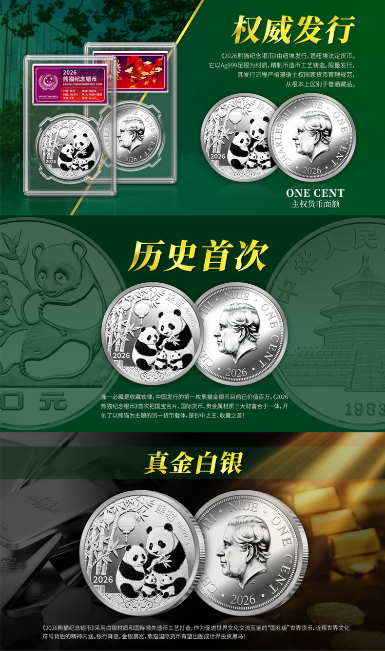 热卖中!!《2026熊猫纪念银币》 纽埃法定货币 含1克Ag999足银