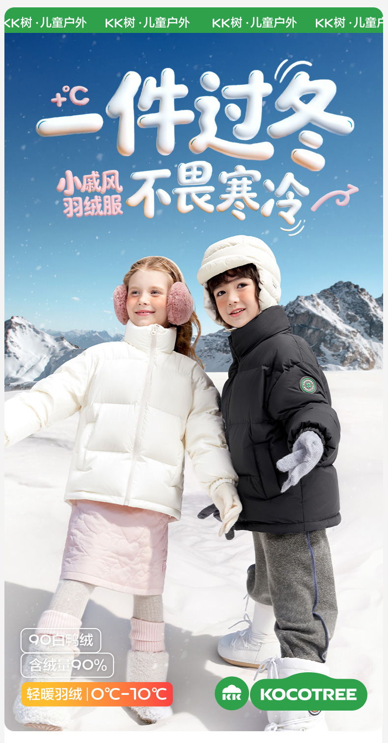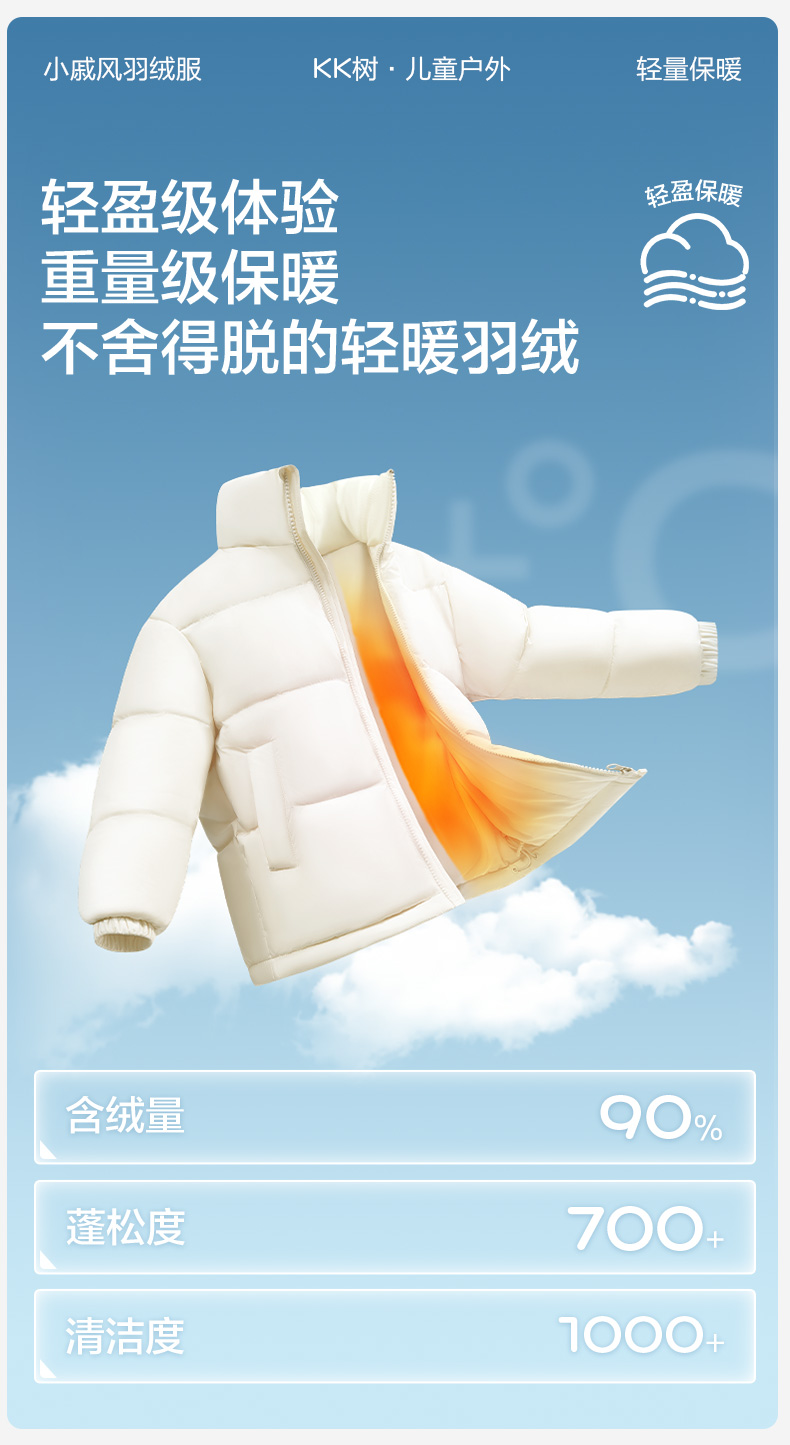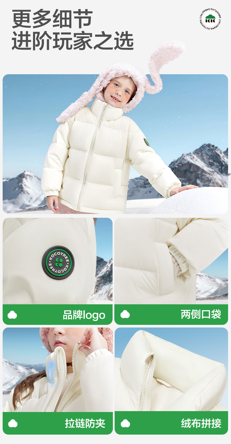KK树儿童羽绒服90白鸭绒男童女童短款冬装新款童装宝宝羽绒外套小戚风羽绒服