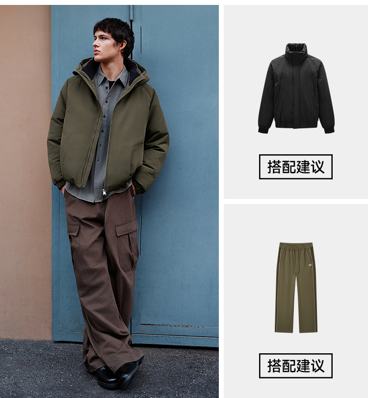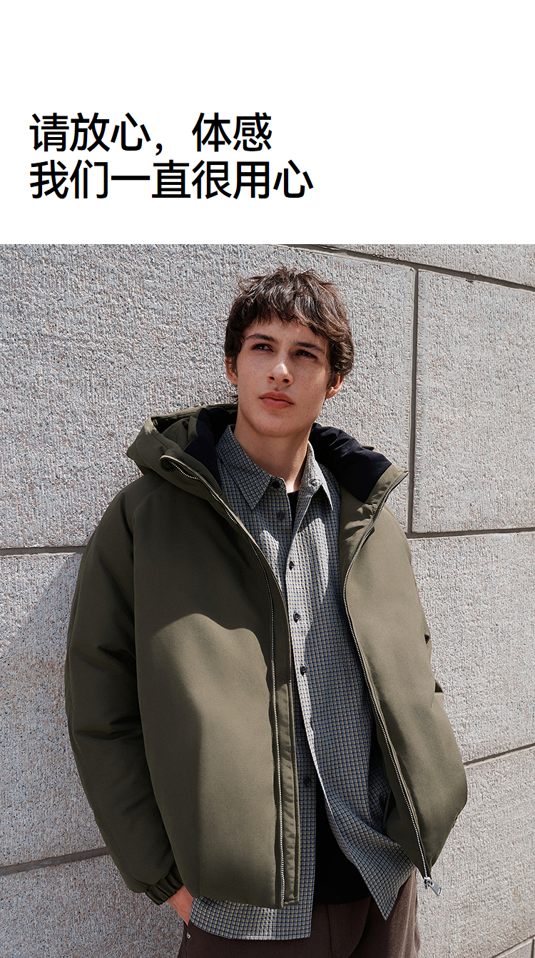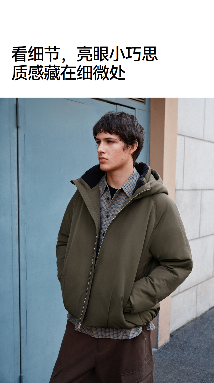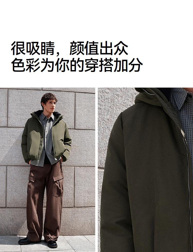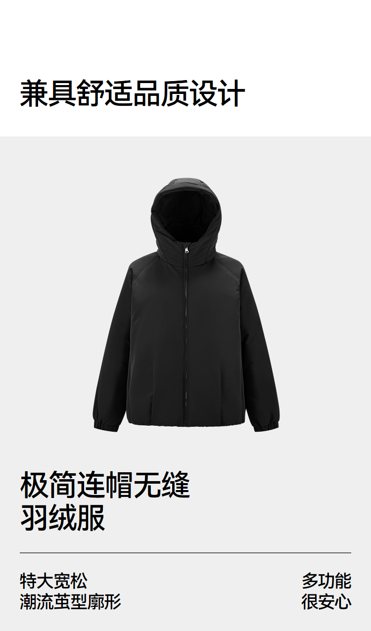 森马羽绒服男无缝极简茧型廓形外套防风三防冬装2025新款连帽上衣
