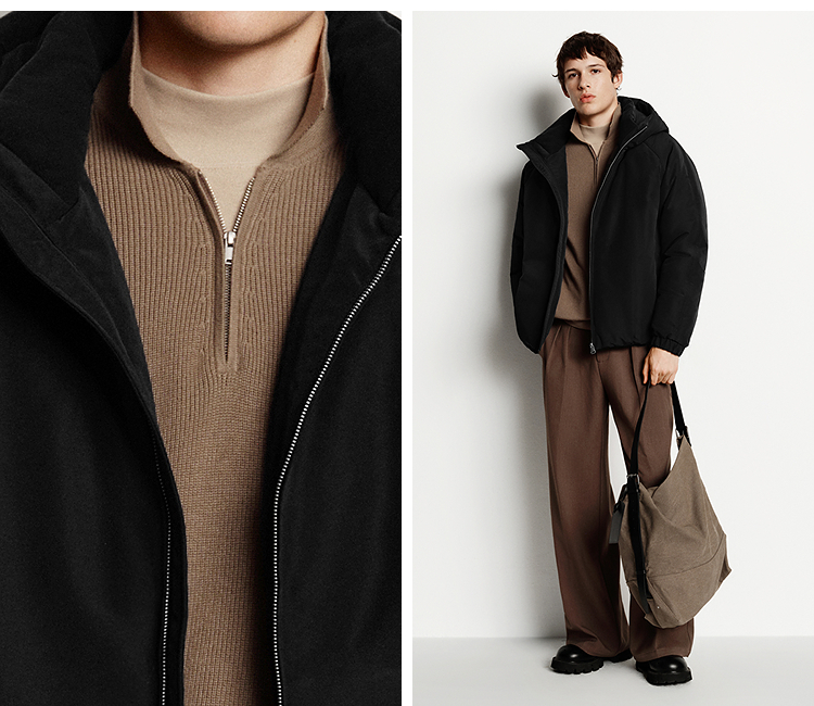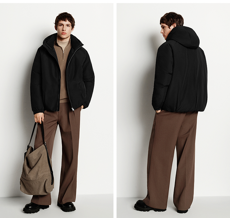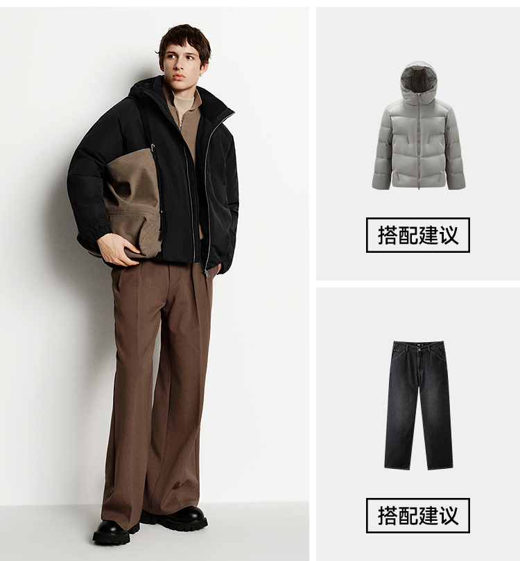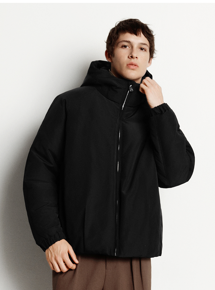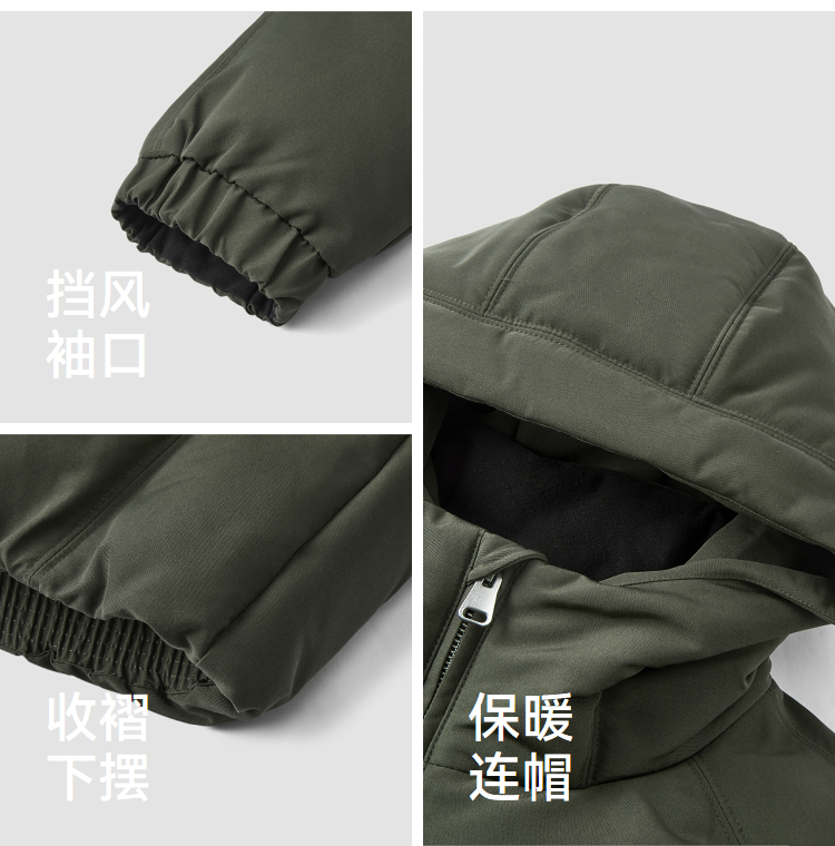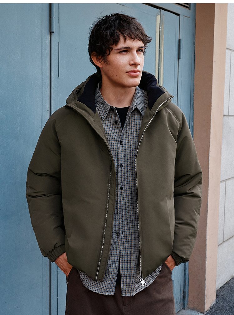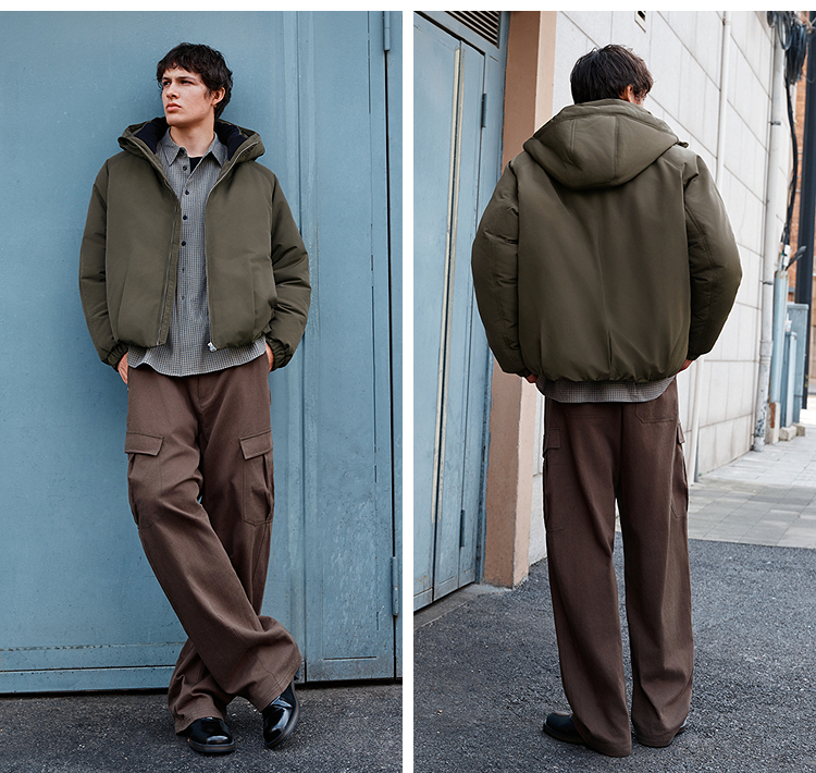 森马羽绒服男无缝极简茧型廓形外套防风三防冬装2025新款连帽上衣