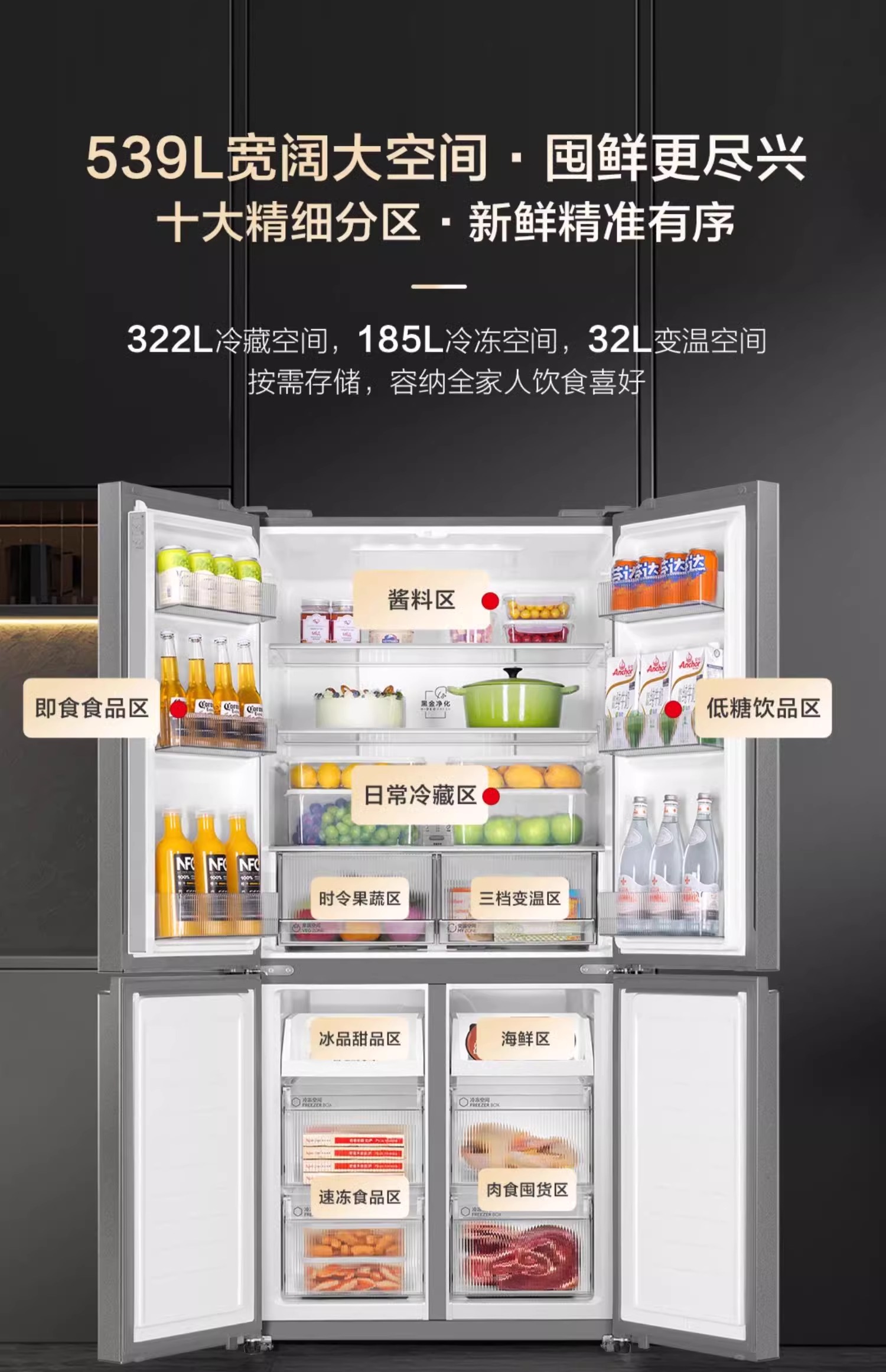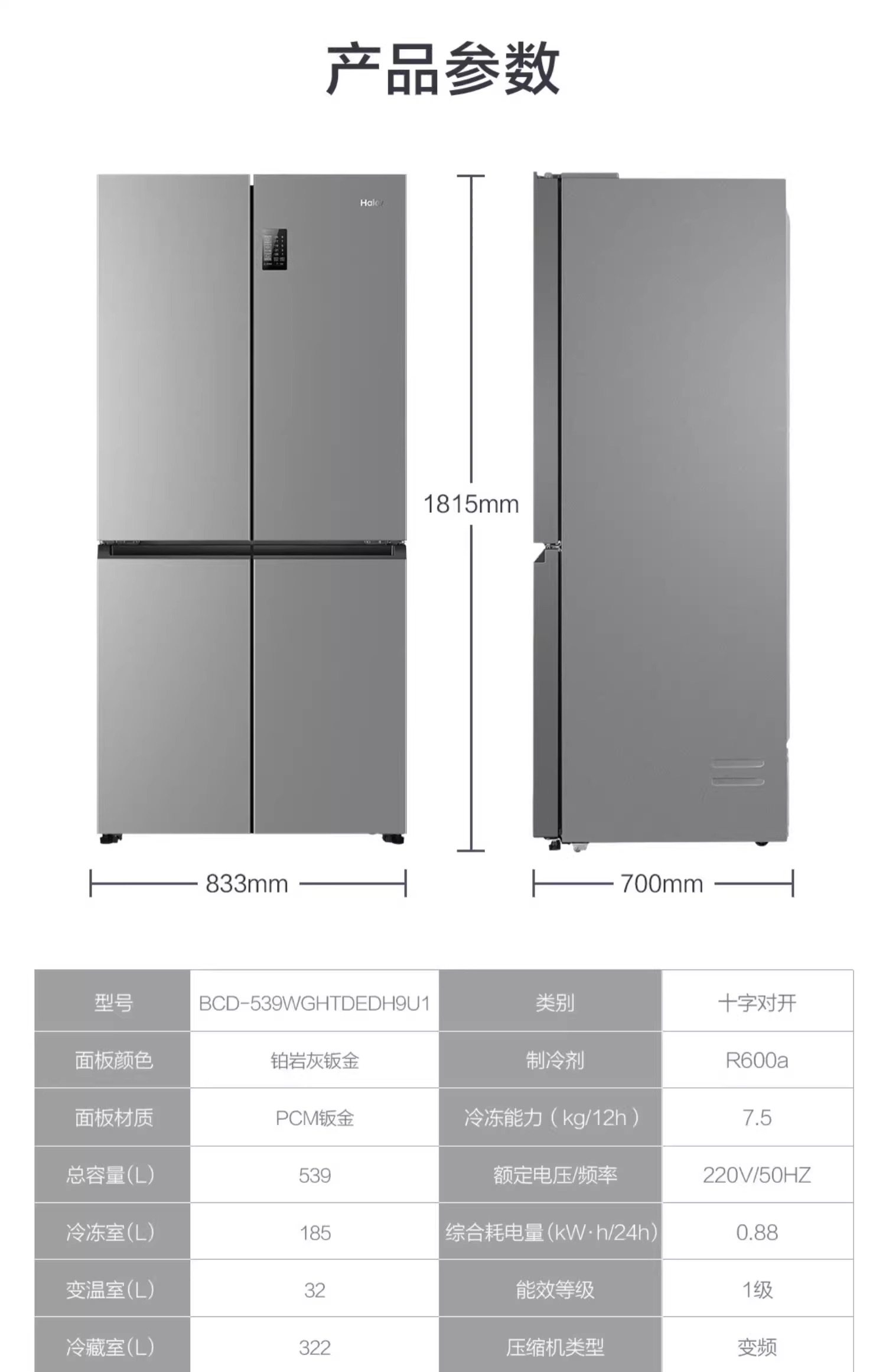 海尔(Haier)539升十字四开双开门风冷无霜家用电冰箱一级能效BCD-539WGHTDEDH9U1