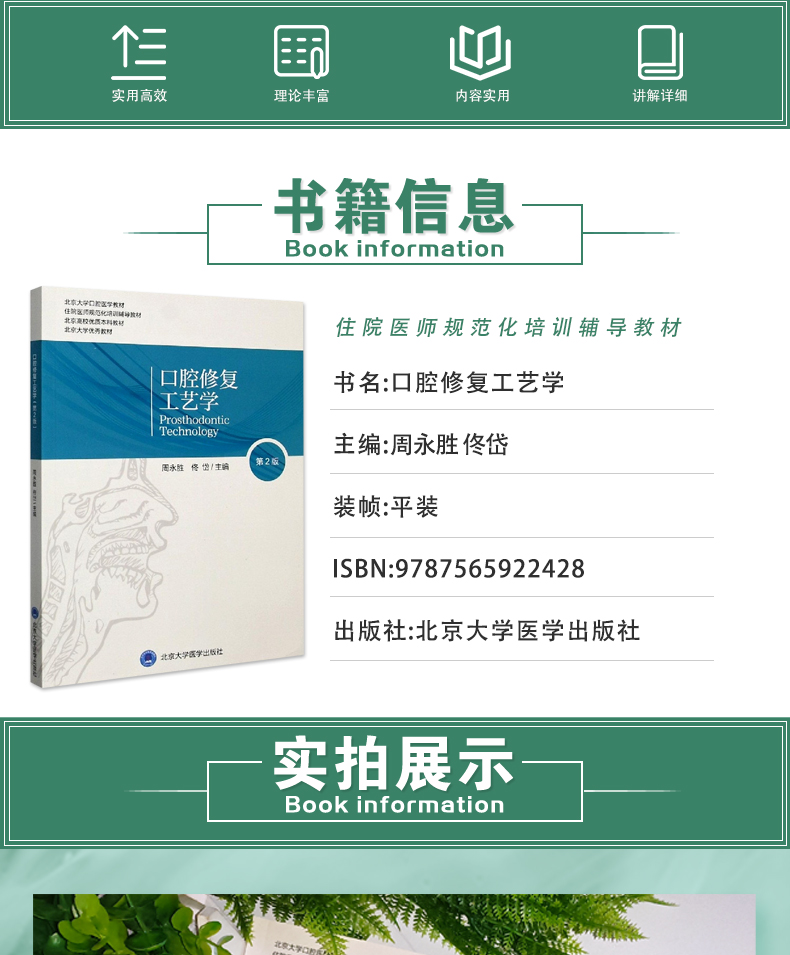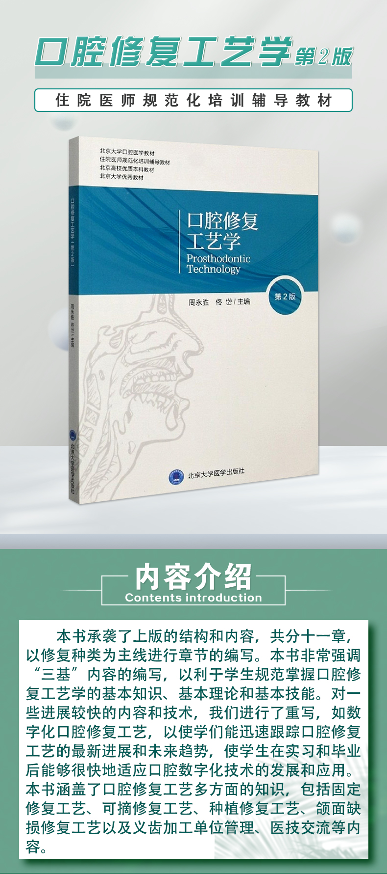 口腔修复工艺学 第2版 北京大学口腔医学教材 住院医师规范化培训辅导教材 周永胜 佟岱 主编 北京大学医学出版社9787565922428