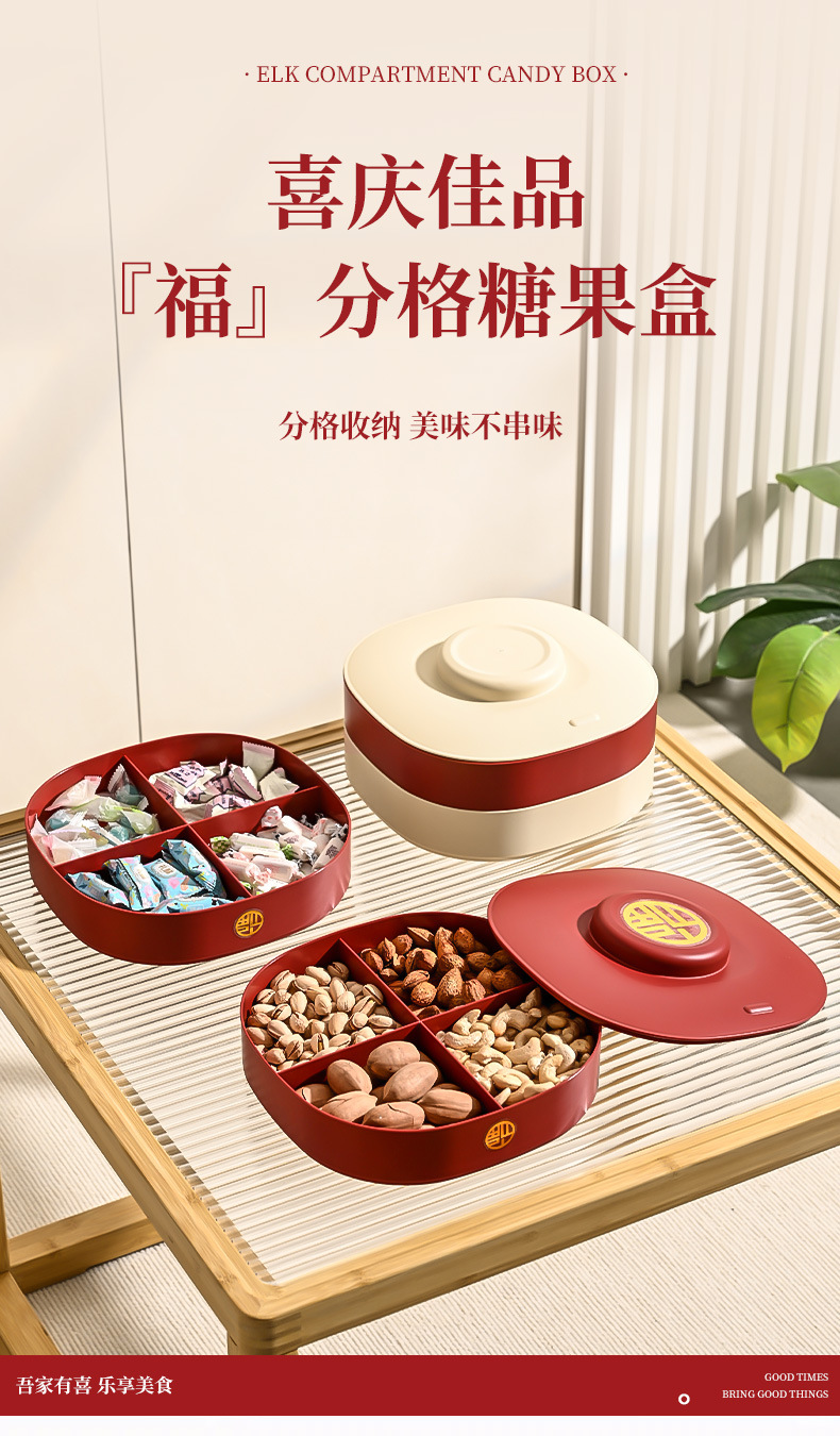 【新年好物!喜庆佳品】过年糖果盒红色福字家用干果盒客厅瓜子零食坚果分格收纳果盘,年味齐分享,待客倍有面子。ry