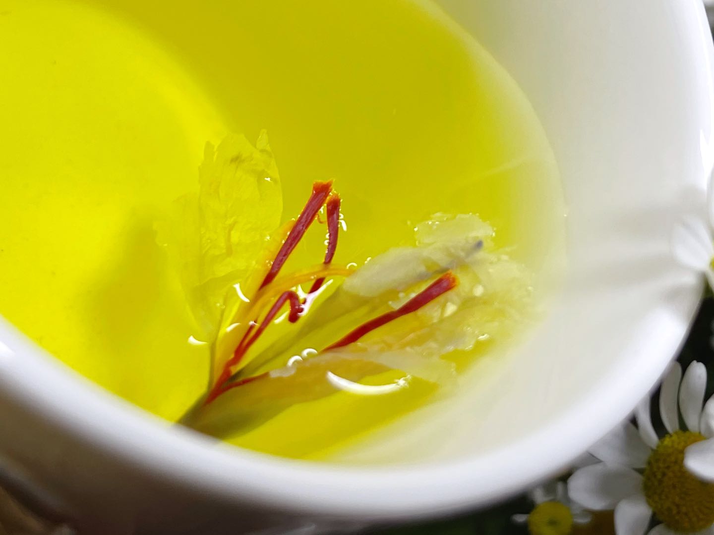 泡水喝:每次用藏红花原花1-2朵泡水,一边喝藏红花茶一边欣赏水中绽放的藏红花,感受那特异的芳香,仿佛置身于百花丛中。