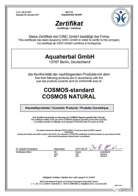 大家都知道德国人是以专业、严谨著称的。德国的BDIH的天然认证可以说是相当严苛了(BDIH是德国有机护肤品市场最有权威的认证)。必须使用经过管制的、符合生态原则种植的植物,或由野外植物采集而制成的植物性原料,光是这个条例就让一大批同类品牌被Pass掉。
