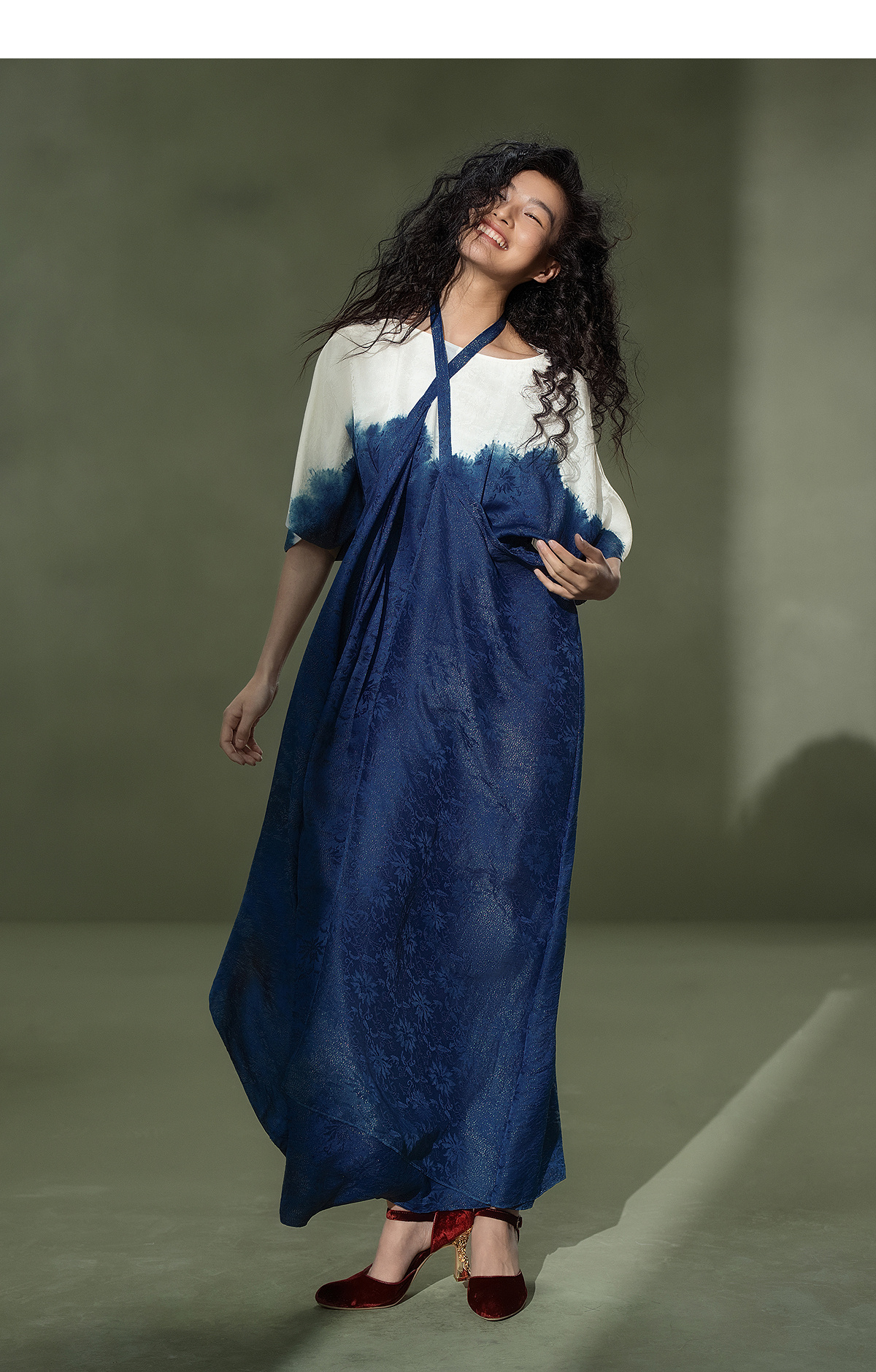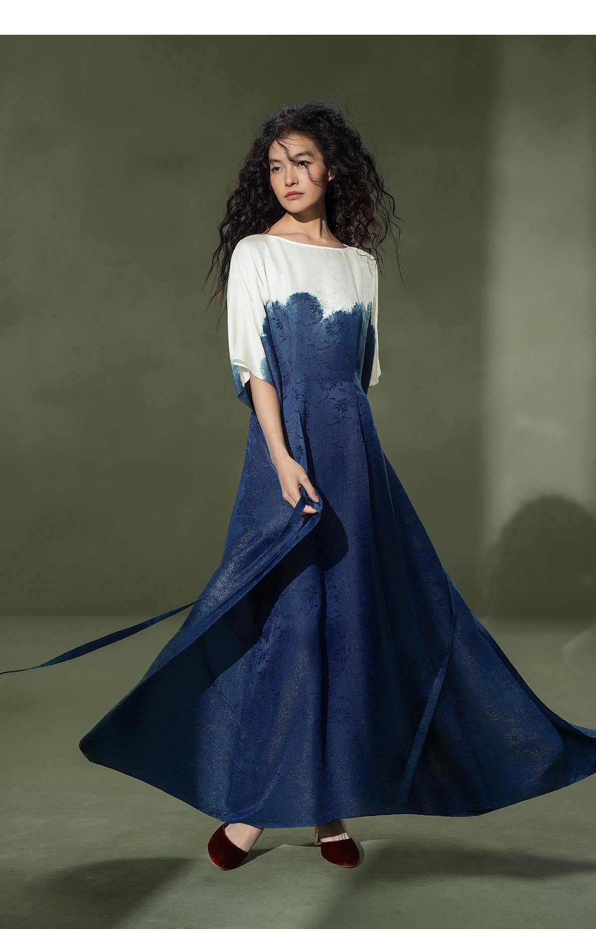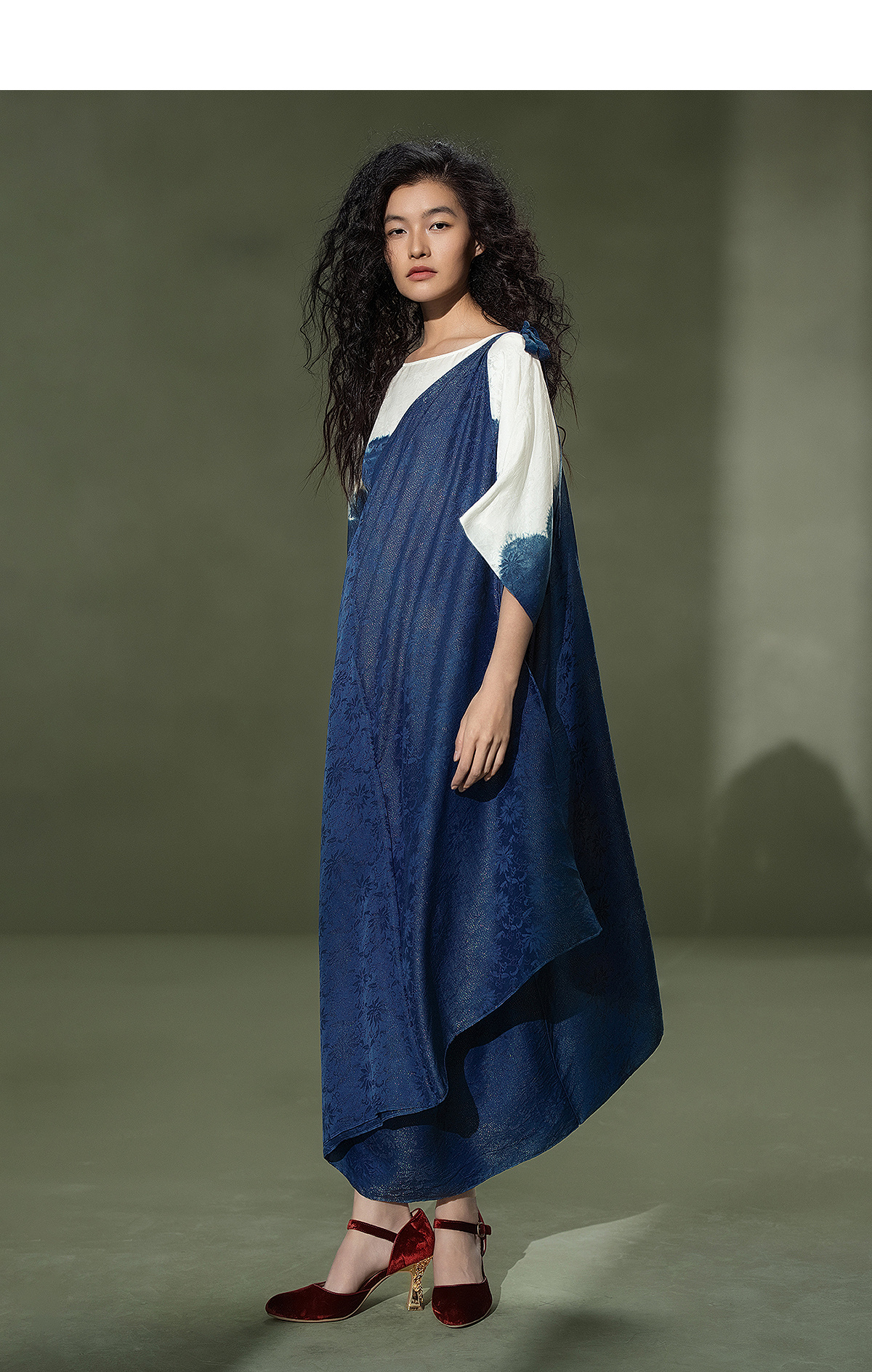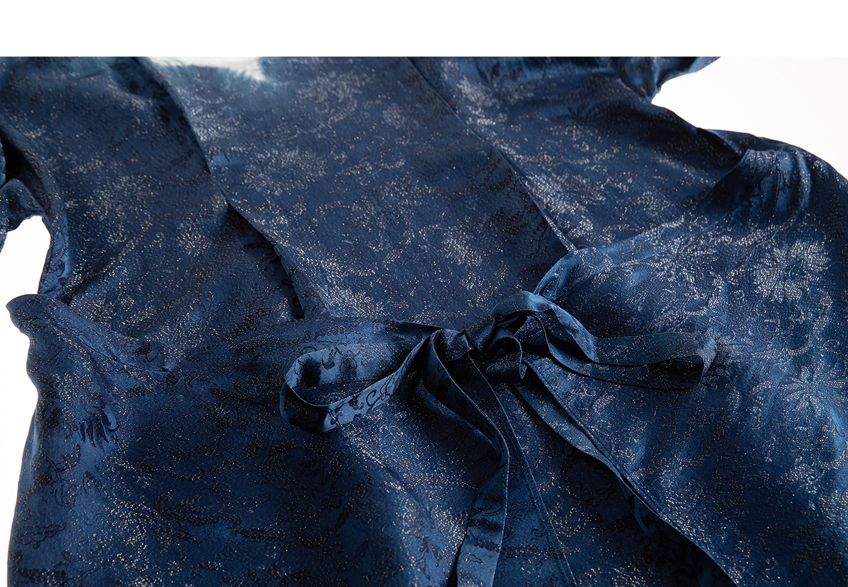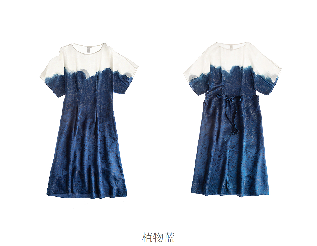 【林栖设计小店】植物染色|手工植物蓝金线提花宽松百搭2026夏新款连衣裙1962052
