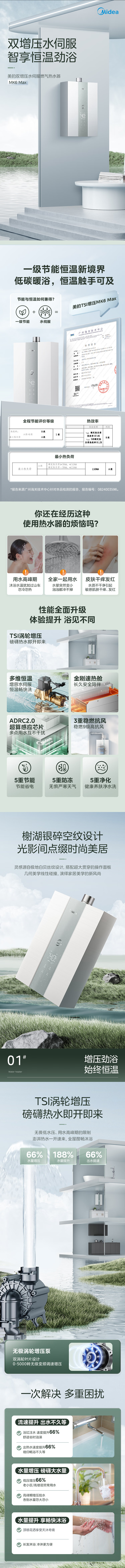 美的(Midea)(13136 )16L燃气热水器 天然气 TSI涡轮双增压水伺服 智控增压恒温 一级节能 以旧换新JSQ30-MK6 Max