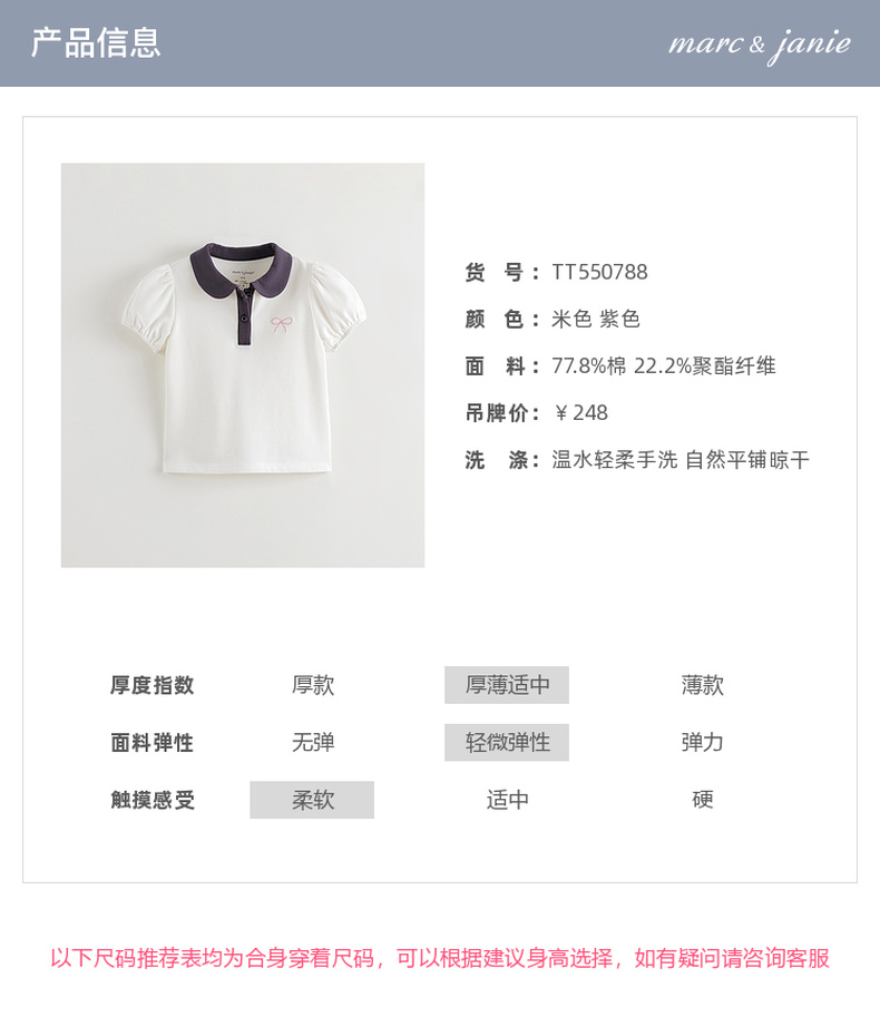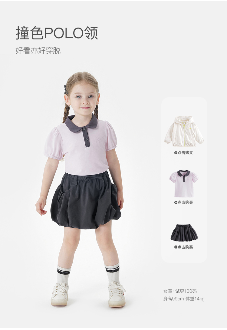 【凉感快干】马克珍妮女童甜美泡泡袖polo短袖T恤夏装新款550788