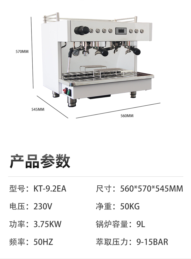 KT9.2EA欧罗巴LUROPA半自动商用意式双头咖啡机铜锅炉温度时间显示PID电控