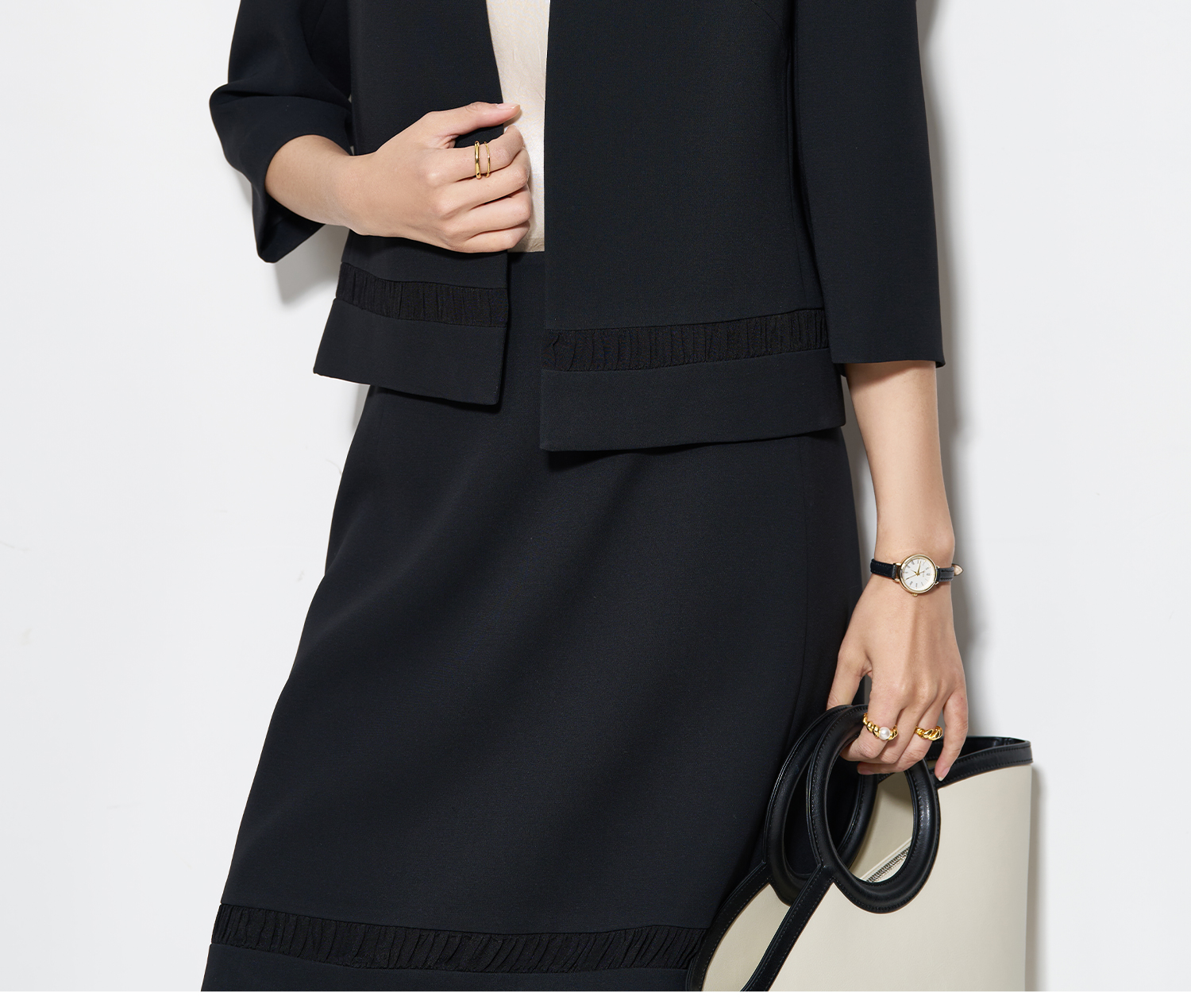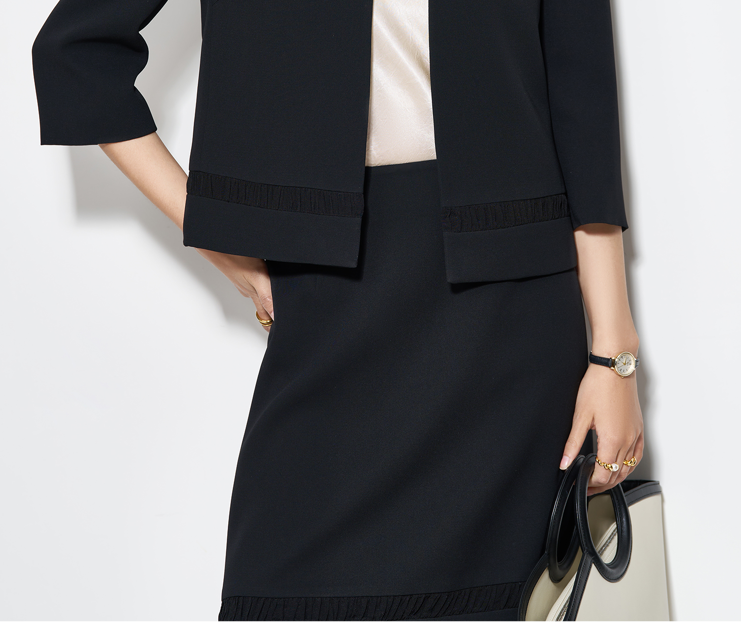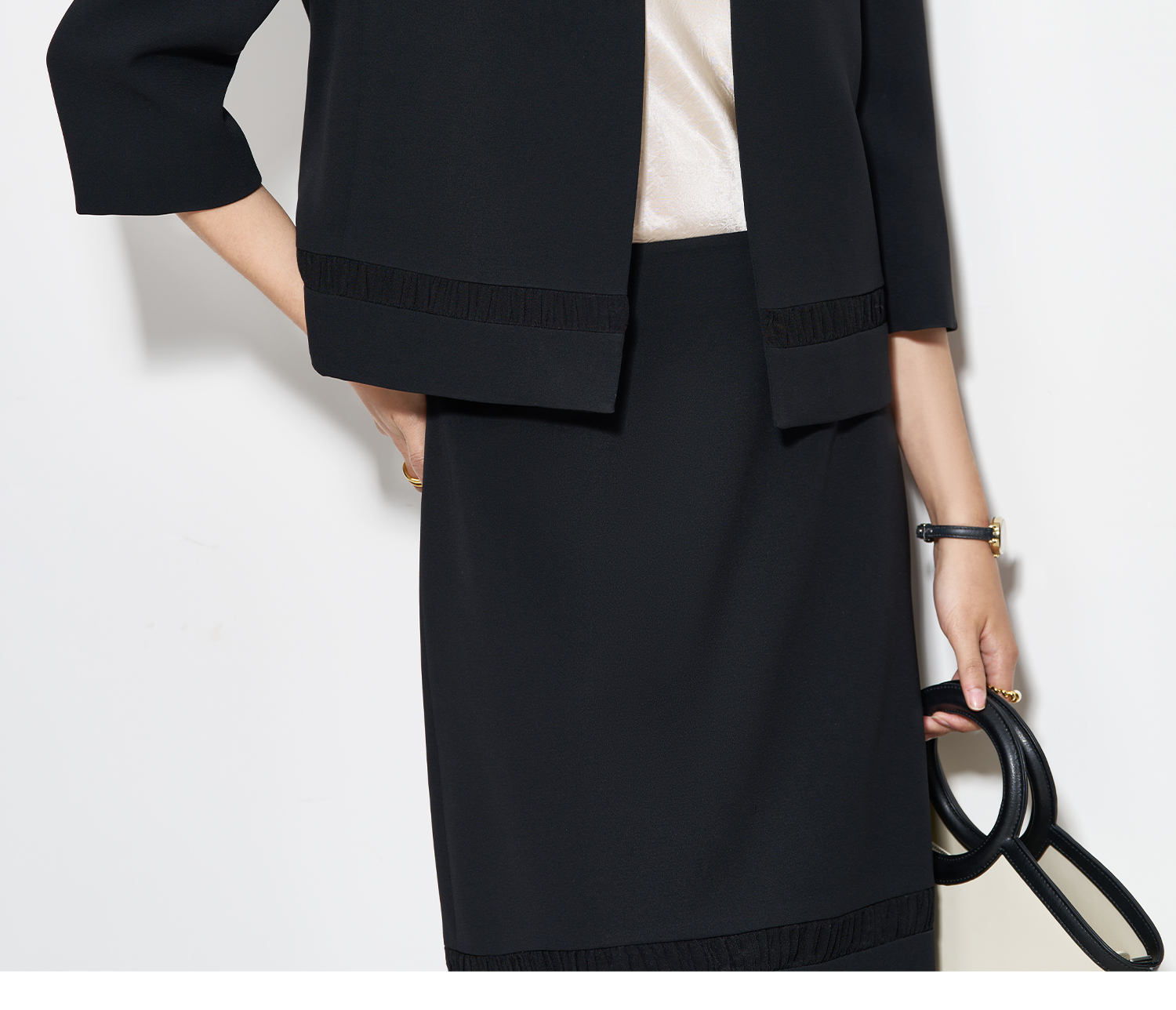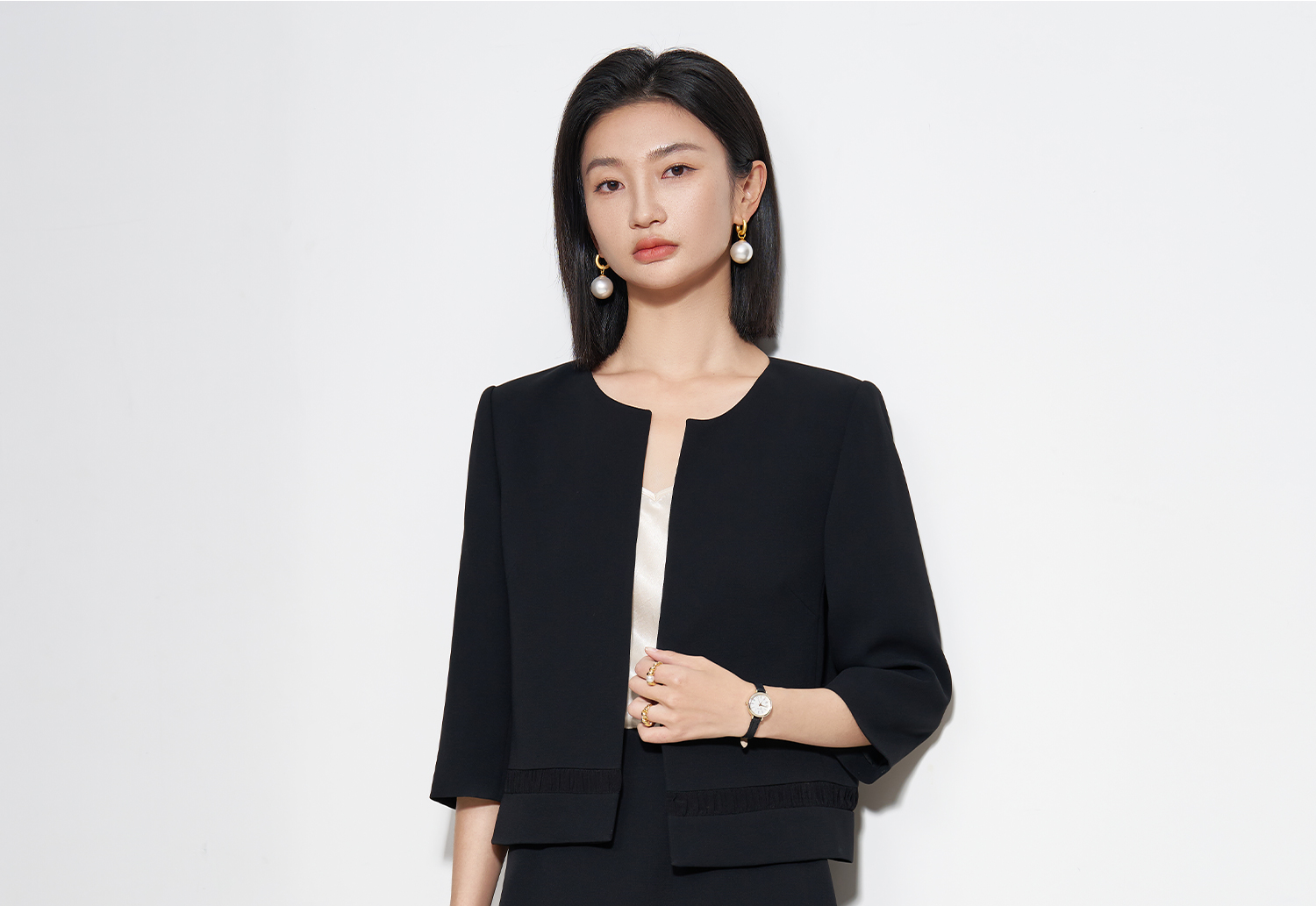 奢适黑醋酸短外套 低调哑光质感 米思阳2026春季新款气质通勤小个子开衫上衣女5661
