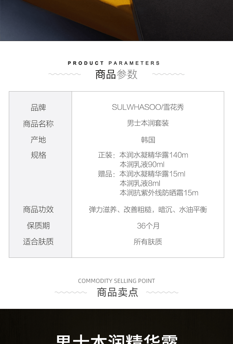 Y LPY 韩国SULWHASOO/雪花秀男士本润水乳二件套装