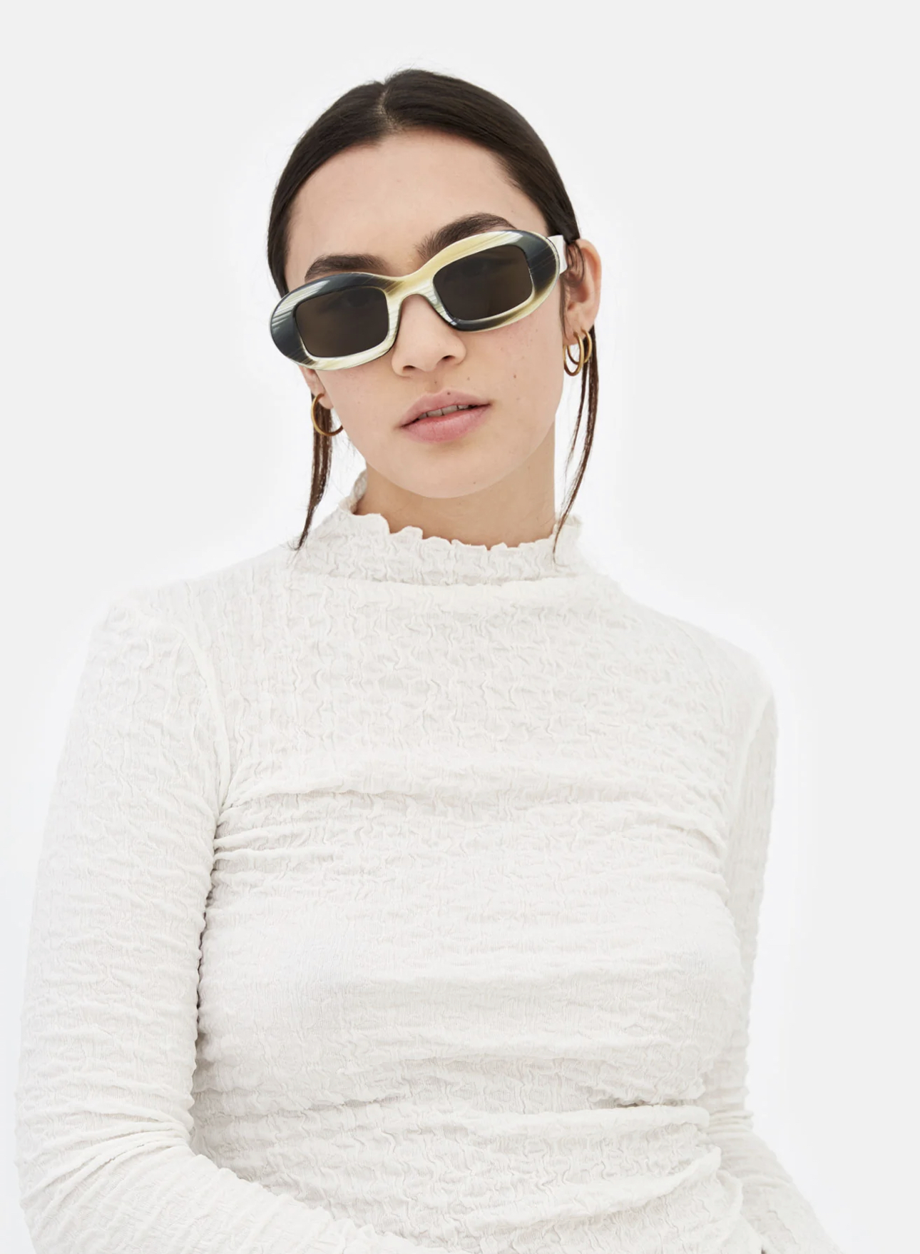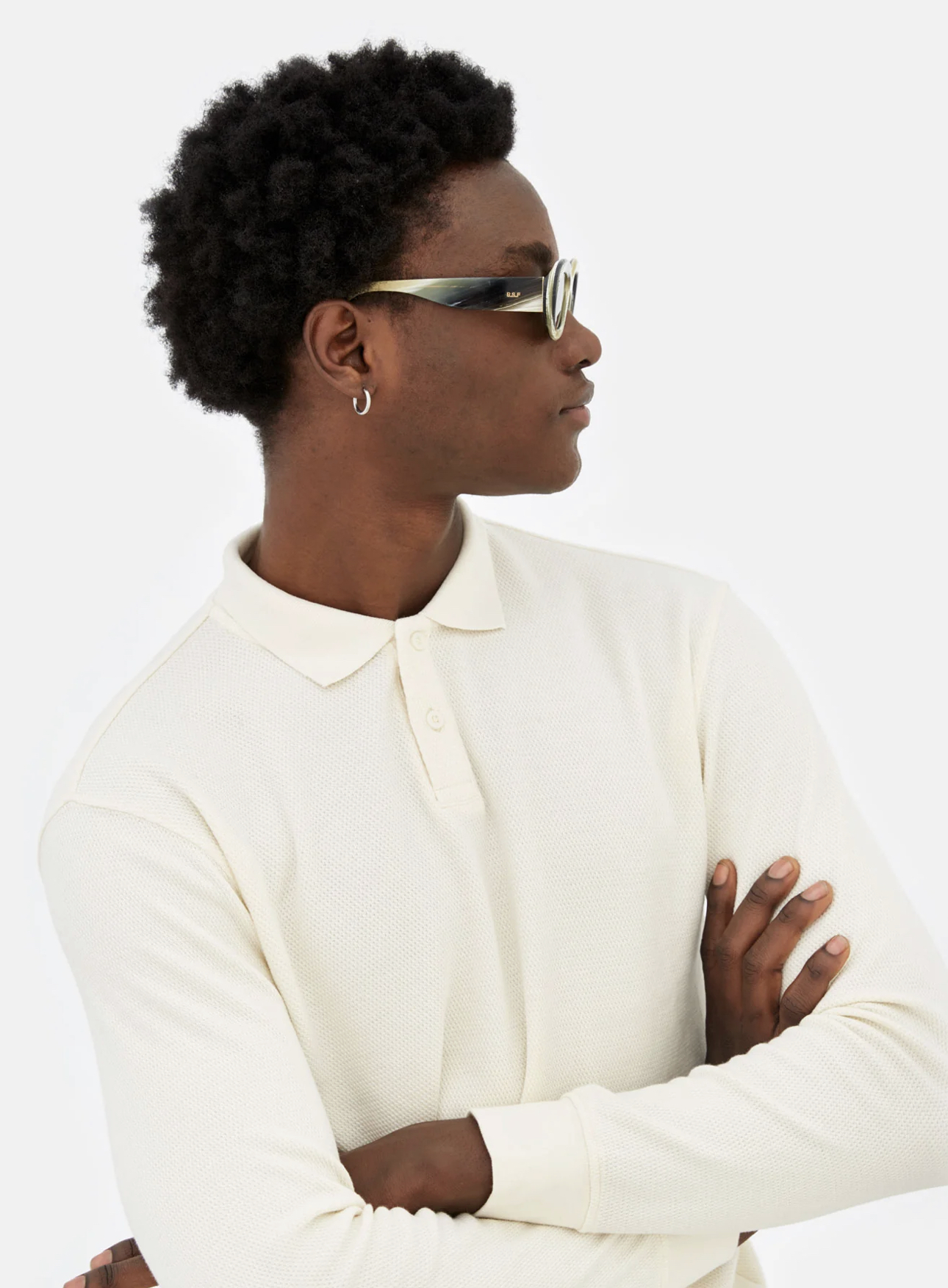 TYNVIE 木耳边装饰镂空长袖上衣-黑白波点