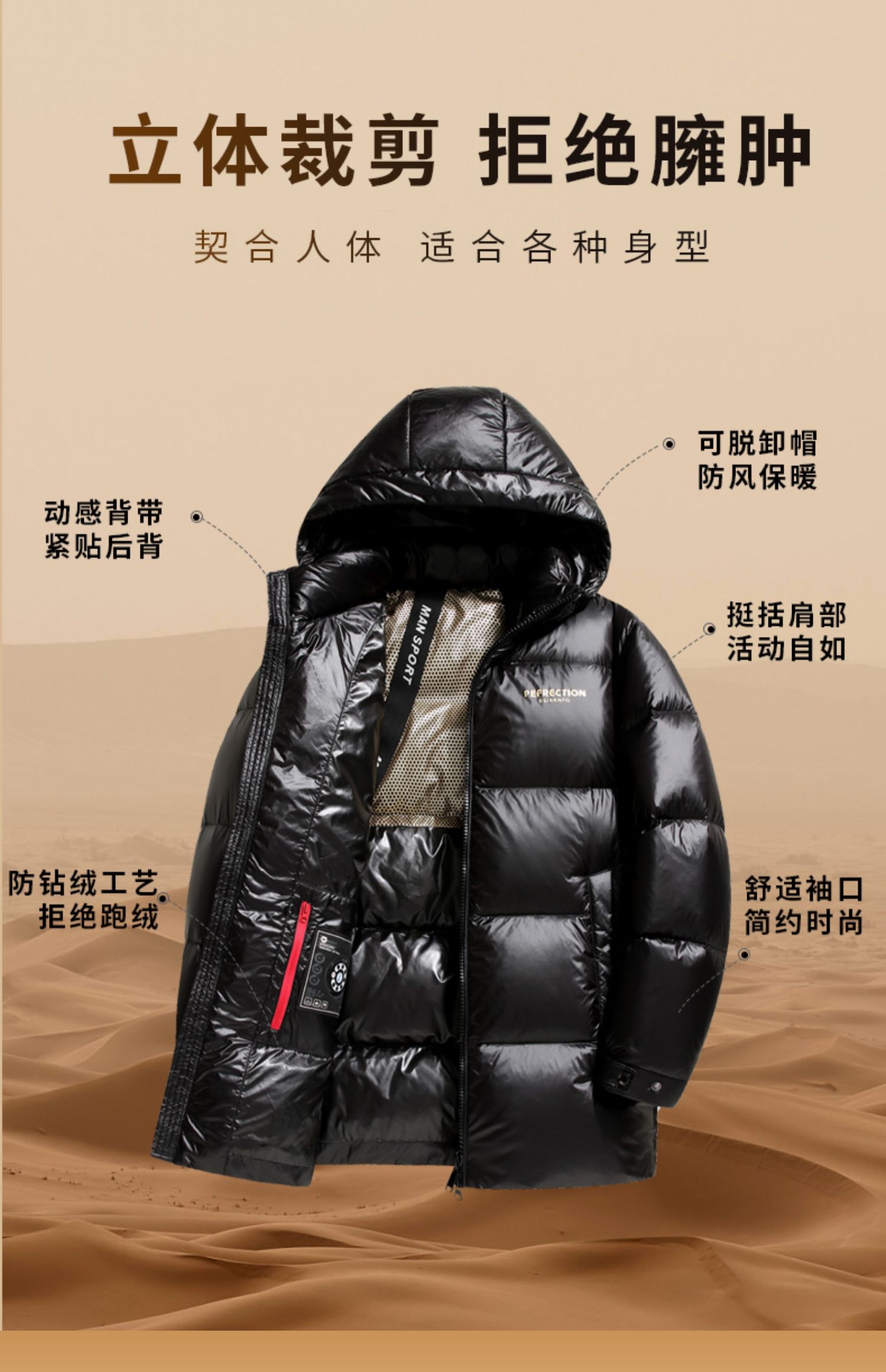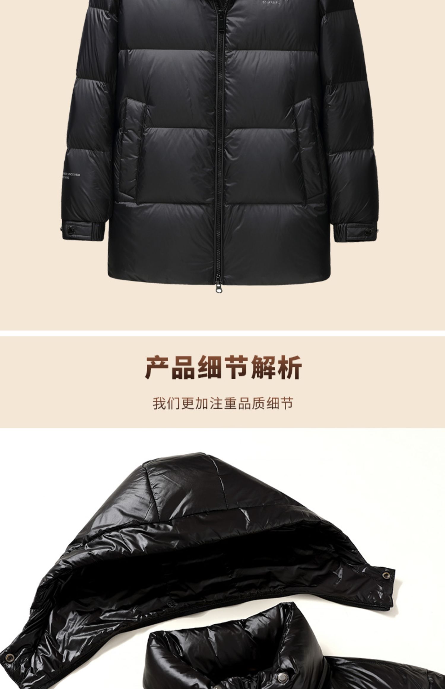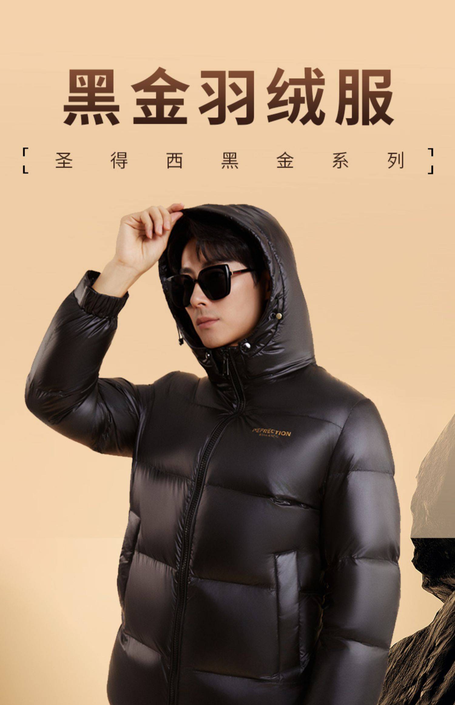 圣得西男装黑金系列中长款可拆卸连帽加厚面包羽绒服2362942758