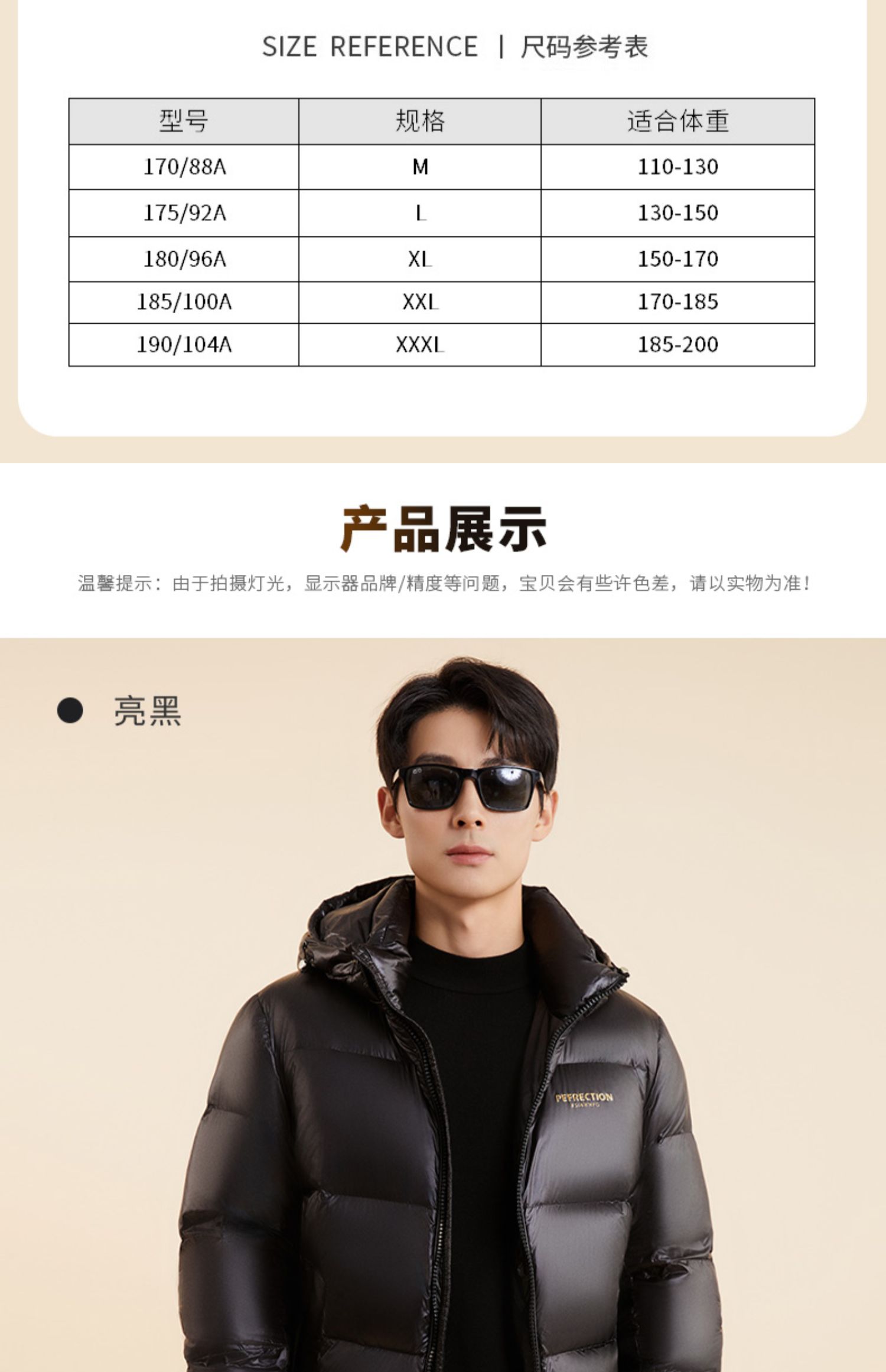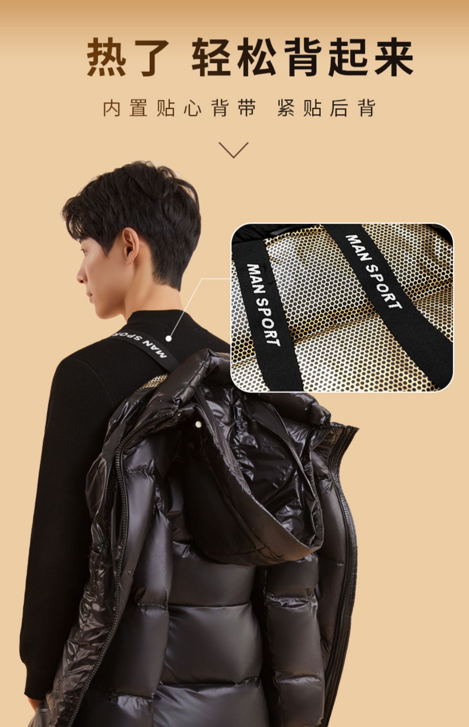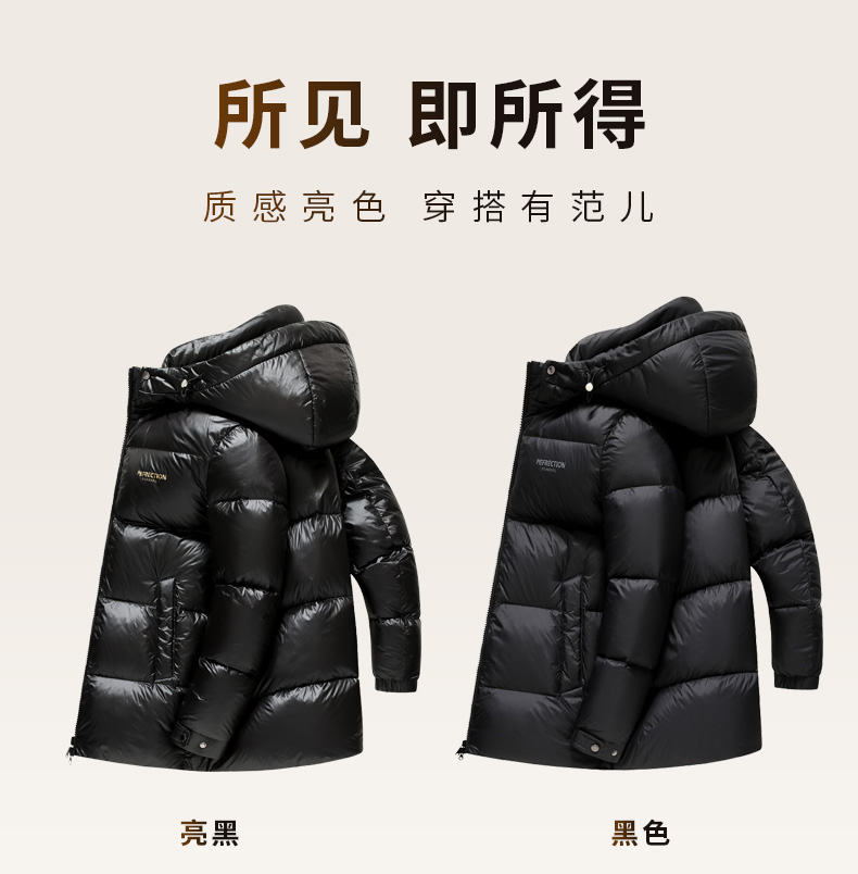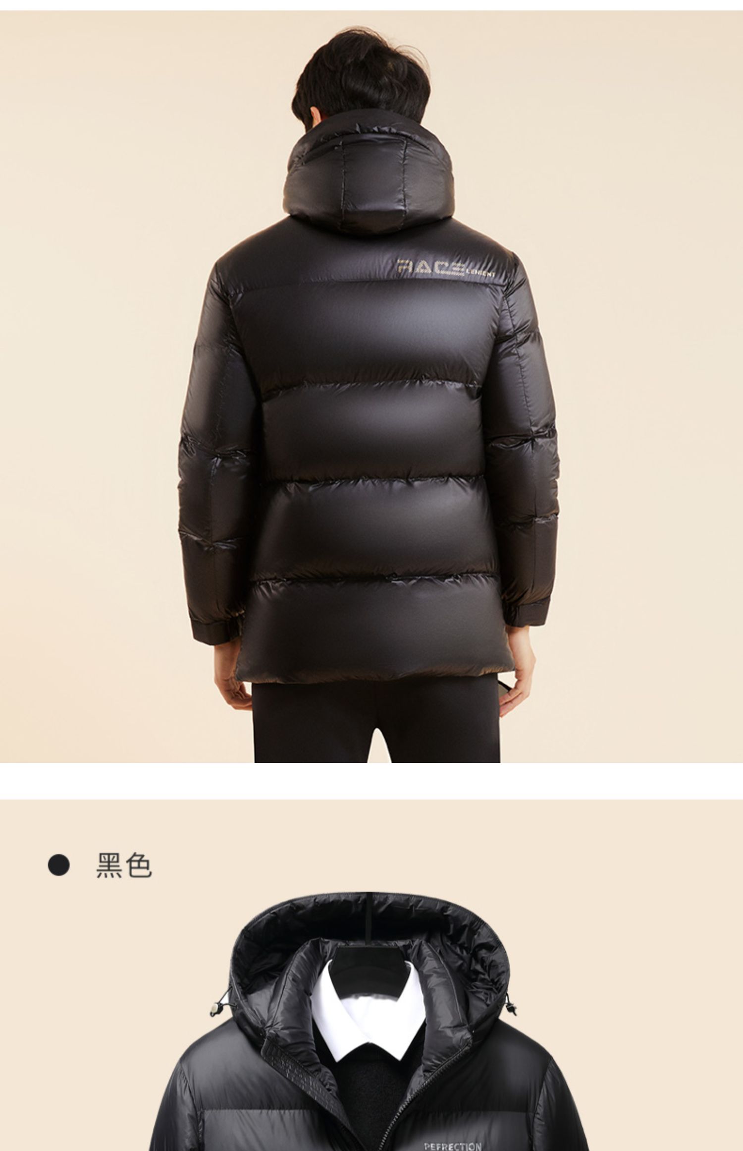 圣得西男装黑金系列中长款可拆卸连帽加厚面包羽绒服2362942758