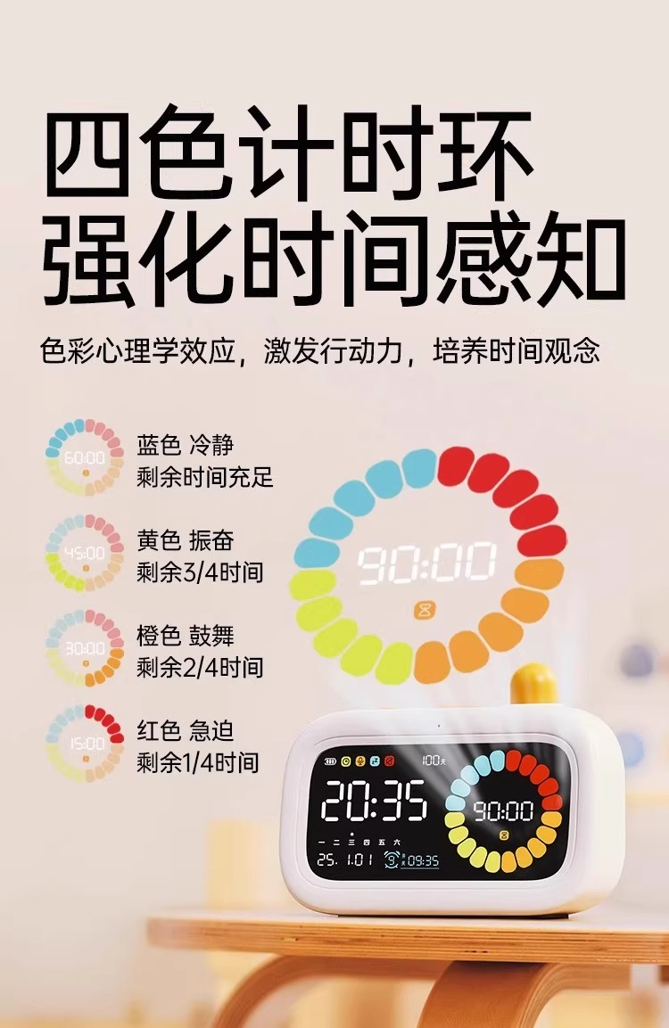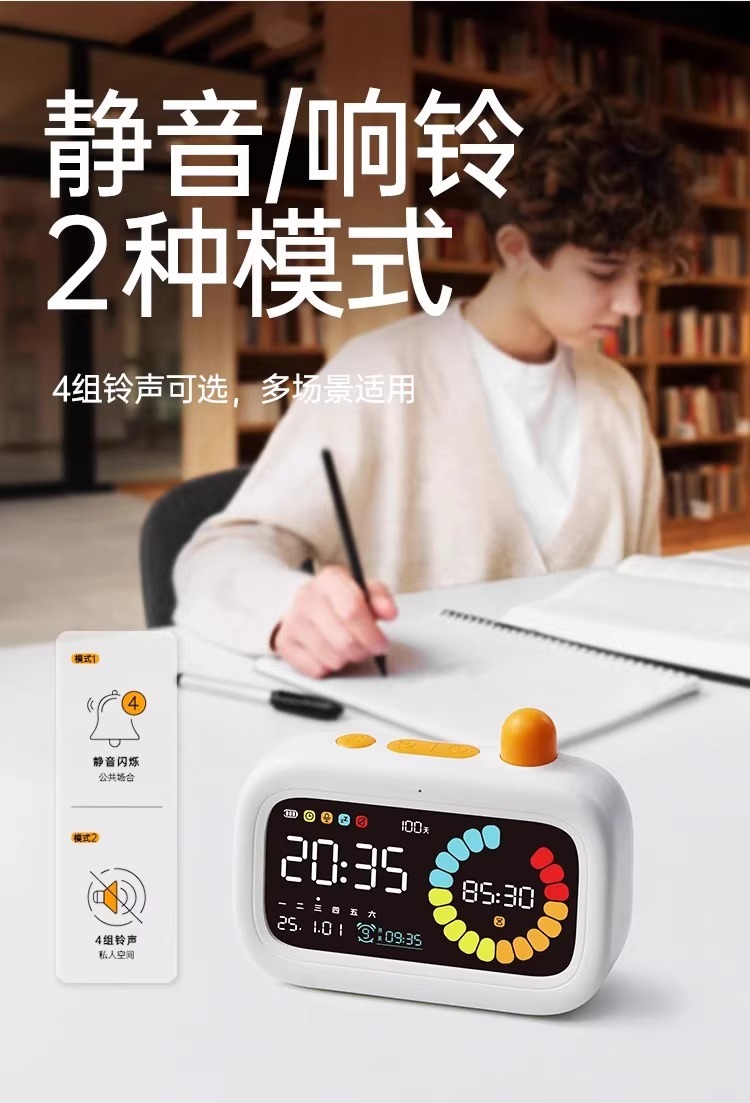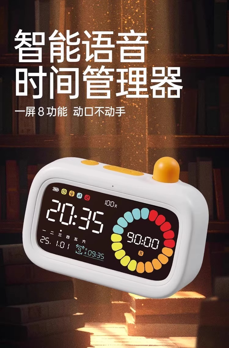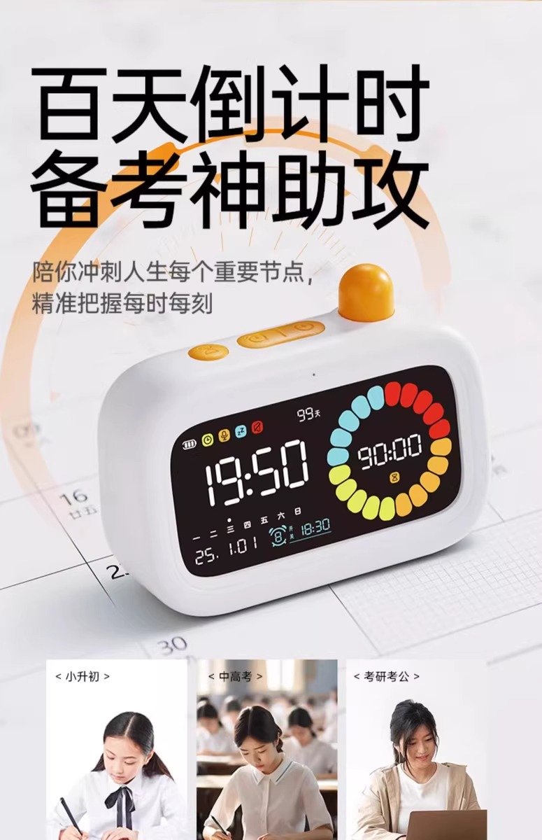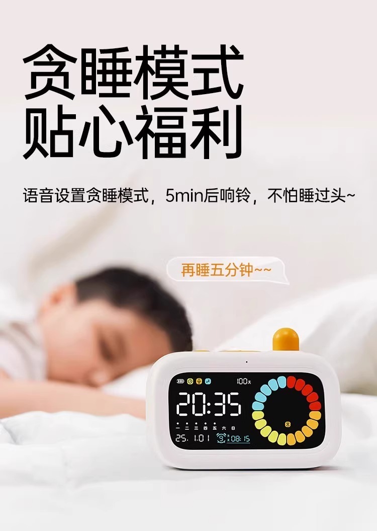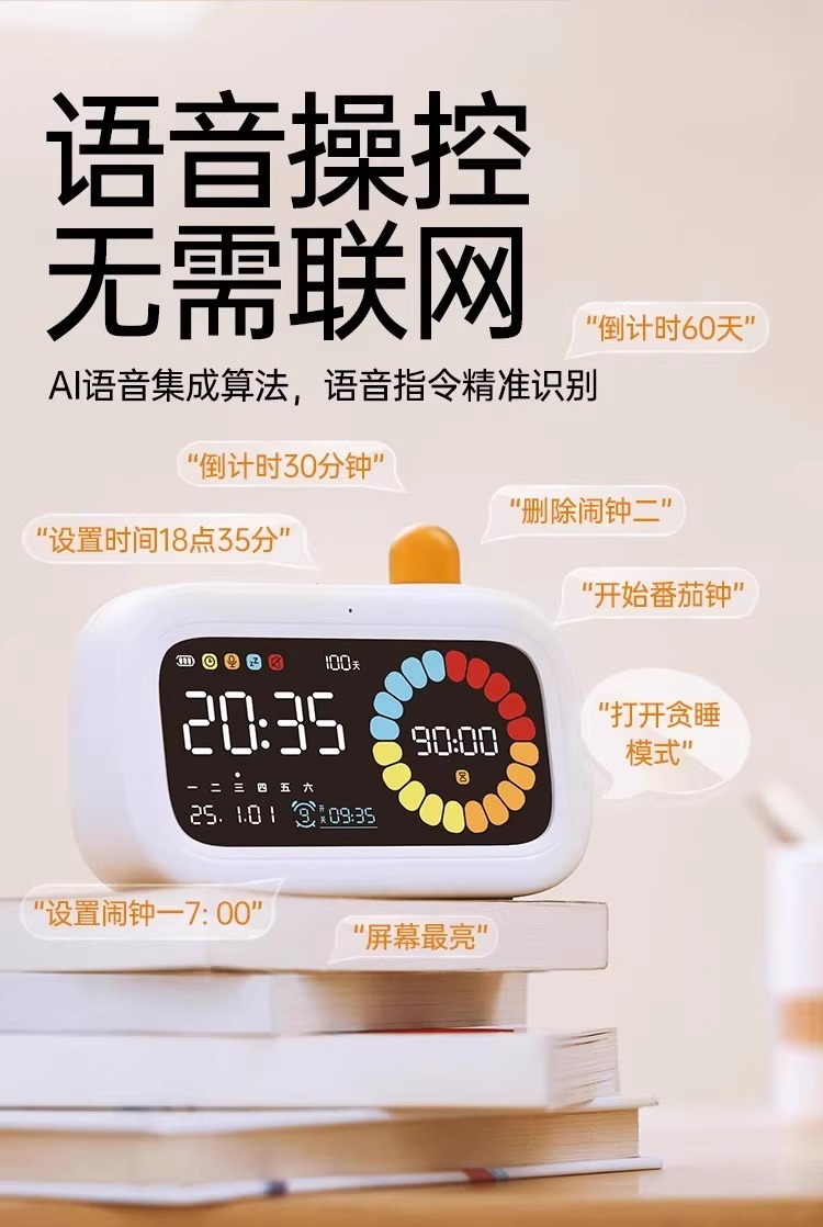 新款!【AI智能语音 语音操控 无需联网 百天倒计时】贝恩施T2AI智能语音闹钟学习计时器学生自律定时可视化静音时间管理器