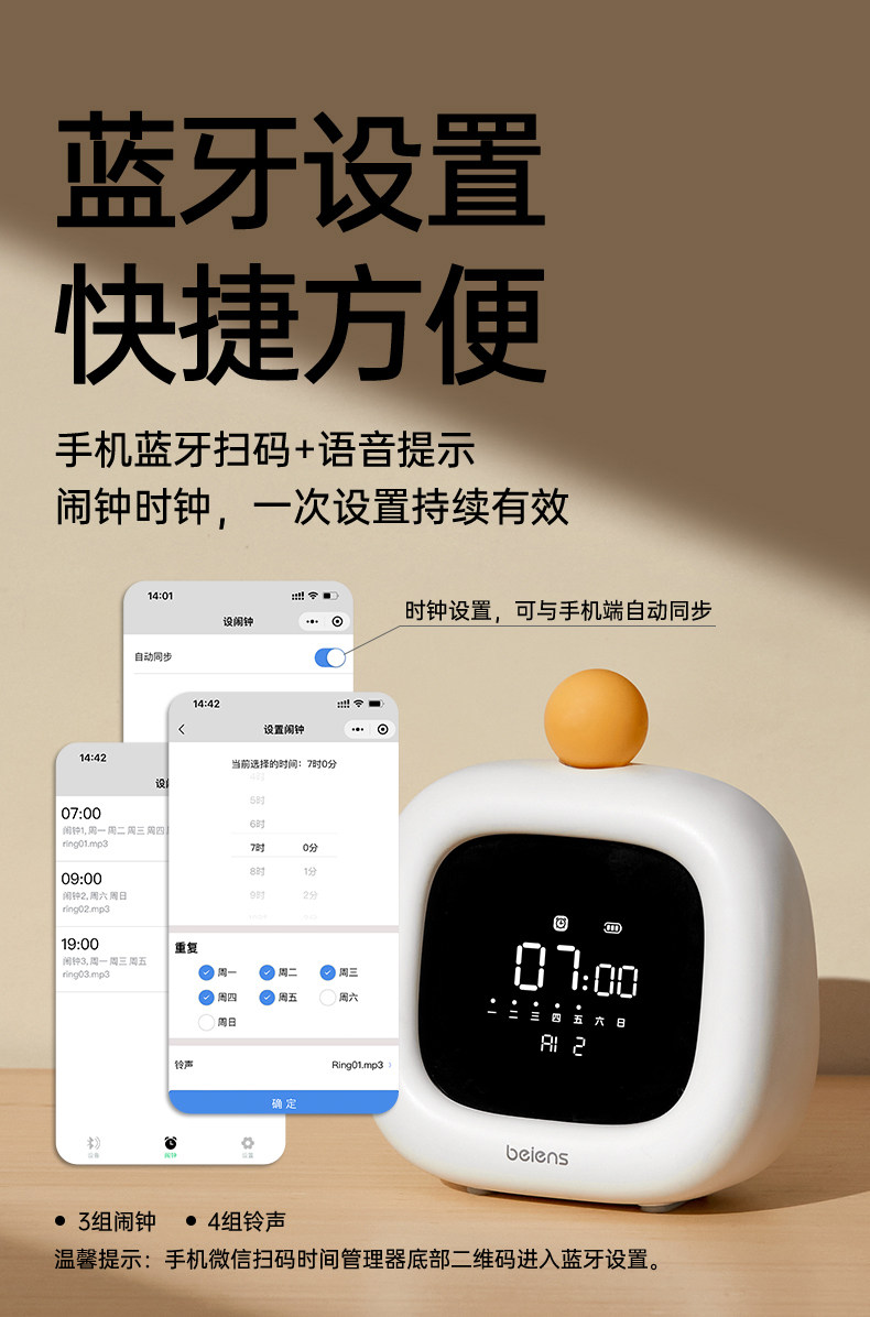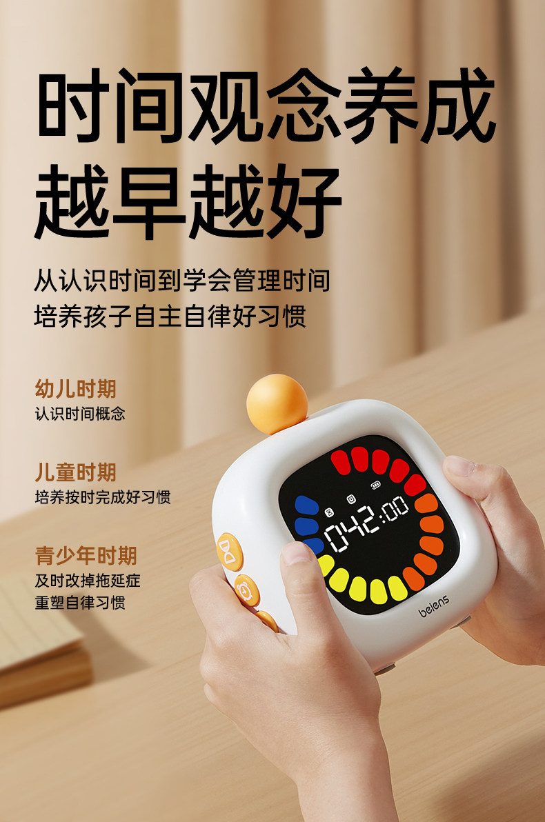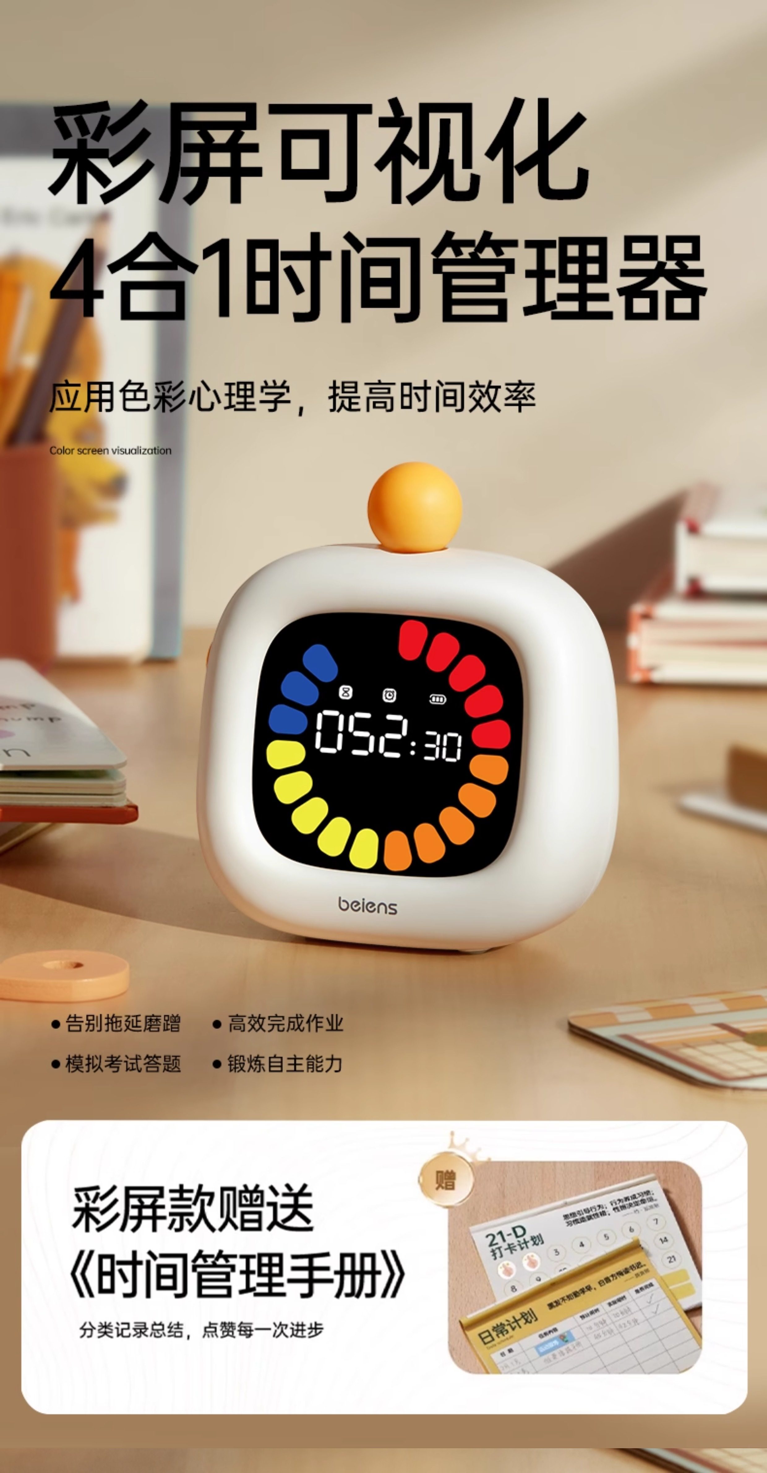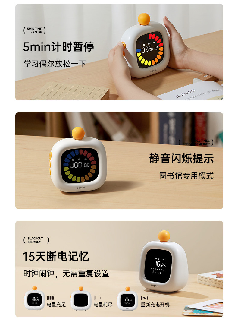 新款!【AI智能语音 语音操控 无需联网 百天倒计时】贝恩施T2AI智能语音闹钟学习计时器学生自律定时可视化静音时间管理器