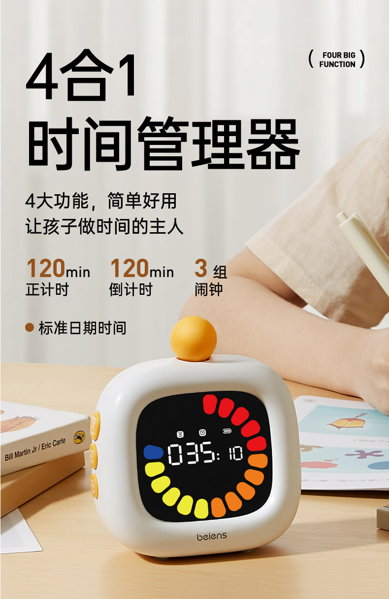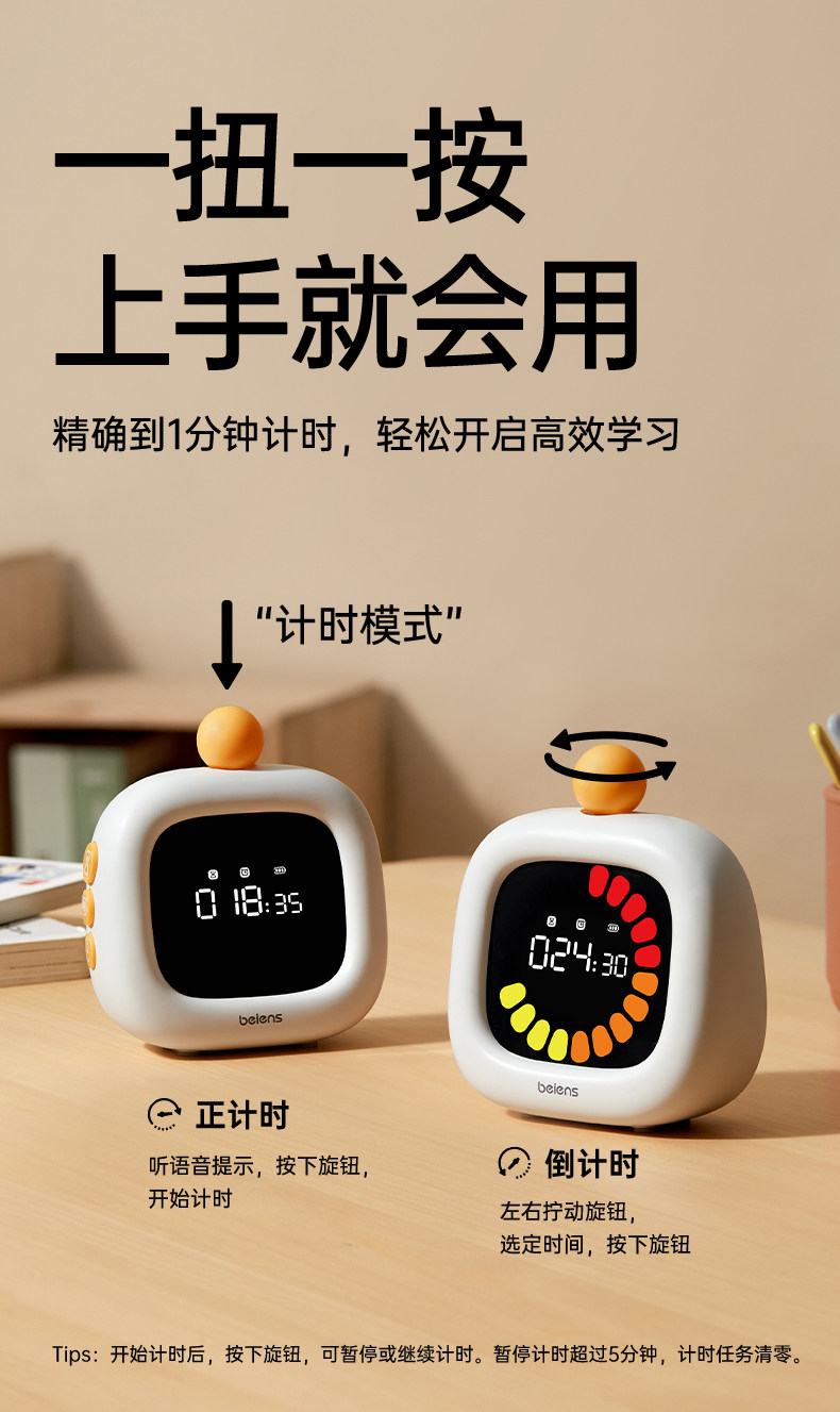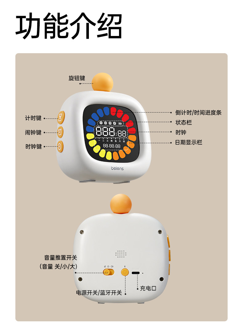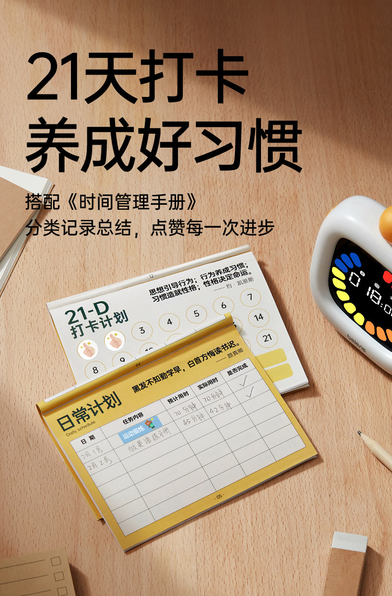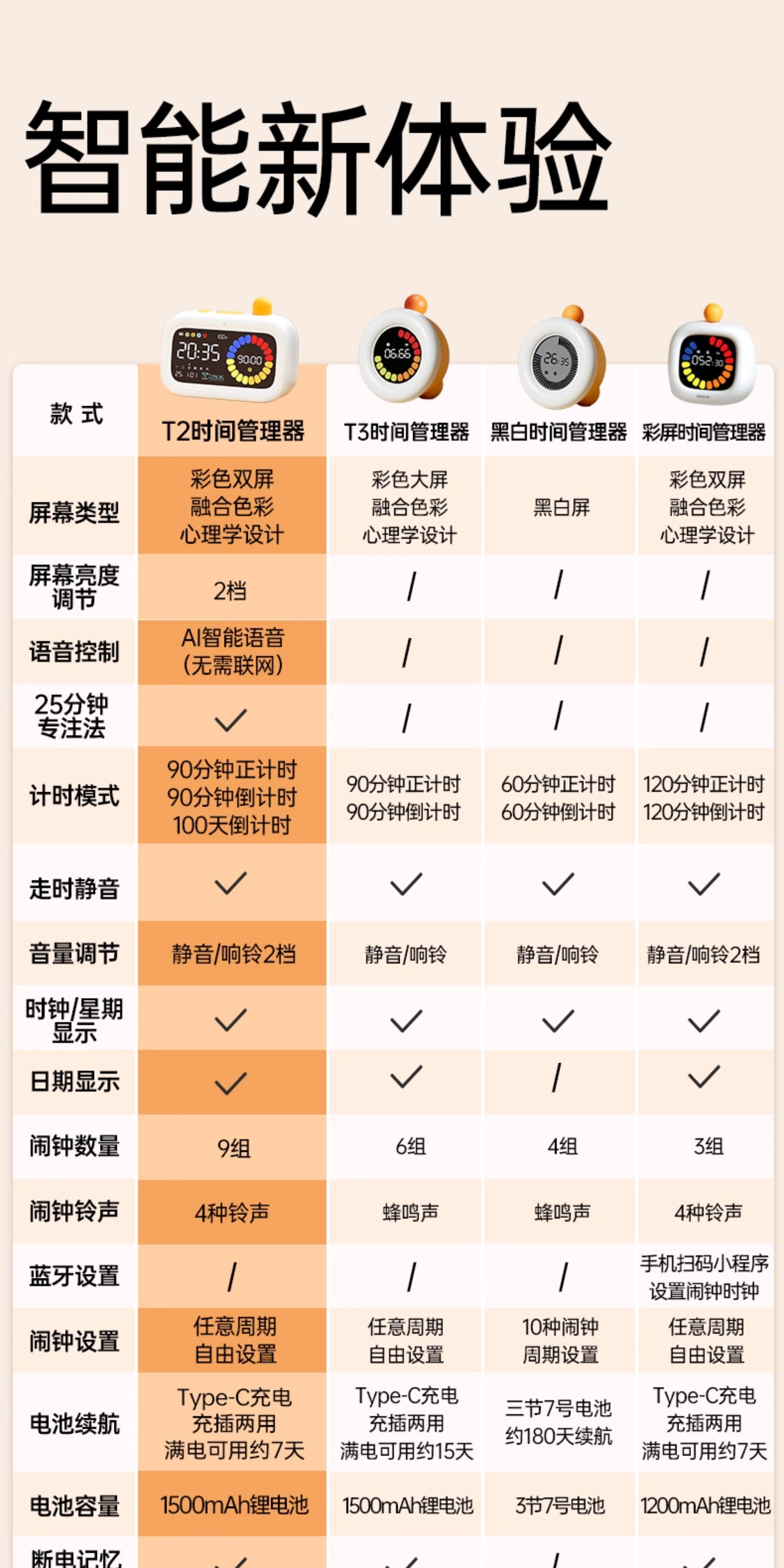 新款!【AI智能语音 语音操控 无需联网 百天倒计时】贝恩施T2AI智能语音闹钟学习计时器学生自律定时可视化静音时间管理器