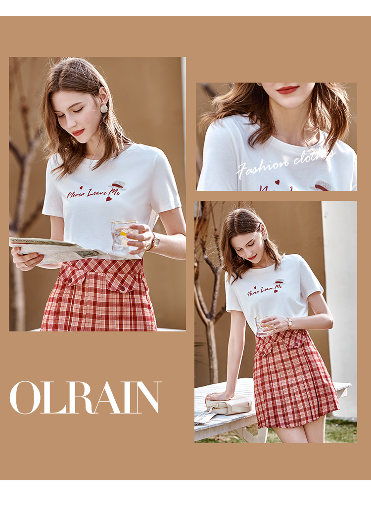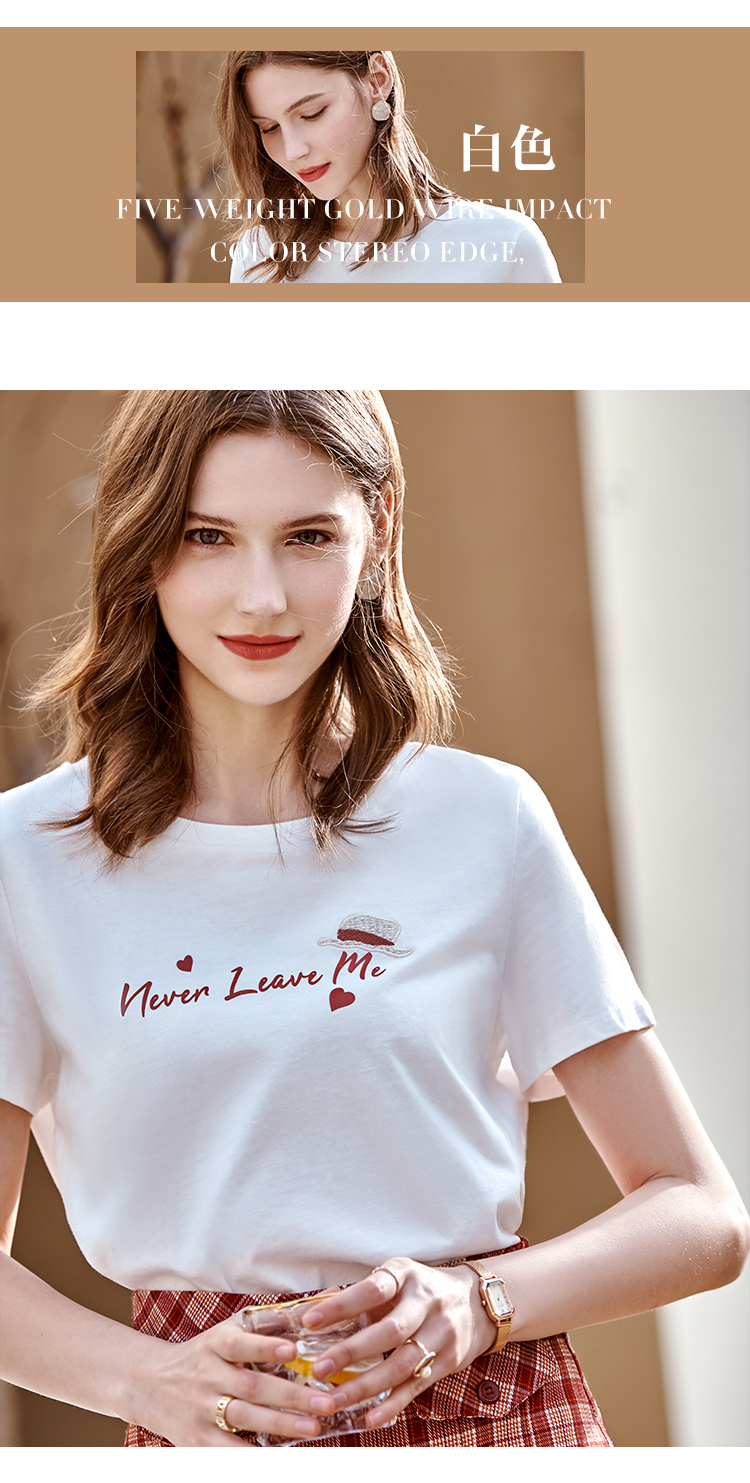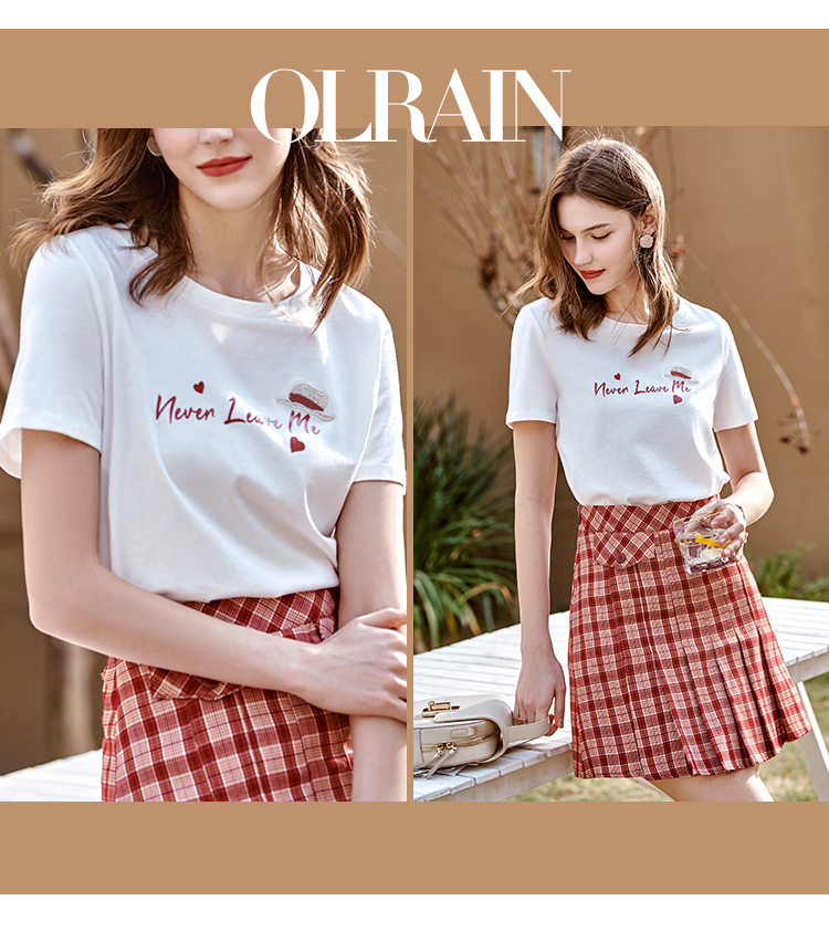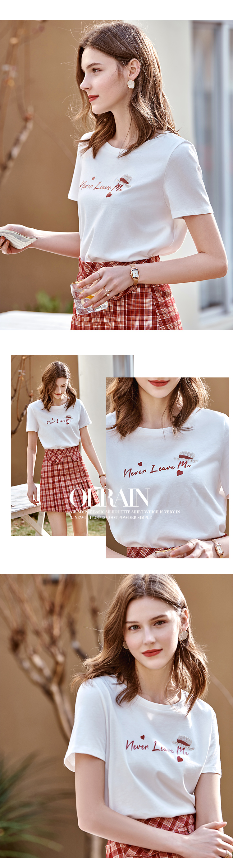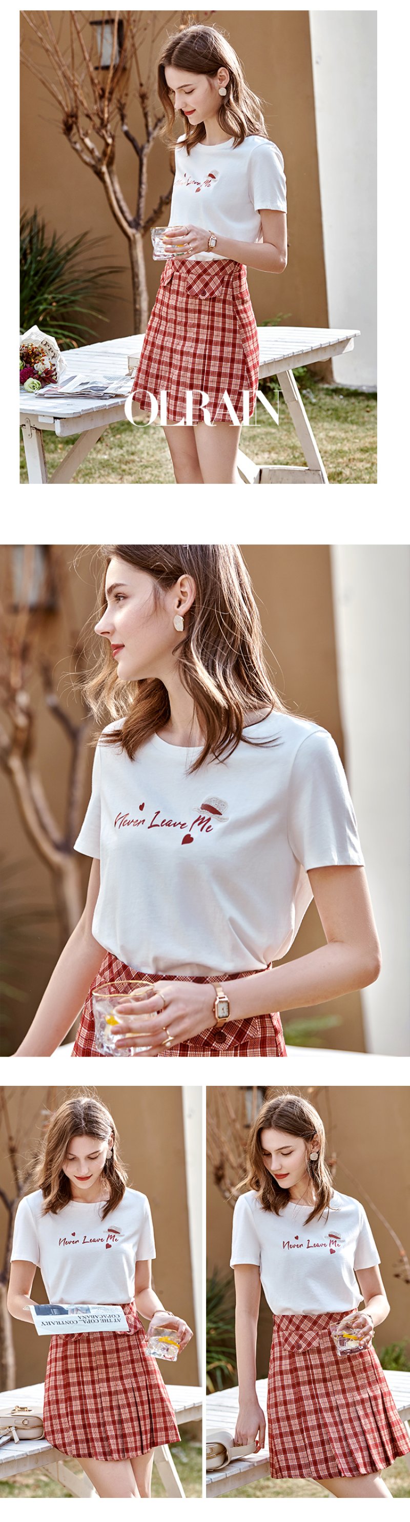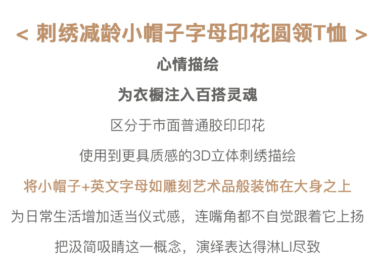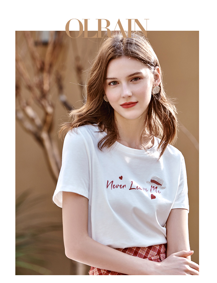 欧芮儿圆领刺绣t恤女2021年新款帽子字母印花减龄简约气质打底衫