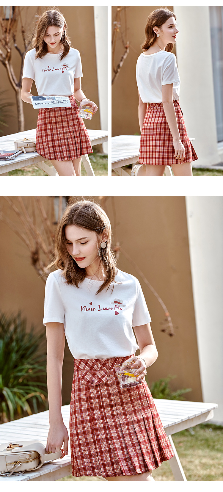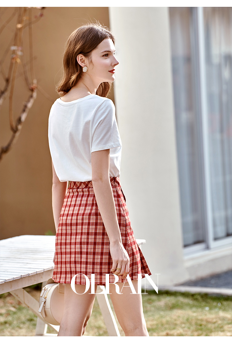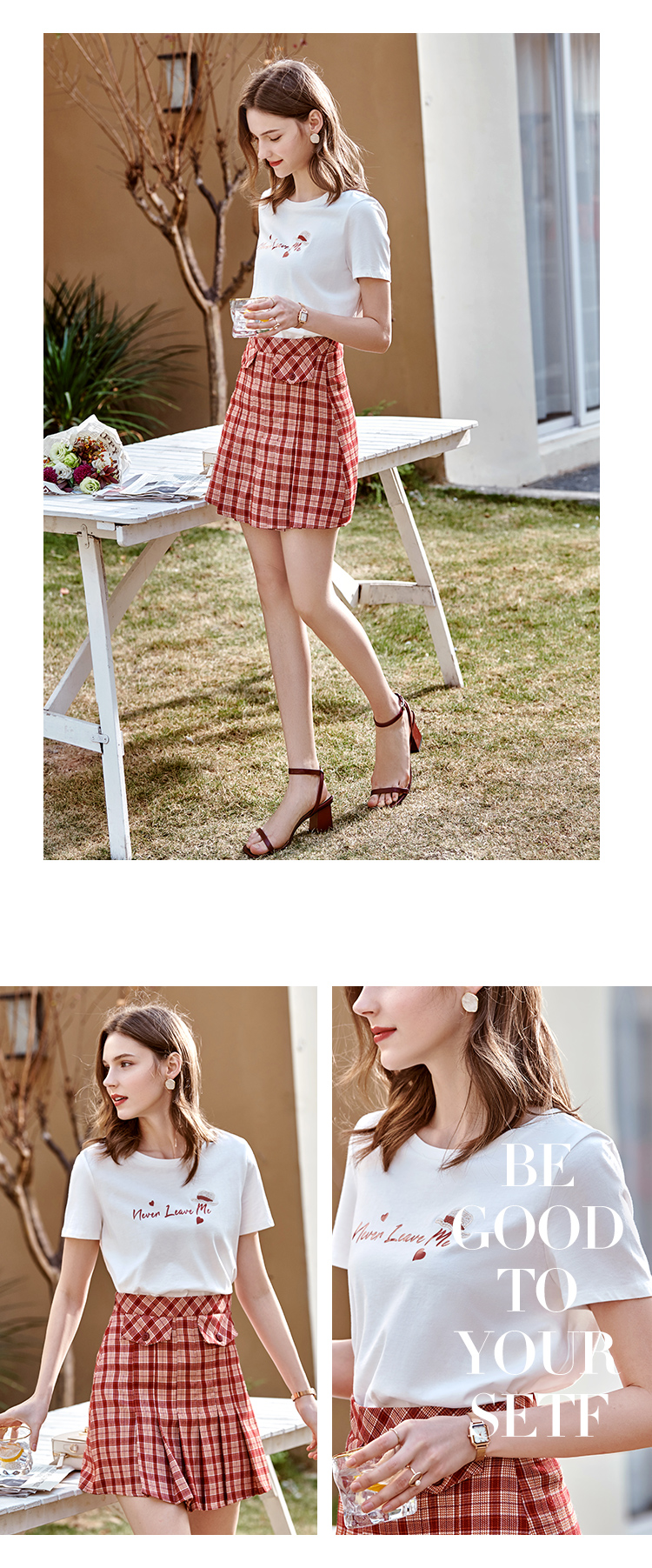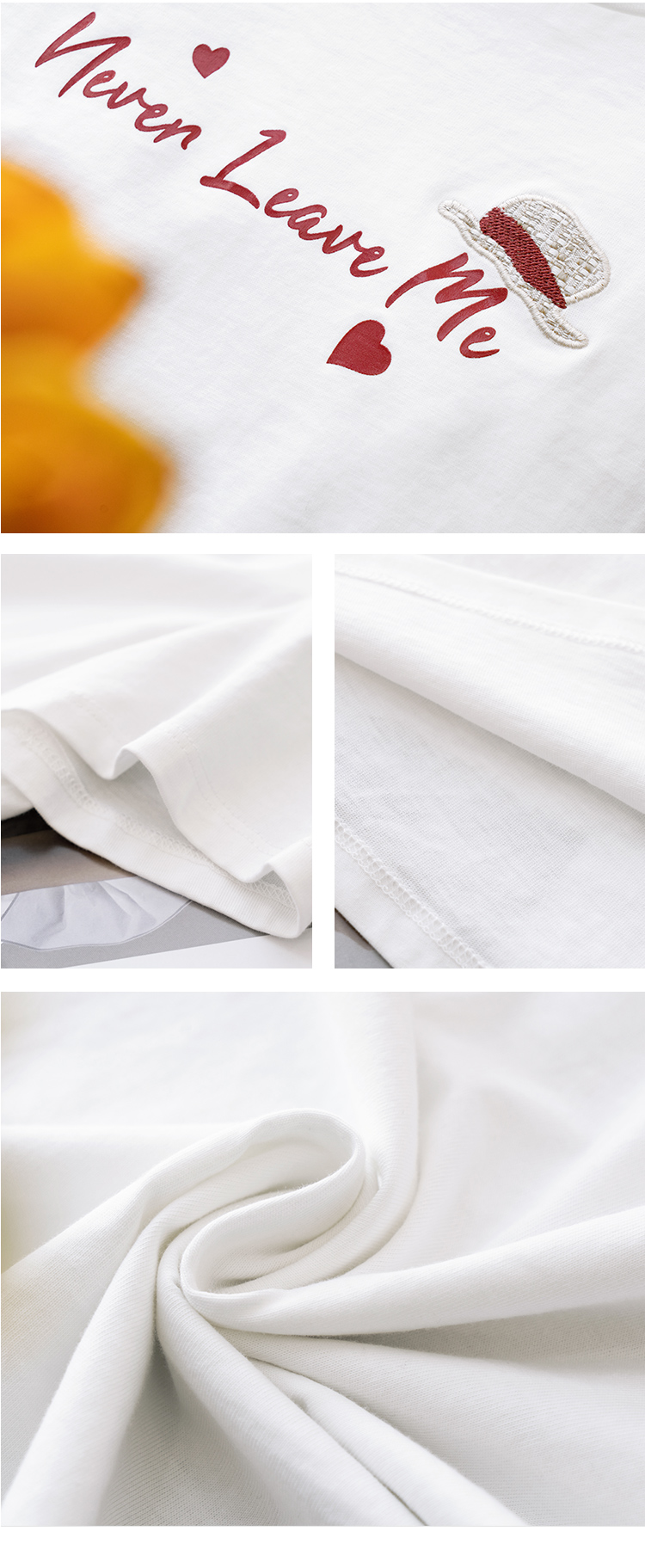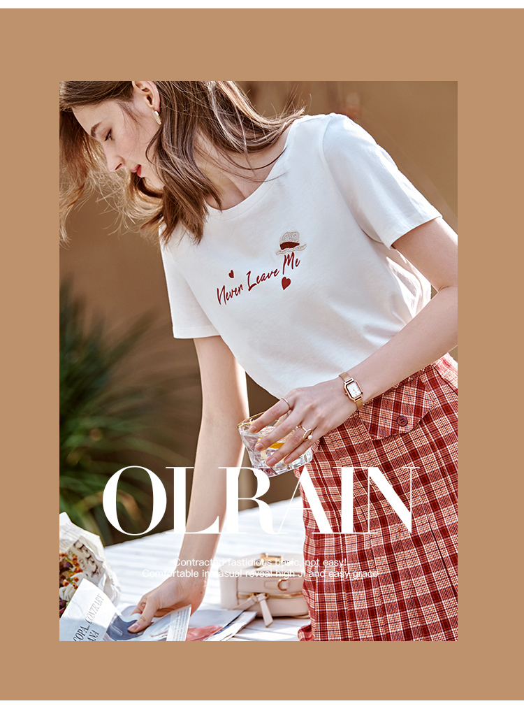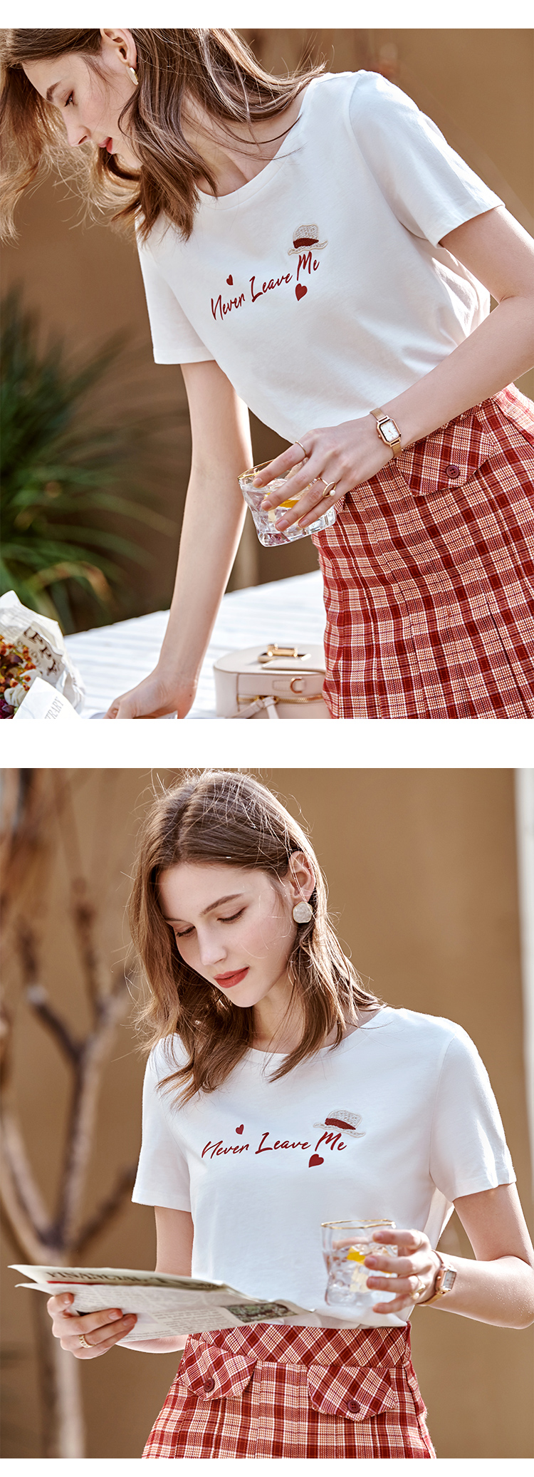 欧芮儿圆领刺绣t恤女2021年新款帽子字母印花减龄简约气质打底衫