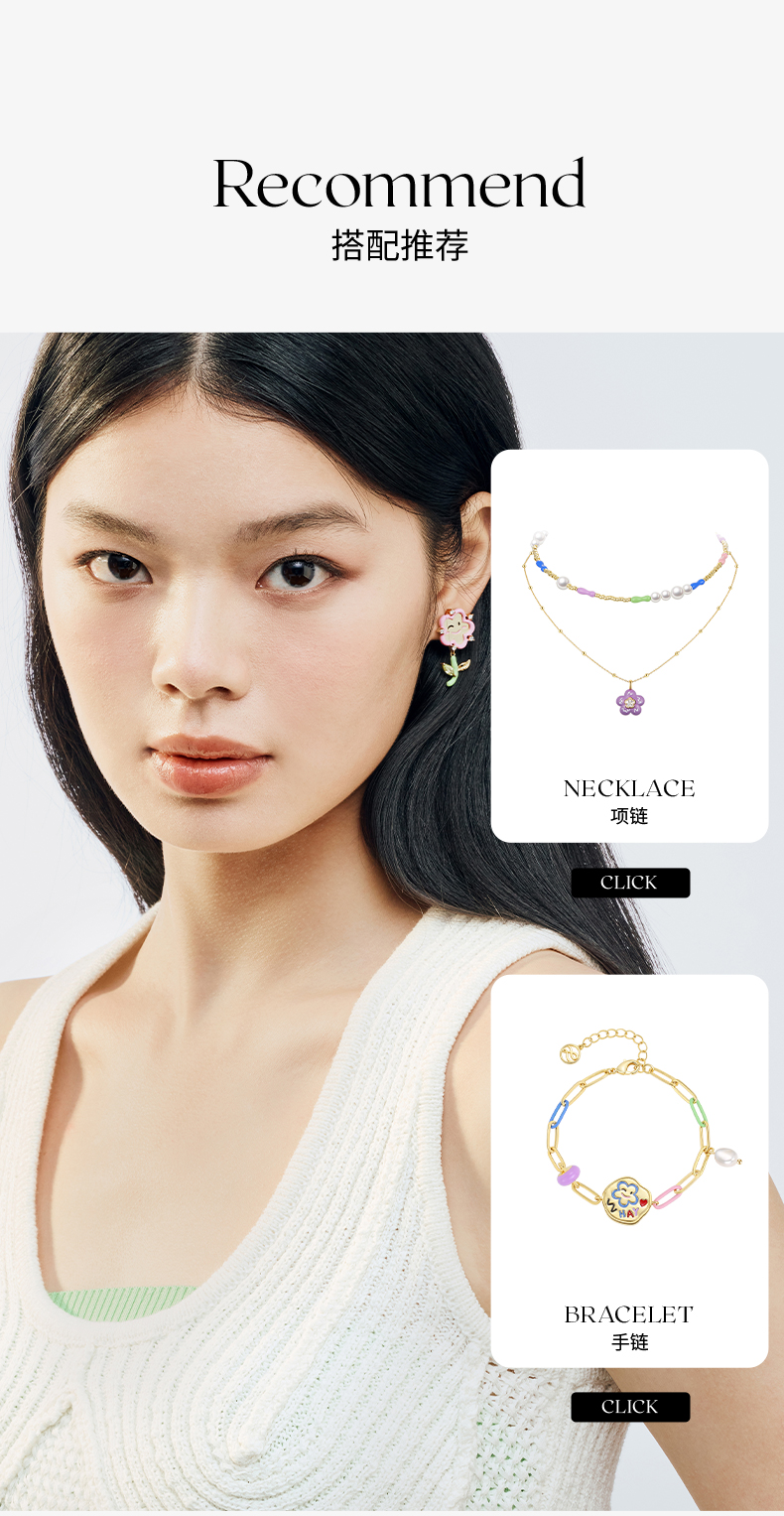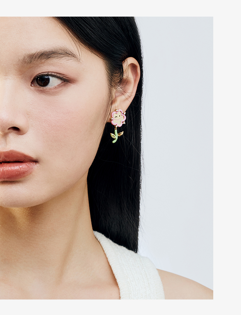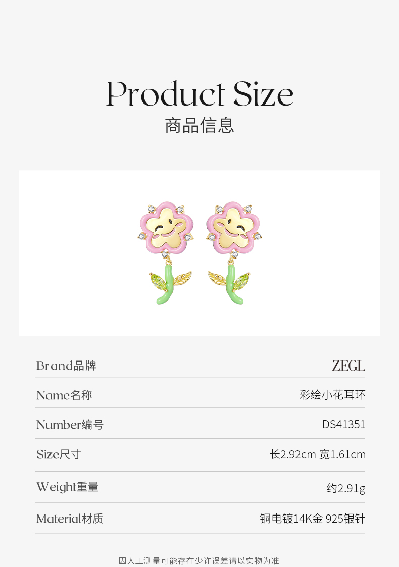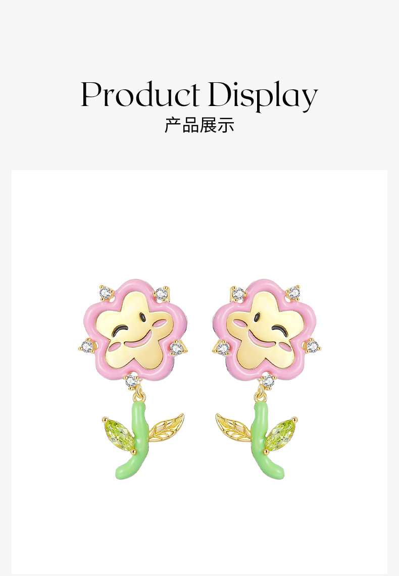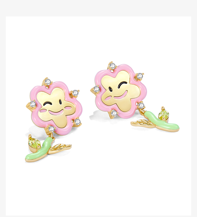 ZEGL设计师童心彩绘系列笑脸花朵耳环女耳钉银针耳饰