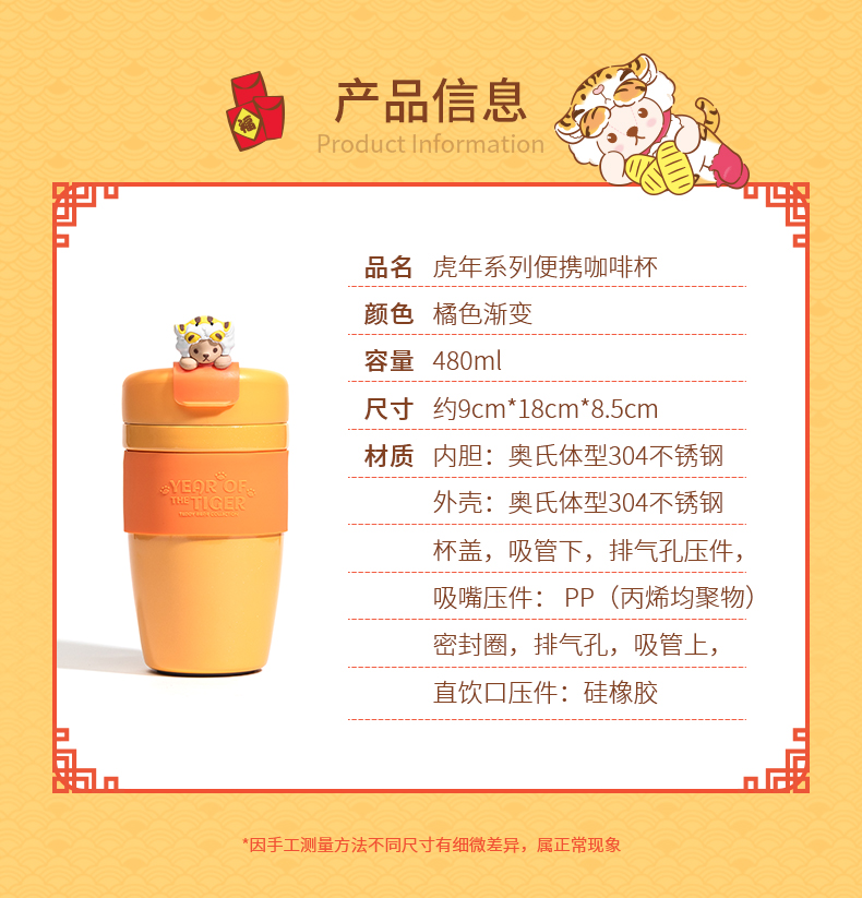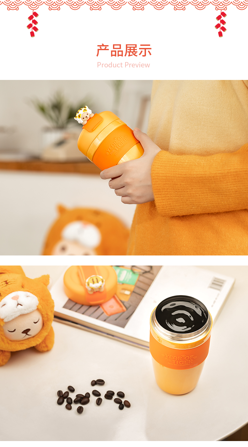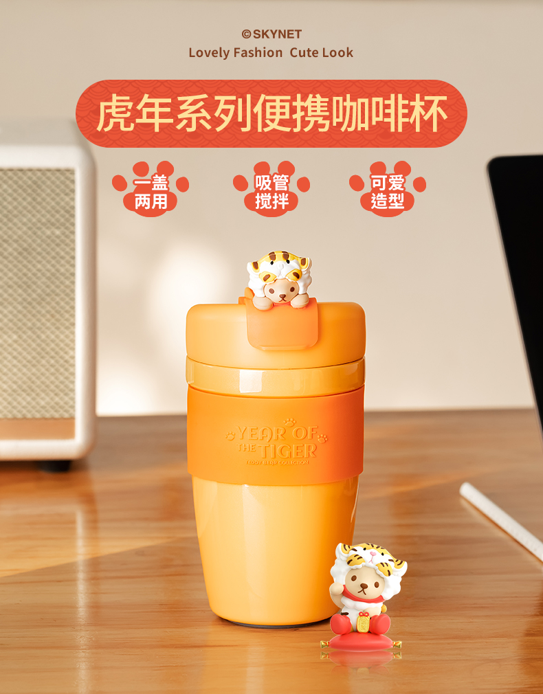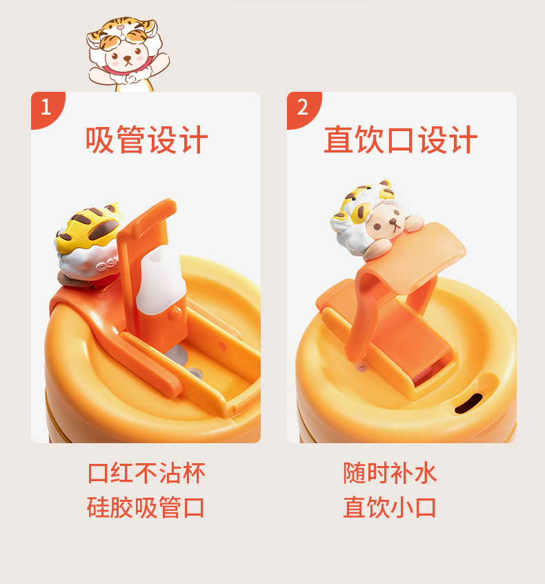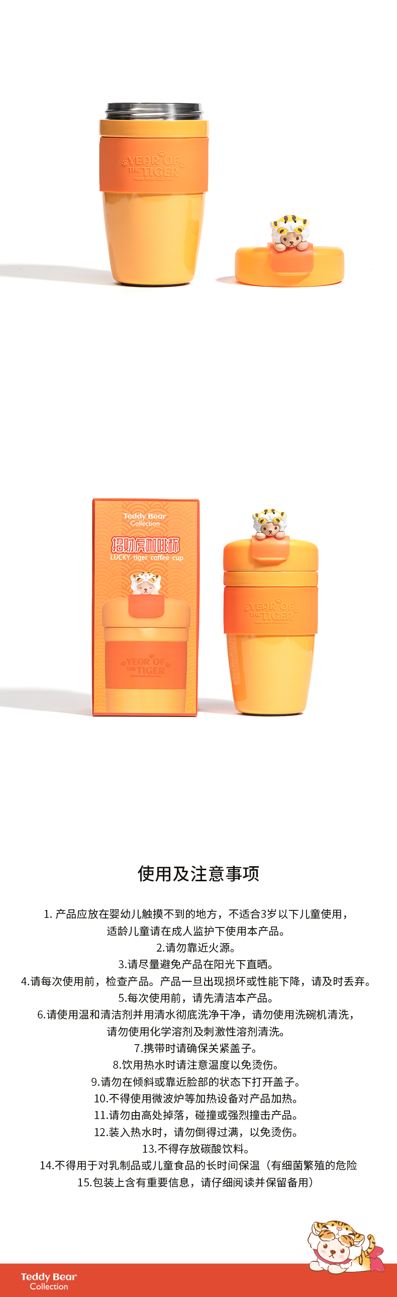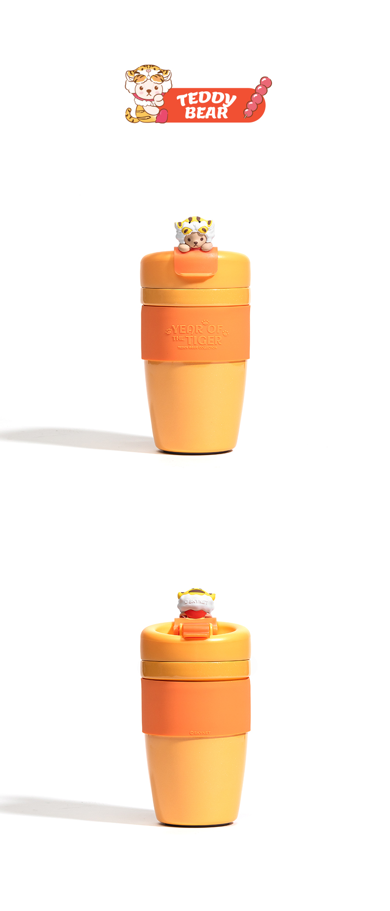泰迪珍藏小熊招财虎年小老虎便携咖啡随行吸管保温杯双饮口高颜值