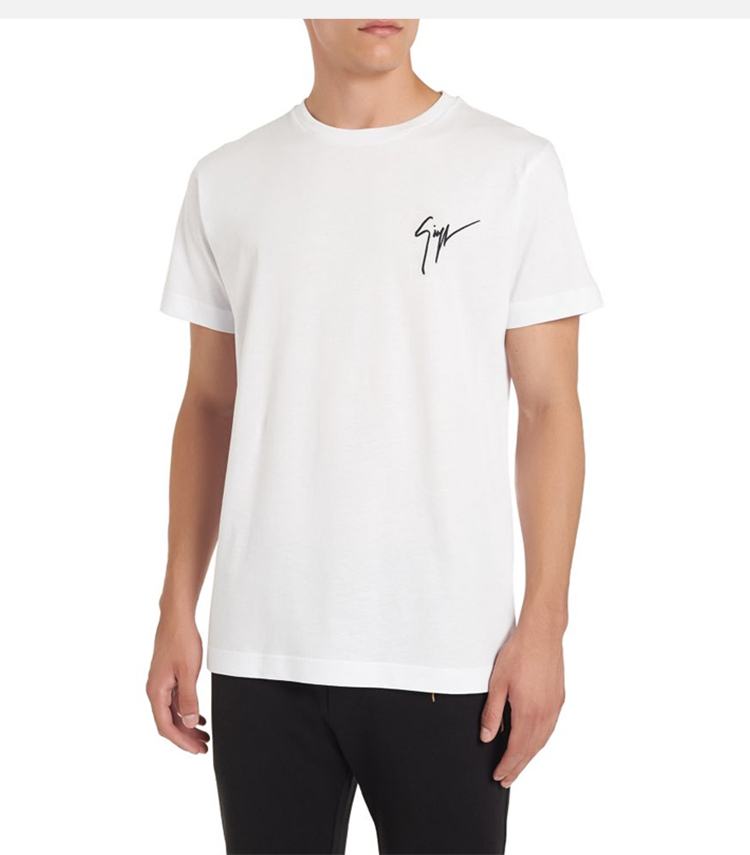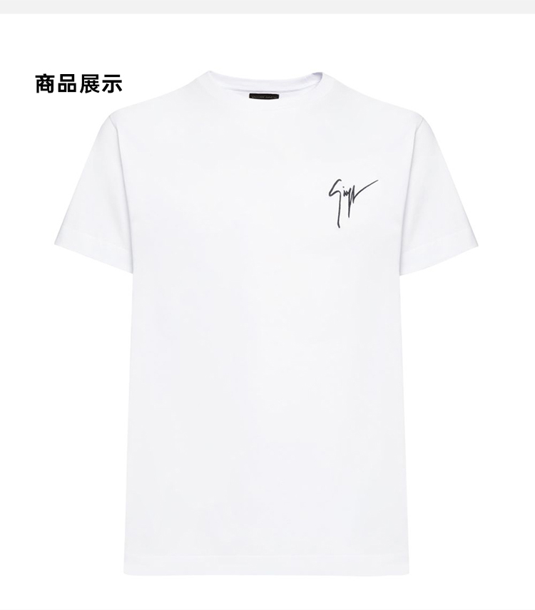Giuseppe Zanotti 男士签名徽标刺绣棉质圆领短袖T恤 白色 IRU0007002