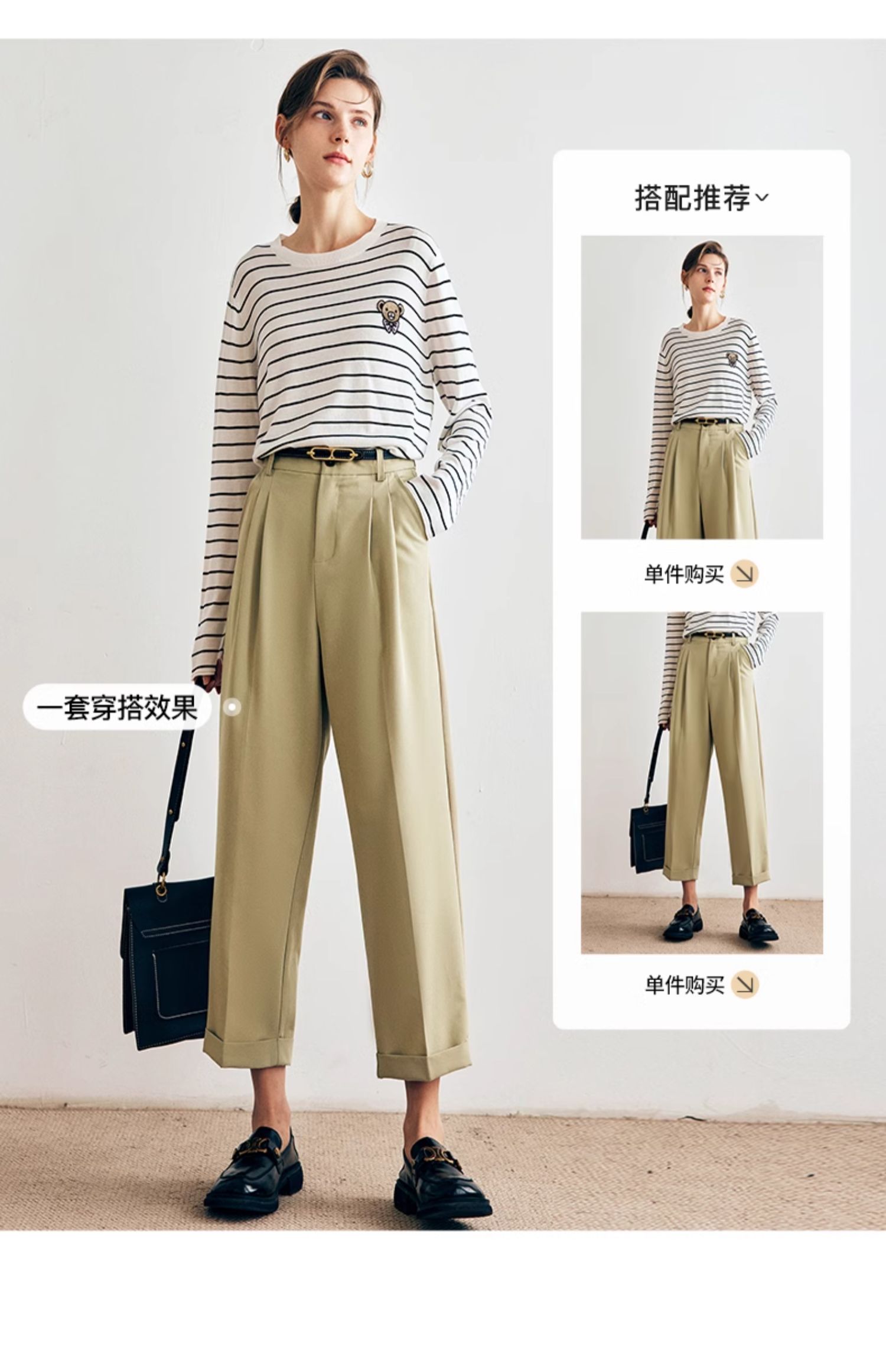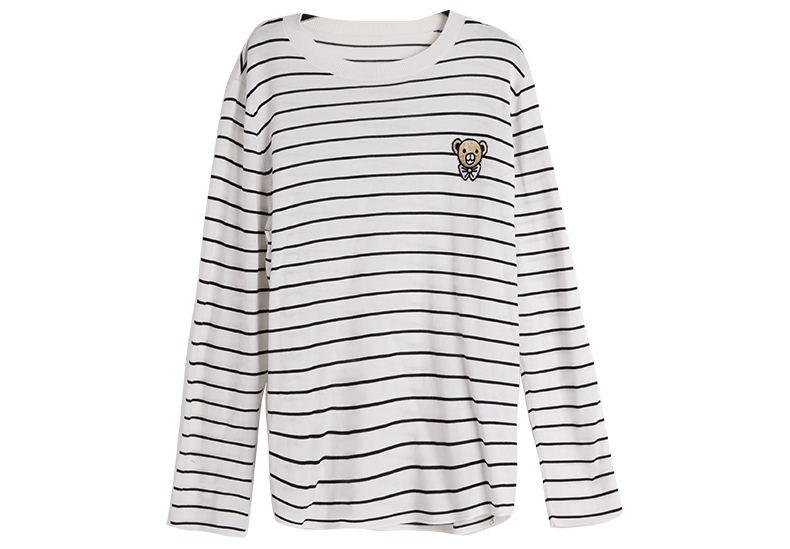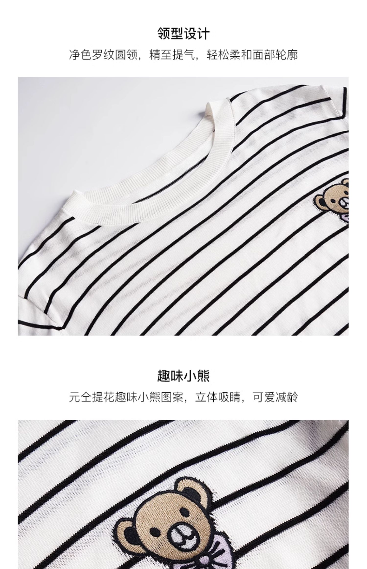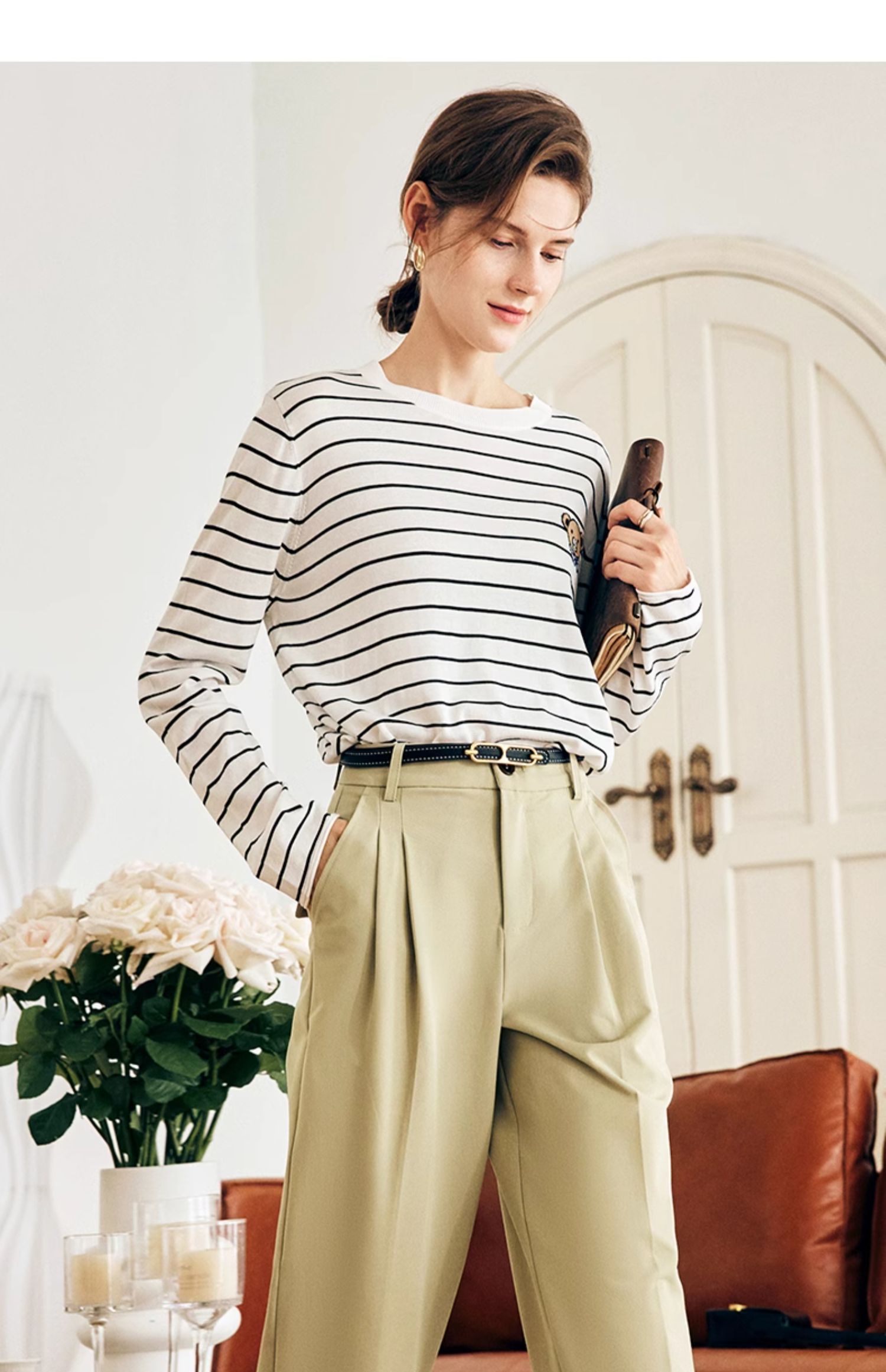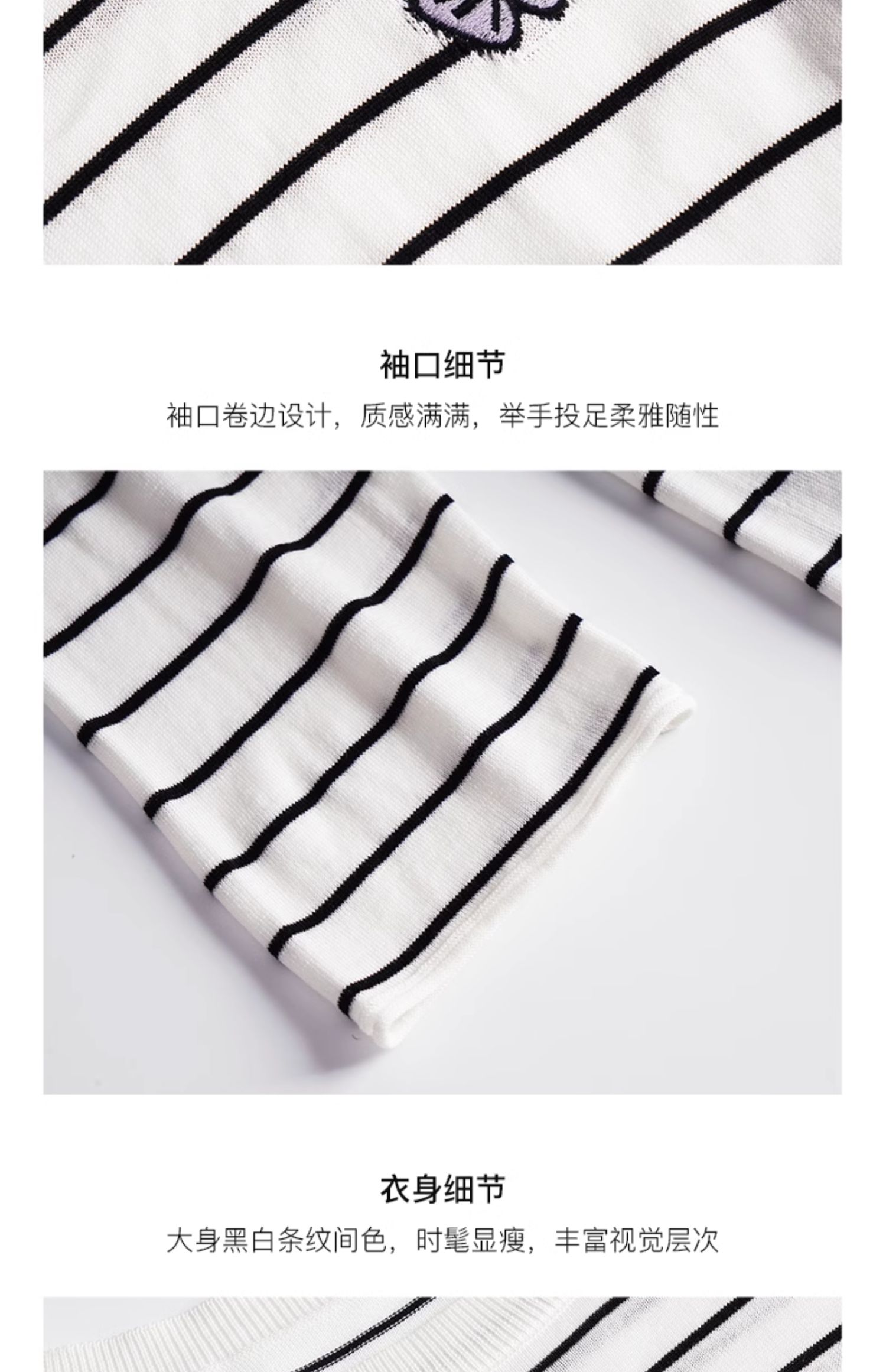 OLrain欧芮儿法式条纹针织衫女秋季2024年新款宽松丝光棉打底上衣