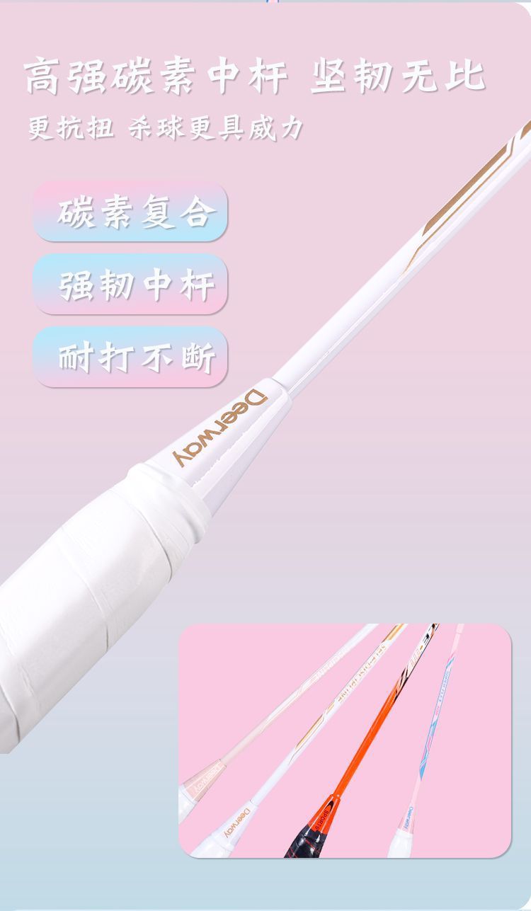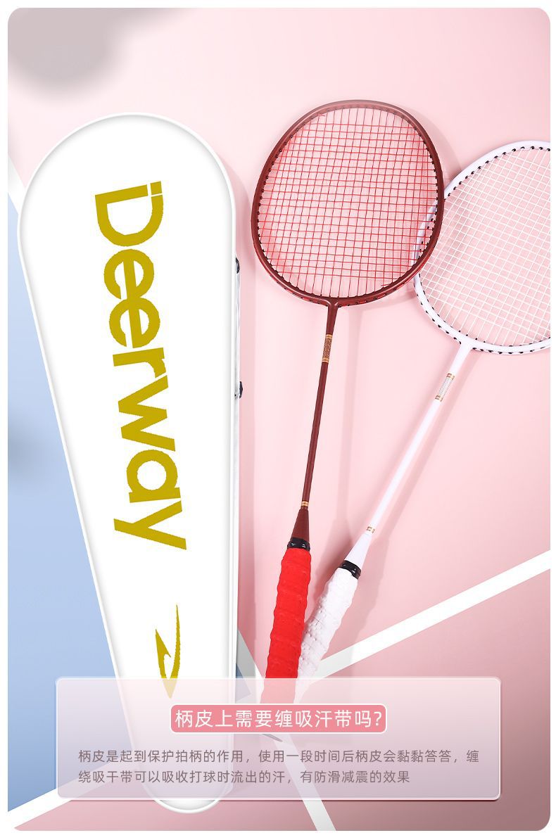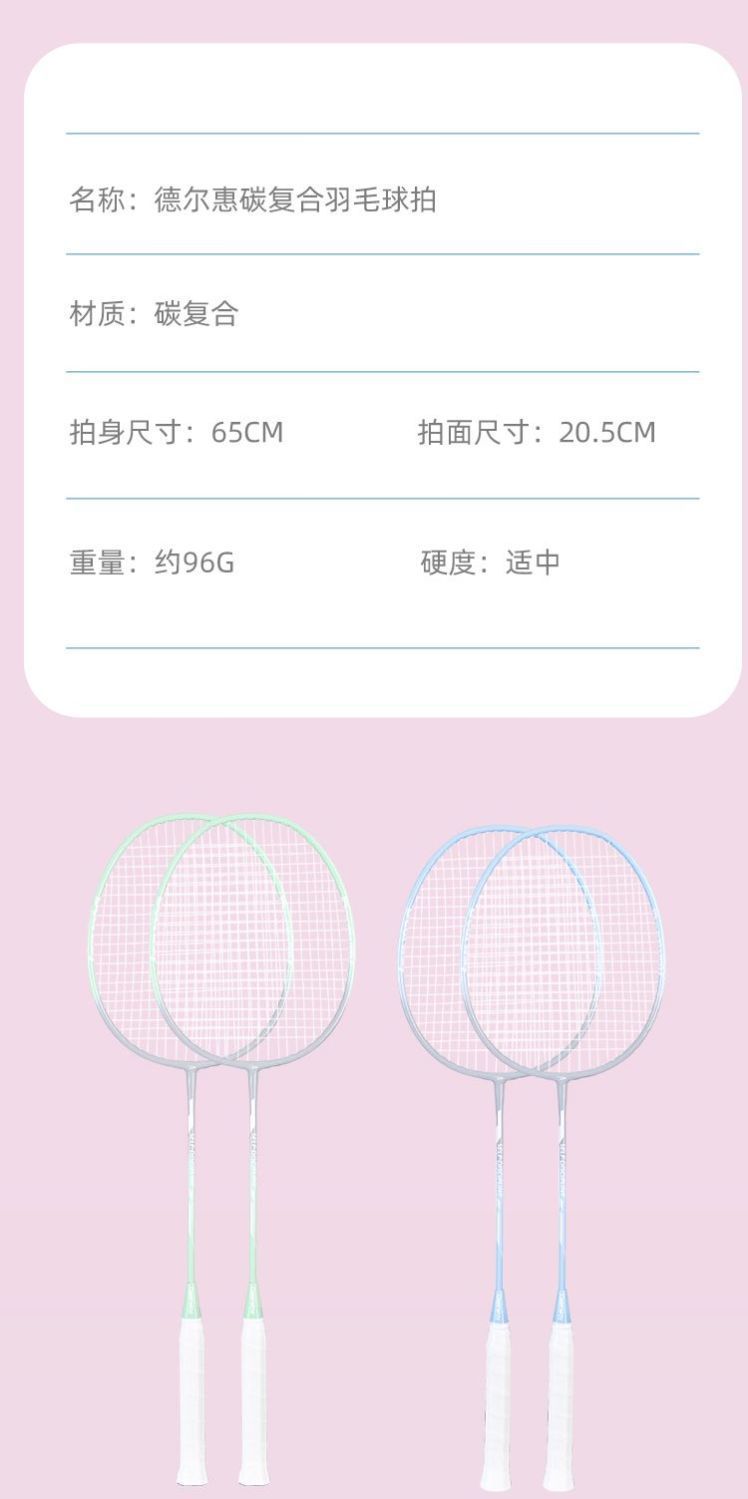 「高颜值!德尔惠羽毛球拍」轻耐打成人羽毛球拍套装 比赛训练带球双拍体育用品
