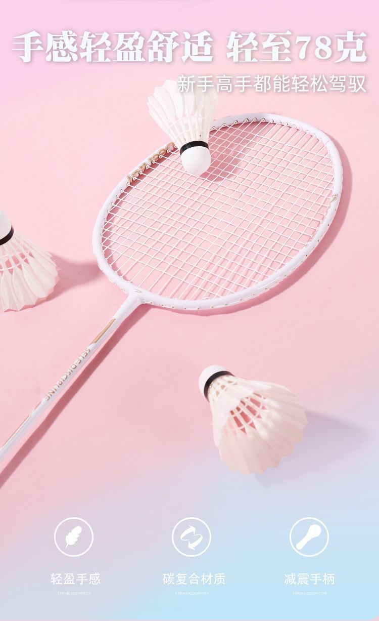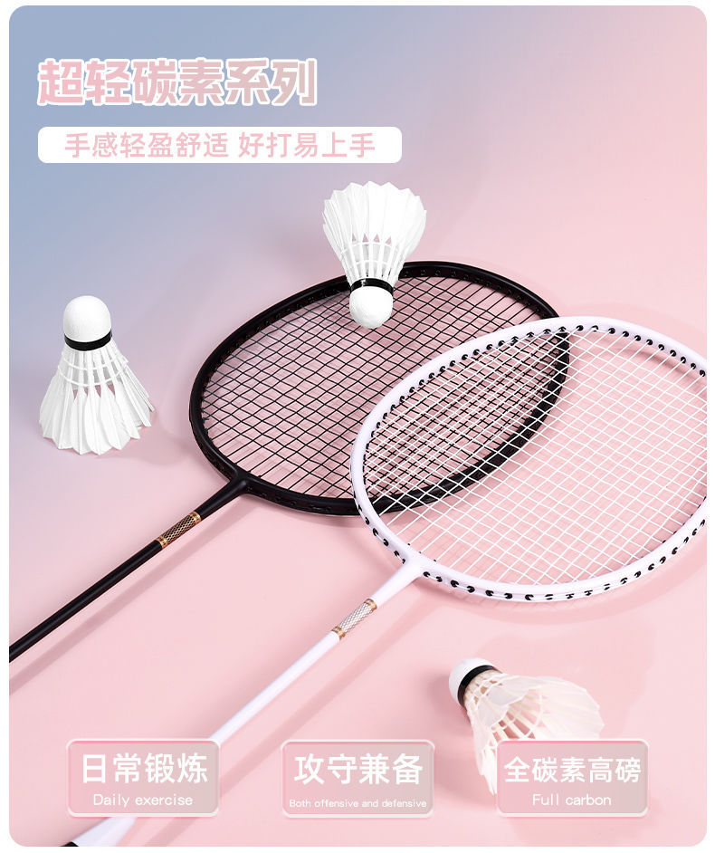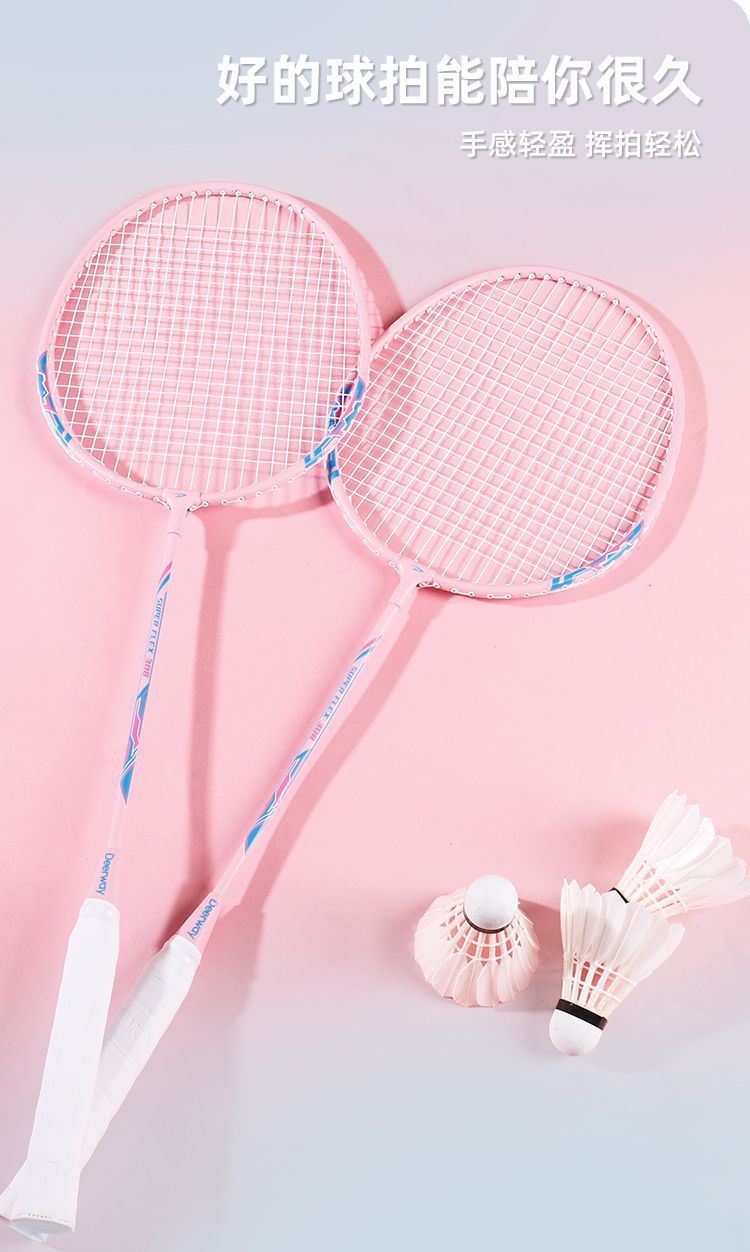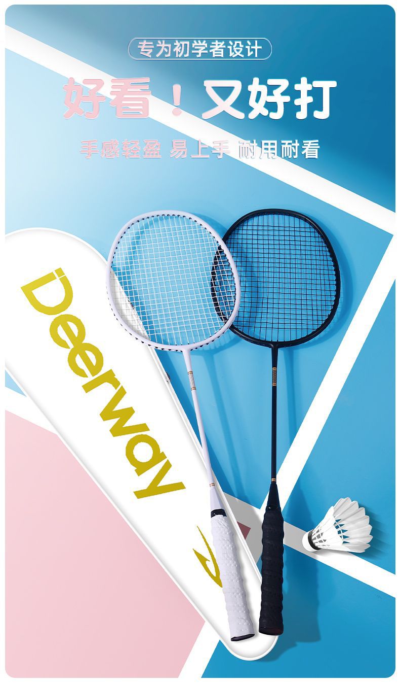 「高颜值!德尔惠羽毛球拍」轻耐打成人羽毛球拍套装 比赛训练带球双拍体育用品