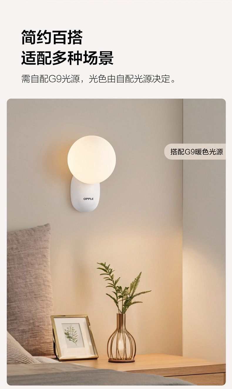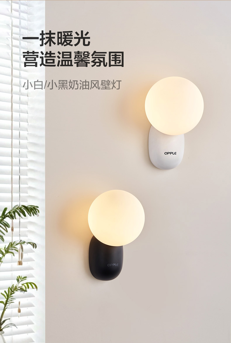 欧普(OPPLE)壁灯田园现代中式卧室床头过道走廊装饰墙灯小白小黑
