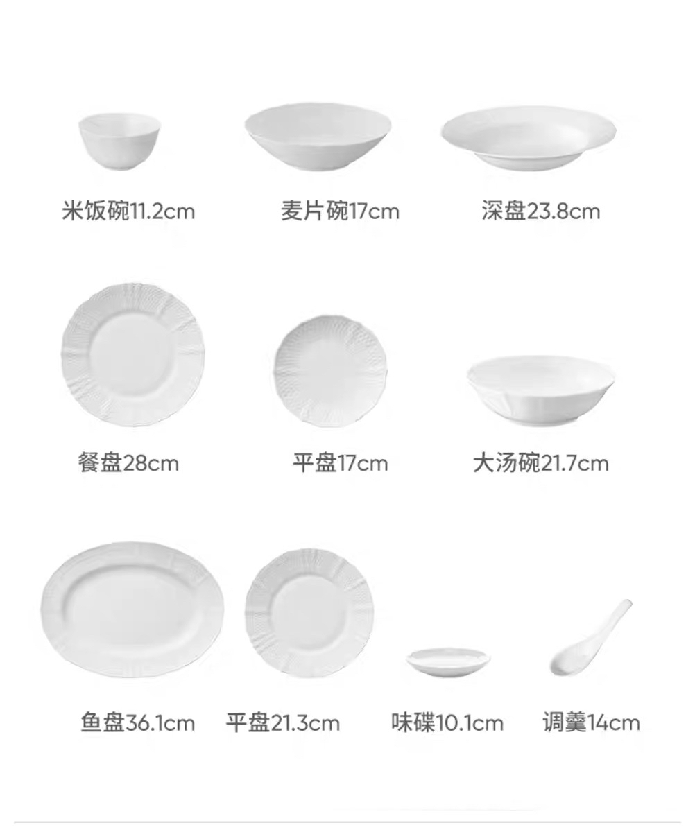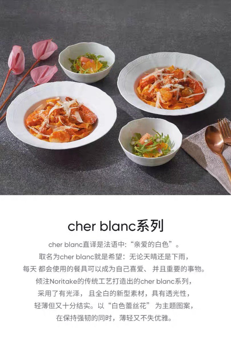 Noritake则武 cher blanc进口浮雕餐具套装纯白餐盘套组家用送礼