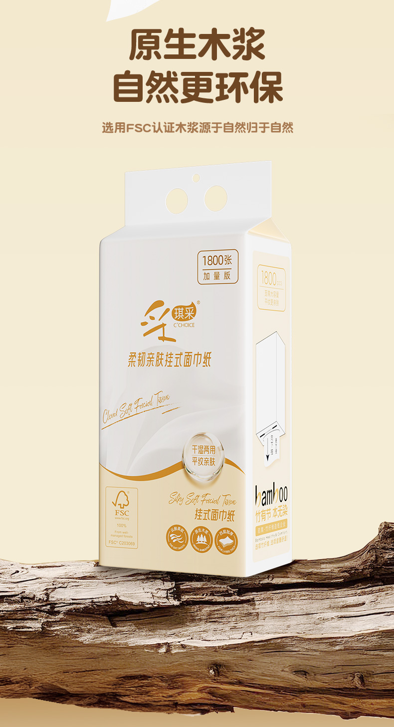 若禺采琪采系列挂式软抽4层加厚加大款1800张/提原生木浆柔软舒适1件16提RR1302
