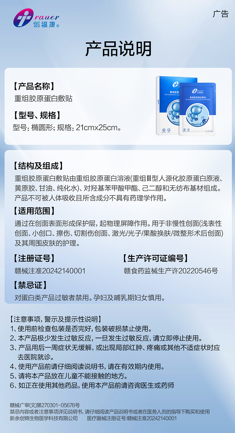 【800浓度】创福康 Ⅱ类胶原贴敷料(不参与店铺任何活动)