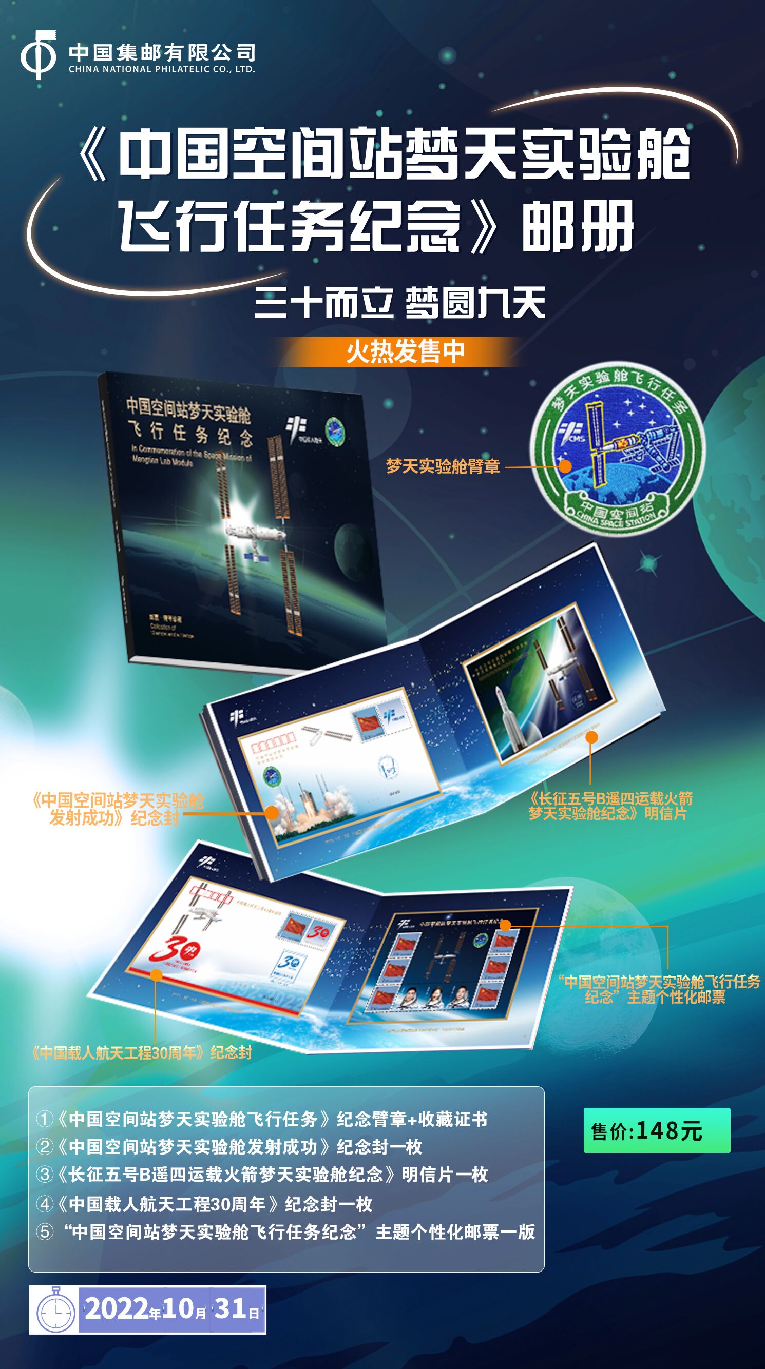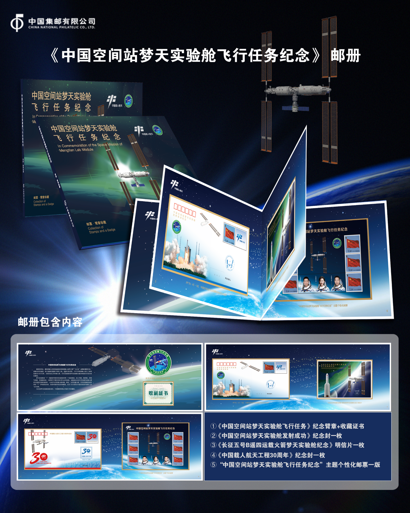 “中国空间站梦天实验舱飞行任务纪念”主题《国旗》主图6枚版个性化邮票