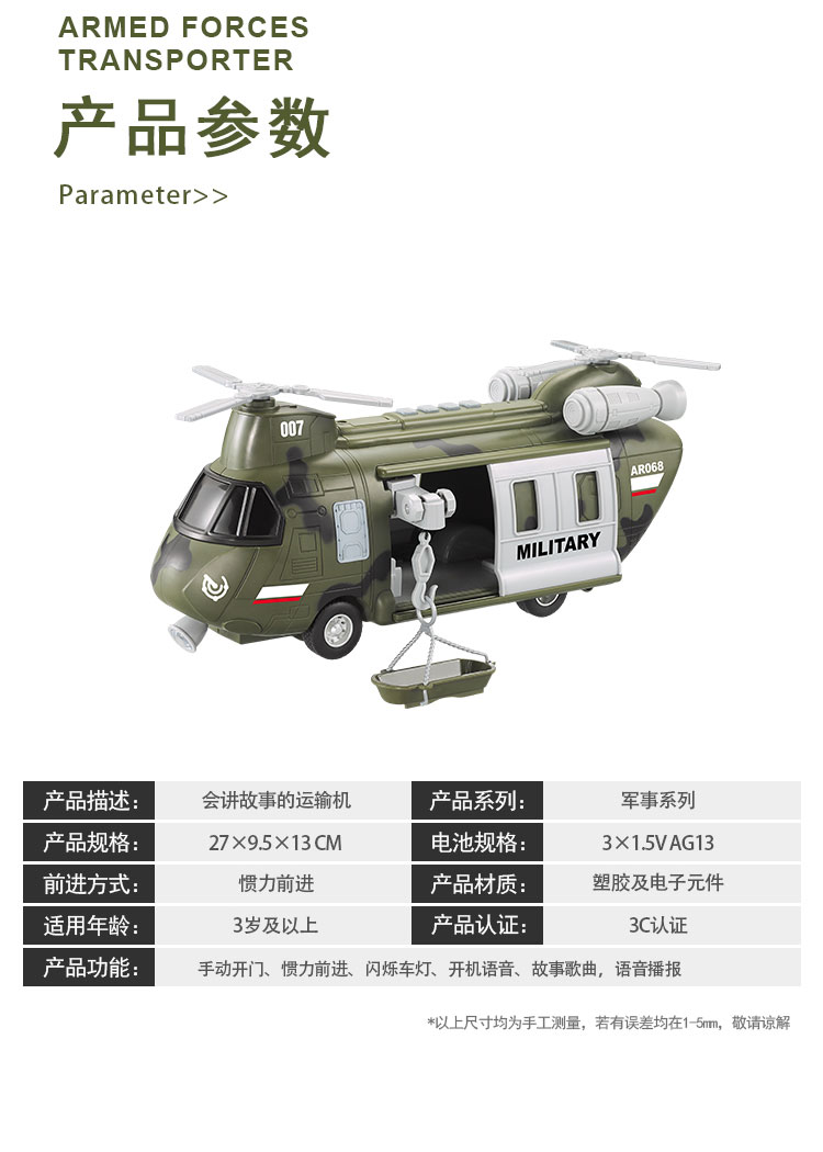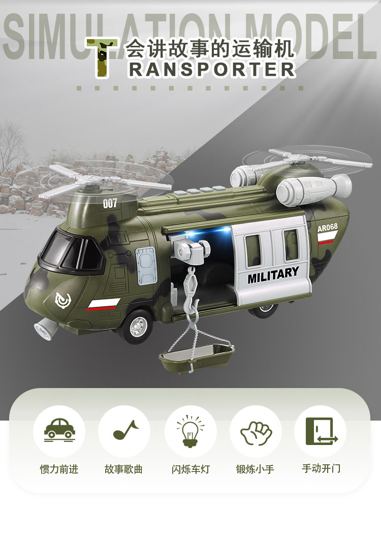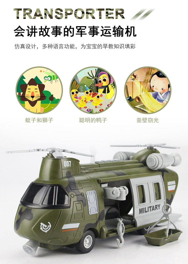 文艺1:16惯性军事飞鹰运输机(会讲故事,灯光音乐)W641A