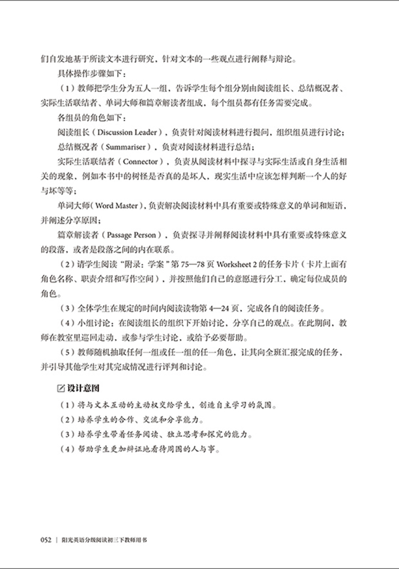 《阳光英语分级阅读初三下教师用书》配合阳光英语初三下套装的9册英文读物使用,收录了9个优秀课例,帮助老师上好初三下学期的阅读/读写课。本书由四川教育科学研究所外语教研员覃文胜老师担任分册主编,优秀一线英语教师编写,为每一本读物撰写了详细的文本分析,为每一个课例设计清晰的思维导图、明确的教学目标、丰富的阅读学案以及具有综合性、关联性和实践性的课堂教学活动。配合使用的英语读物为