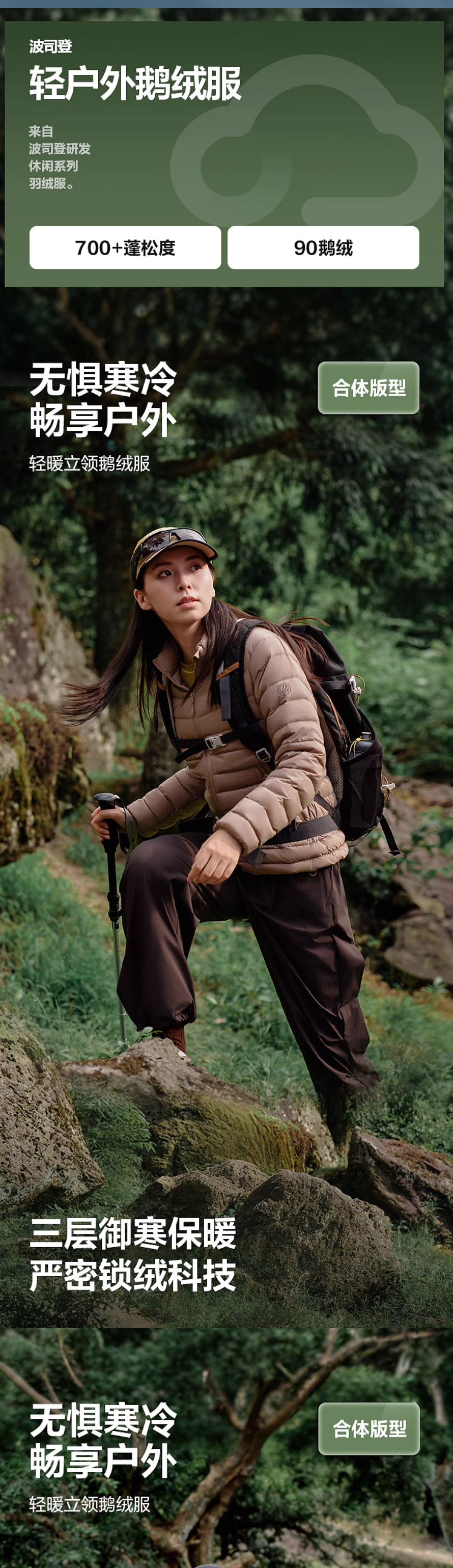 波司登25秋新款鹅绒排骨条立领羽绒服B250131046
