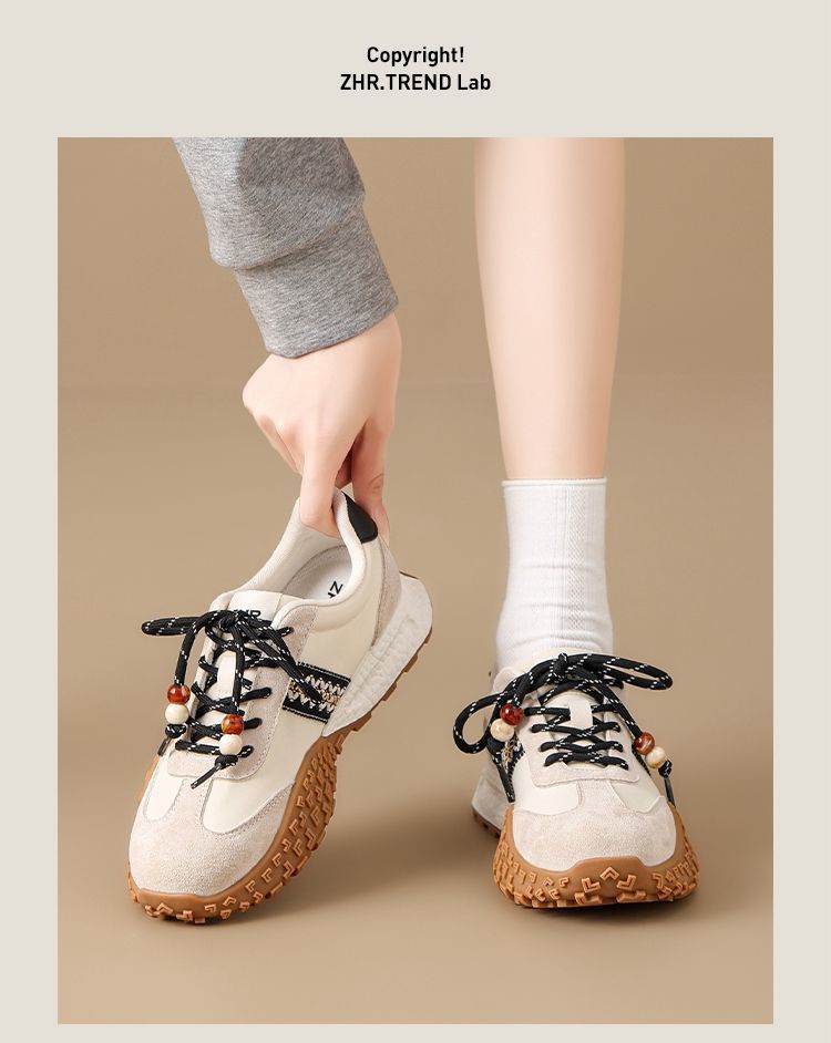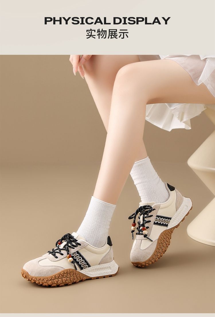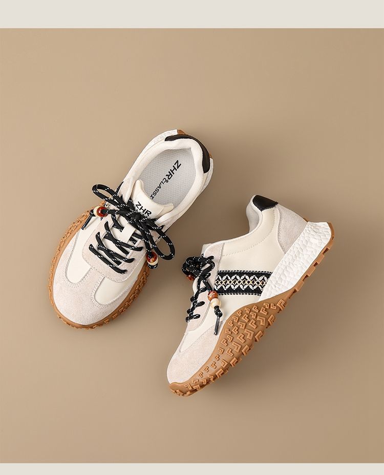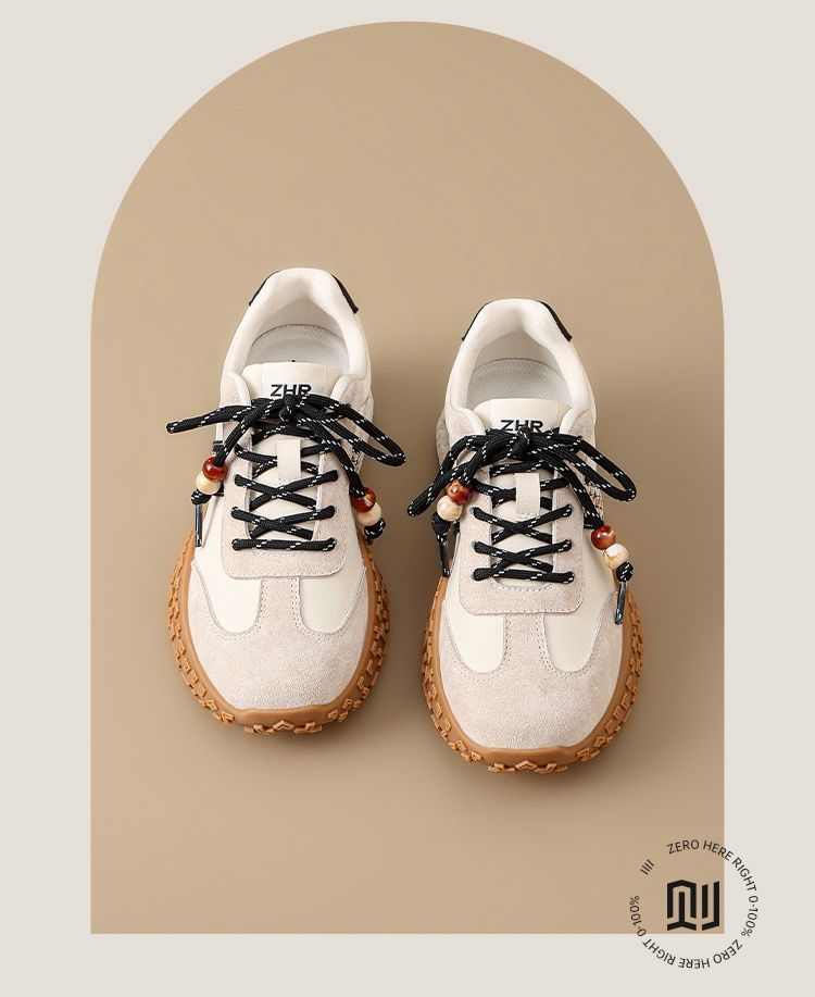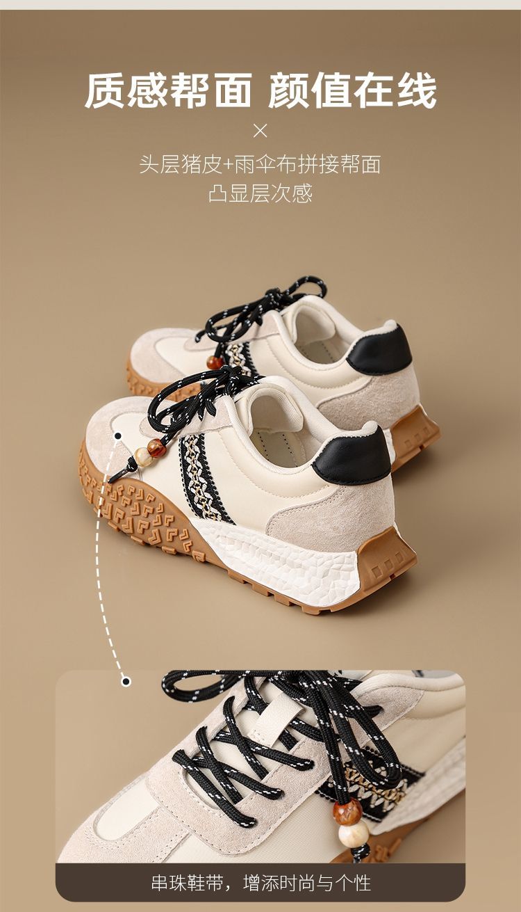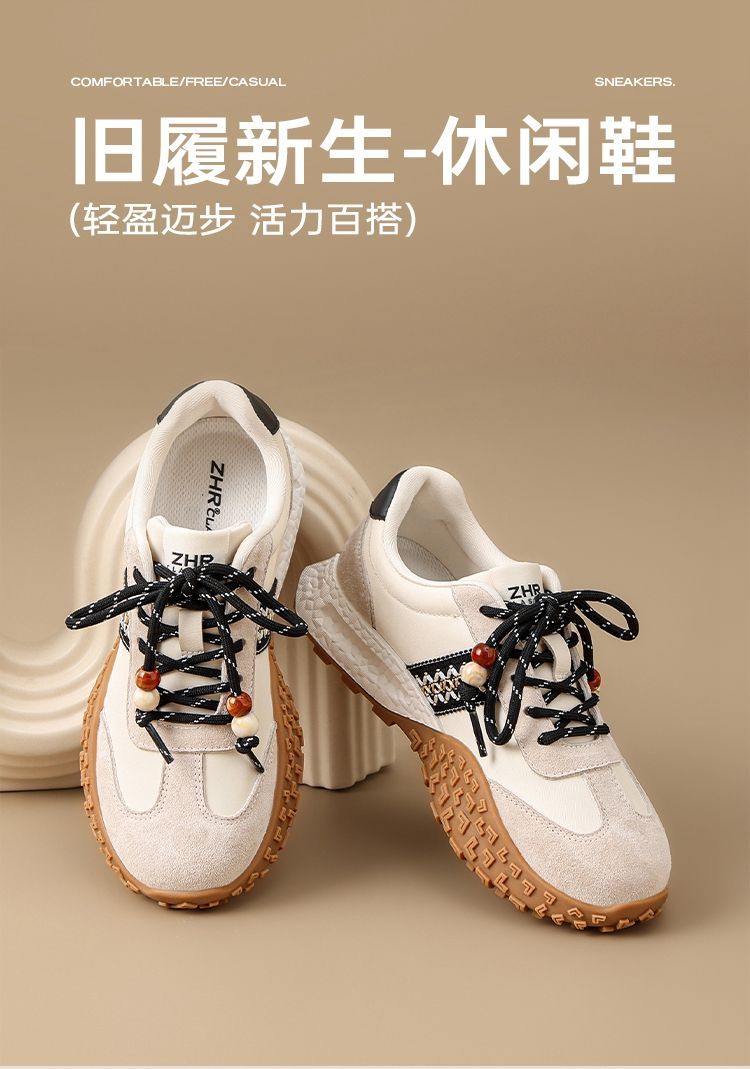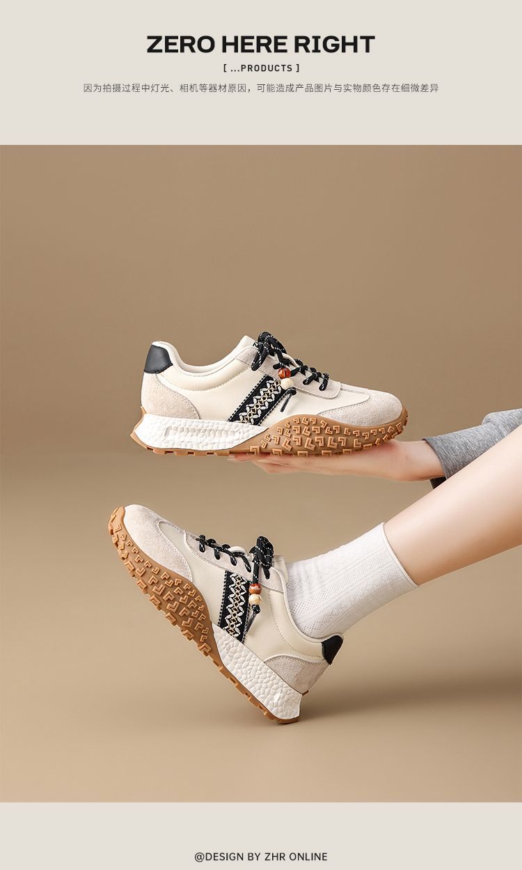 ZHR真皮德训鞋女2025秋季新款百搭复古阿甘鞋软底透气休闲运动鞋