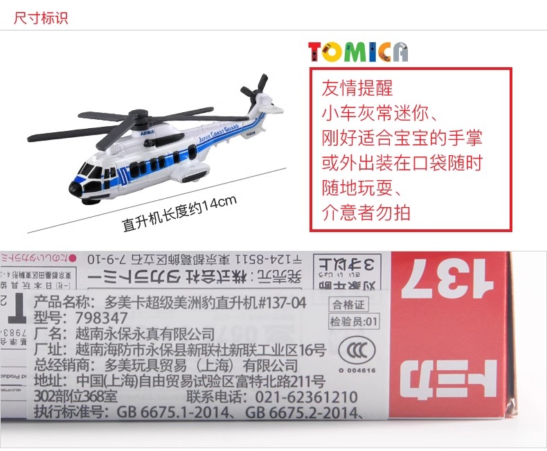 TOMY多美卡合金仿真模型137号日本警卫队超级美洲豹直升机 3岁+