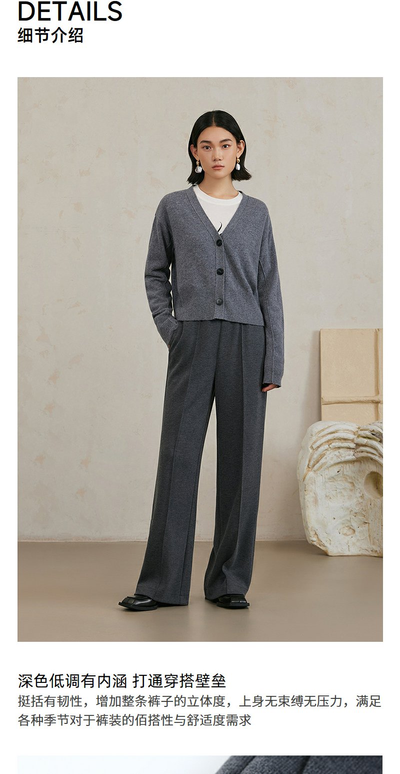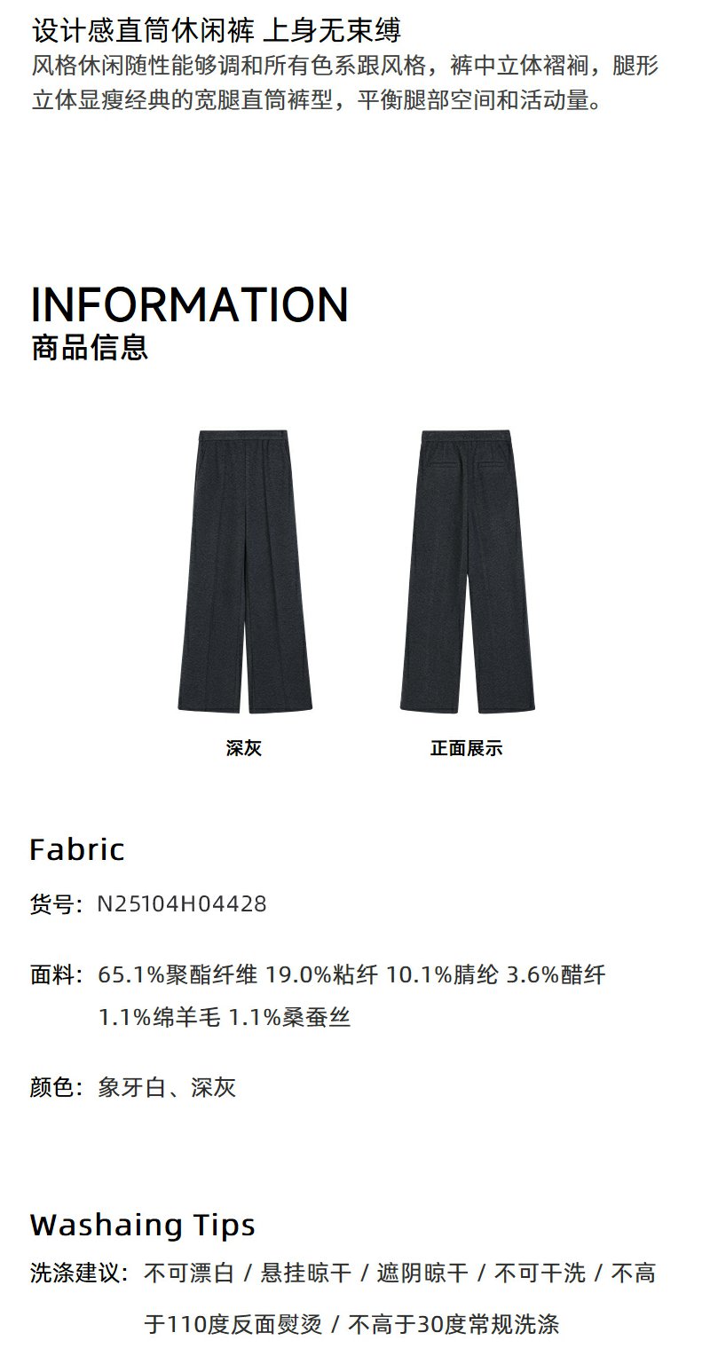 NEELLY纳俪商场同款冬季新款高级灰色肌理感休闲裤女显瘦爆款裤子N25104H04428