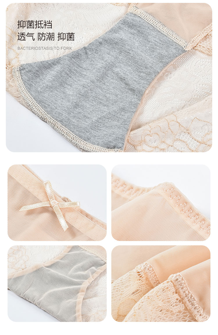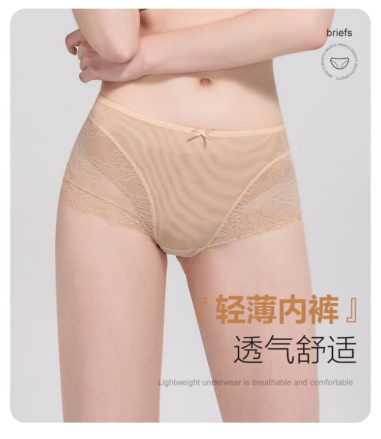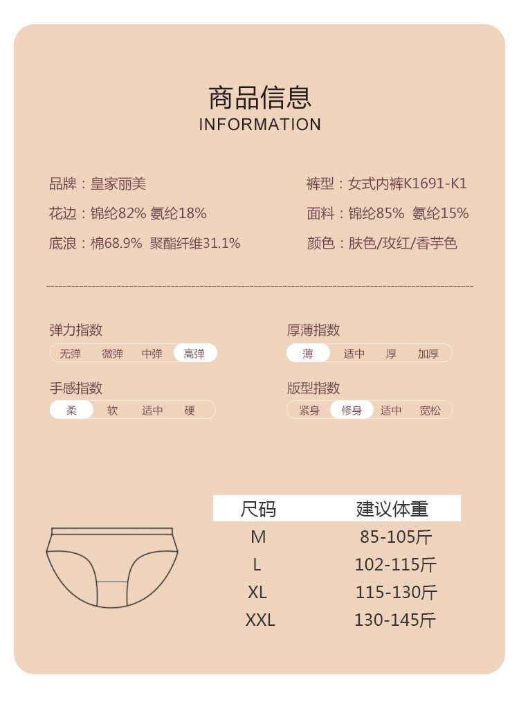 【99元5条,下单拍5】皇家丽美女士内裤中腰平角裤棉裆蕾丝底裤大码裤裤子「内裤品类特殊不支持退换哦~」K1691-K1