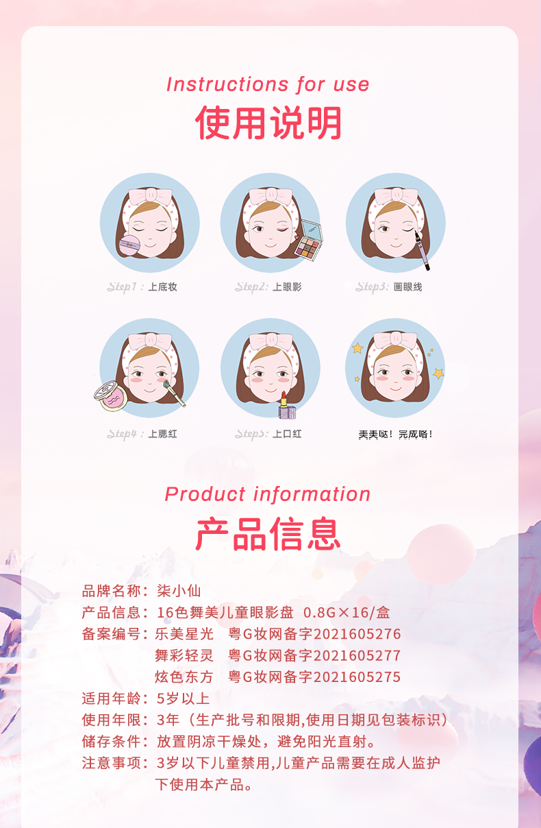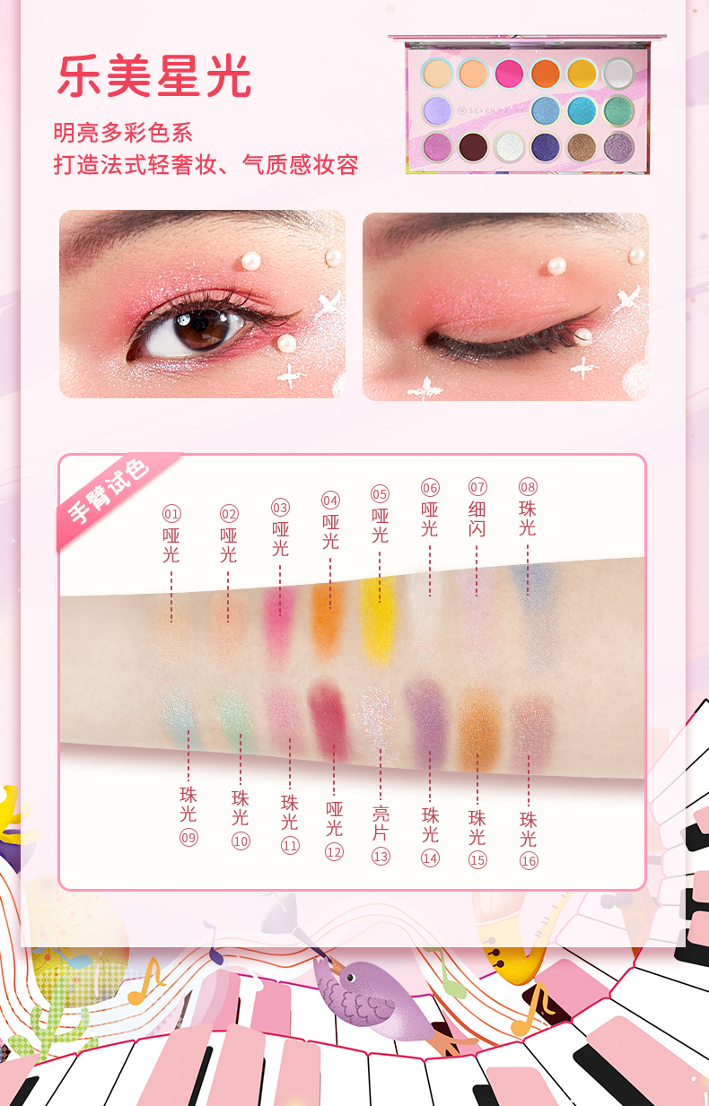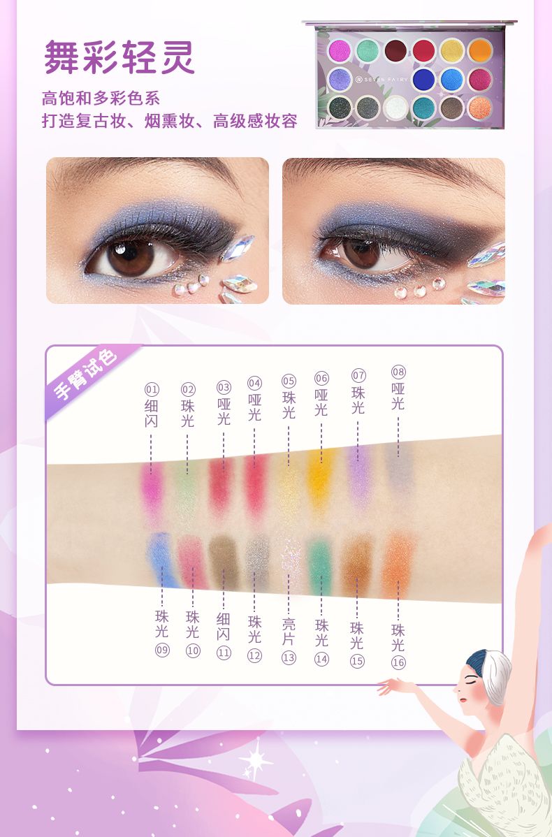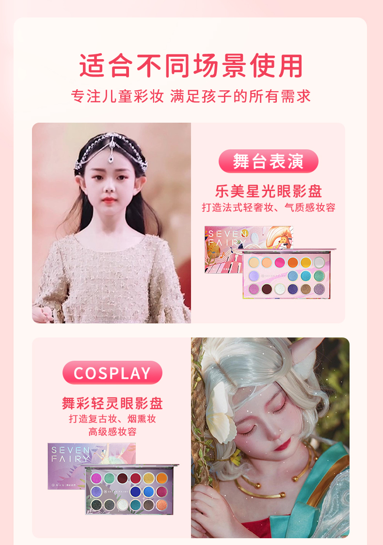 柒小仙 16色舞美儿童眼影盘 舞台妆晶晶闪粉眼亮片六一儿童节幼儿园表演专用