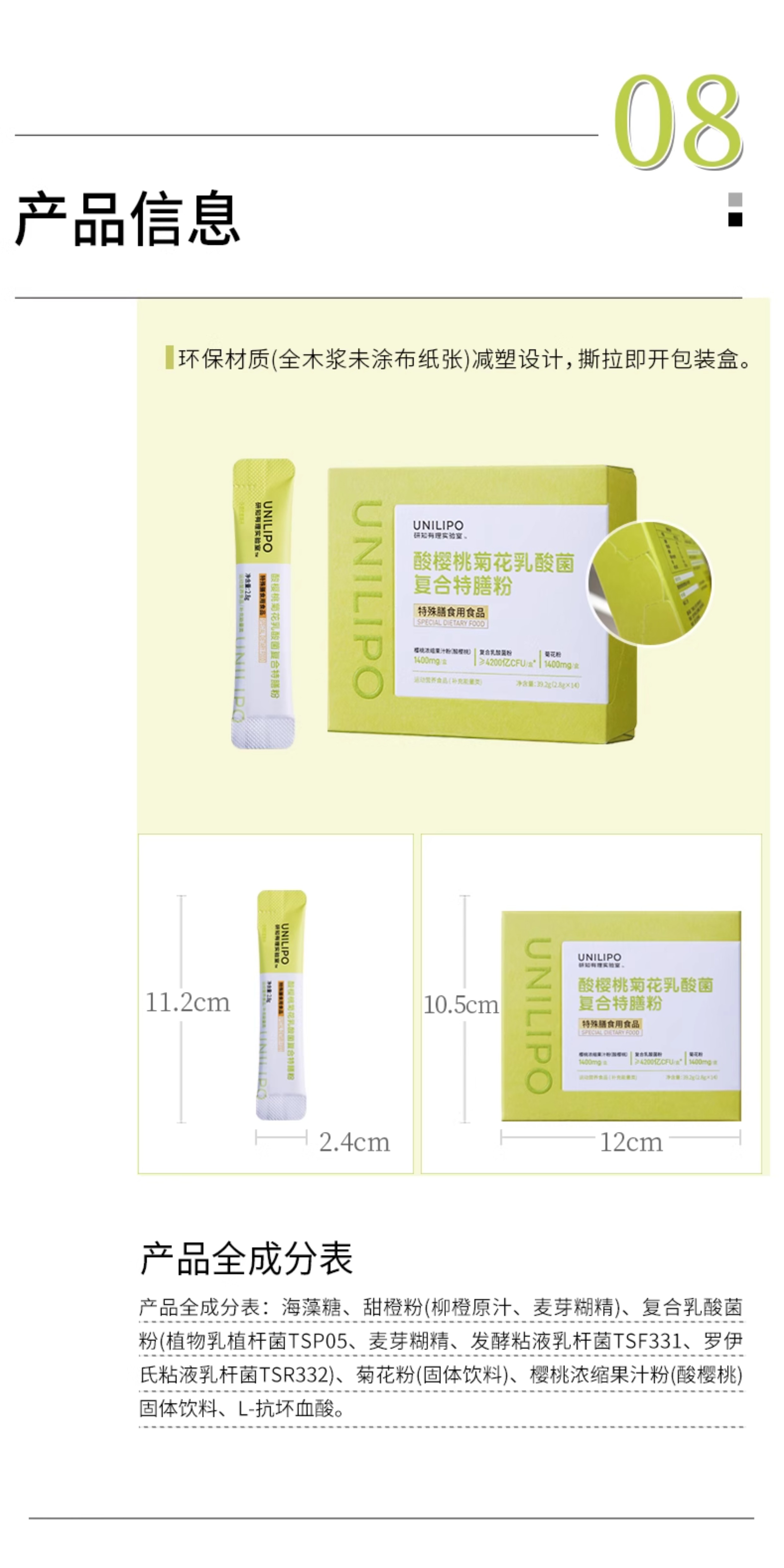 UNILIPO研知有理 酸樱桃菊花乳酸菌 关节特殊膳食降风下酸