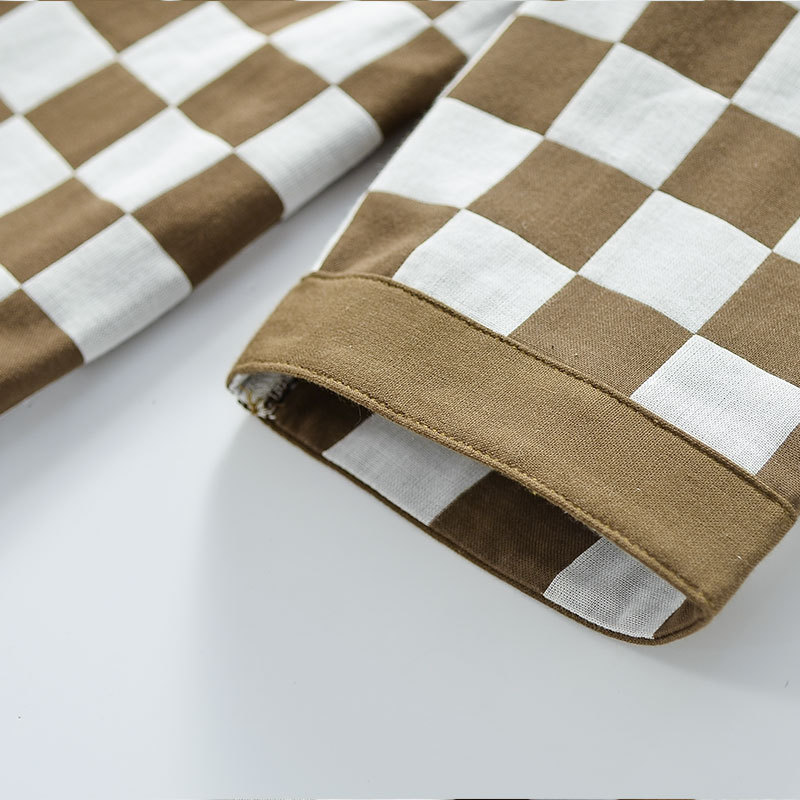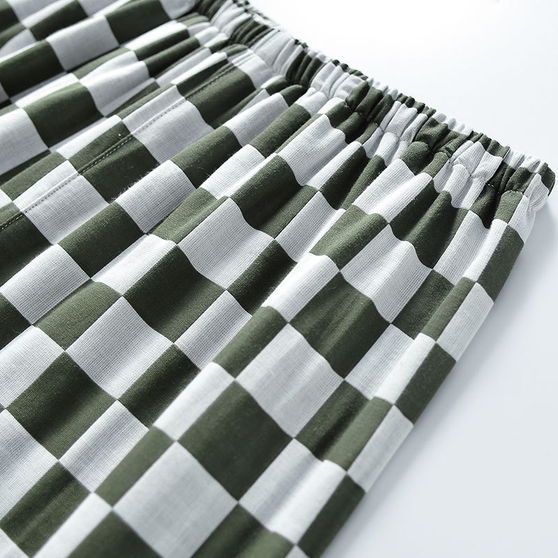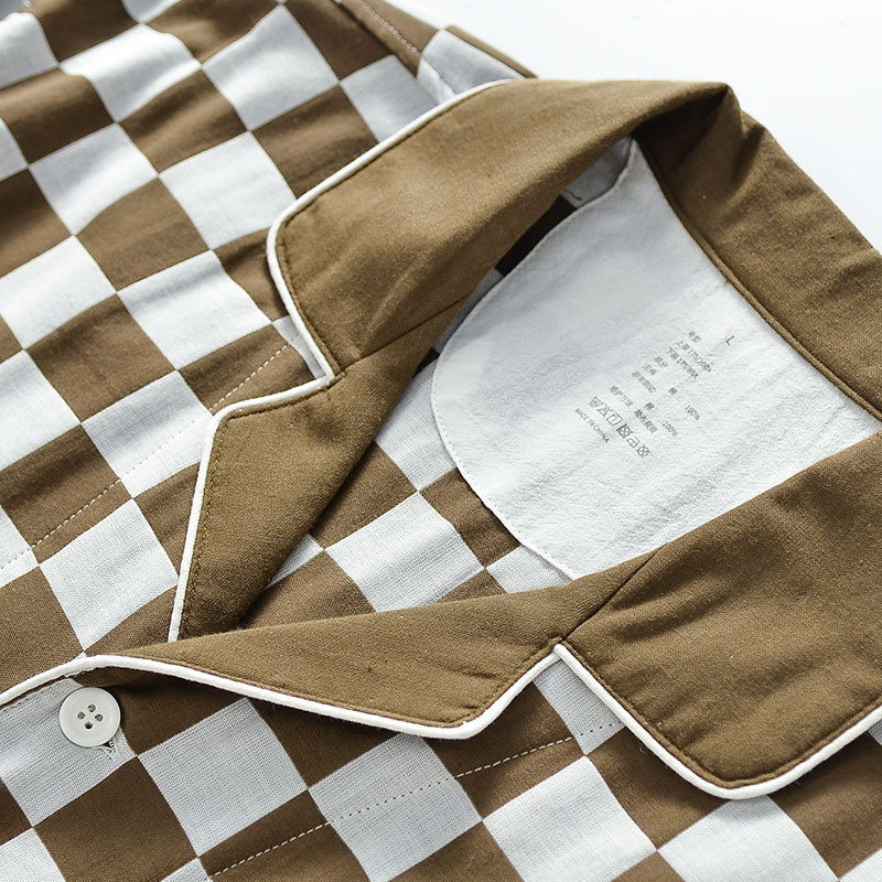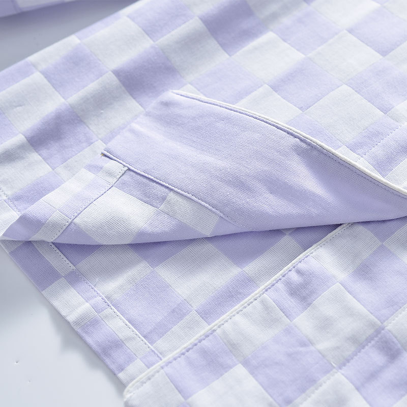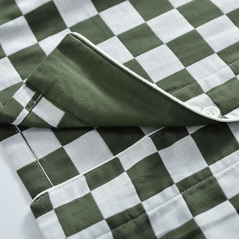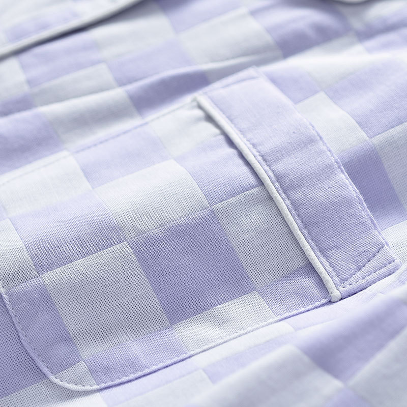 【棋盘格家居服】双层纱家居服格子情侣睡衣全棉长袖长裤居家服套装新