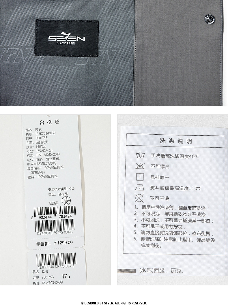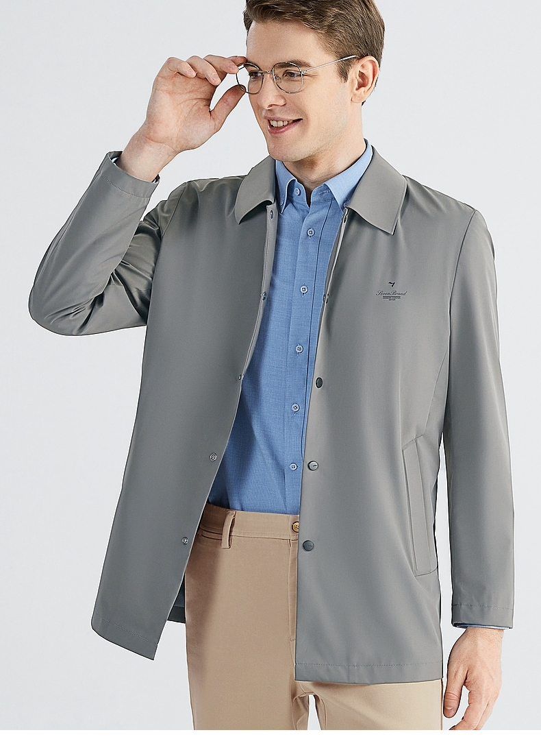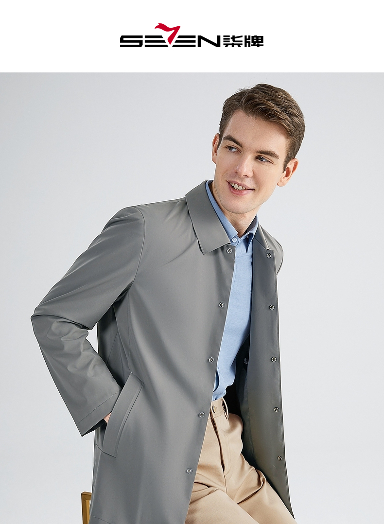 【特价】【厅里厅气】柒牌男秋款时尚潮流暗格子翻领防风外套123K70340