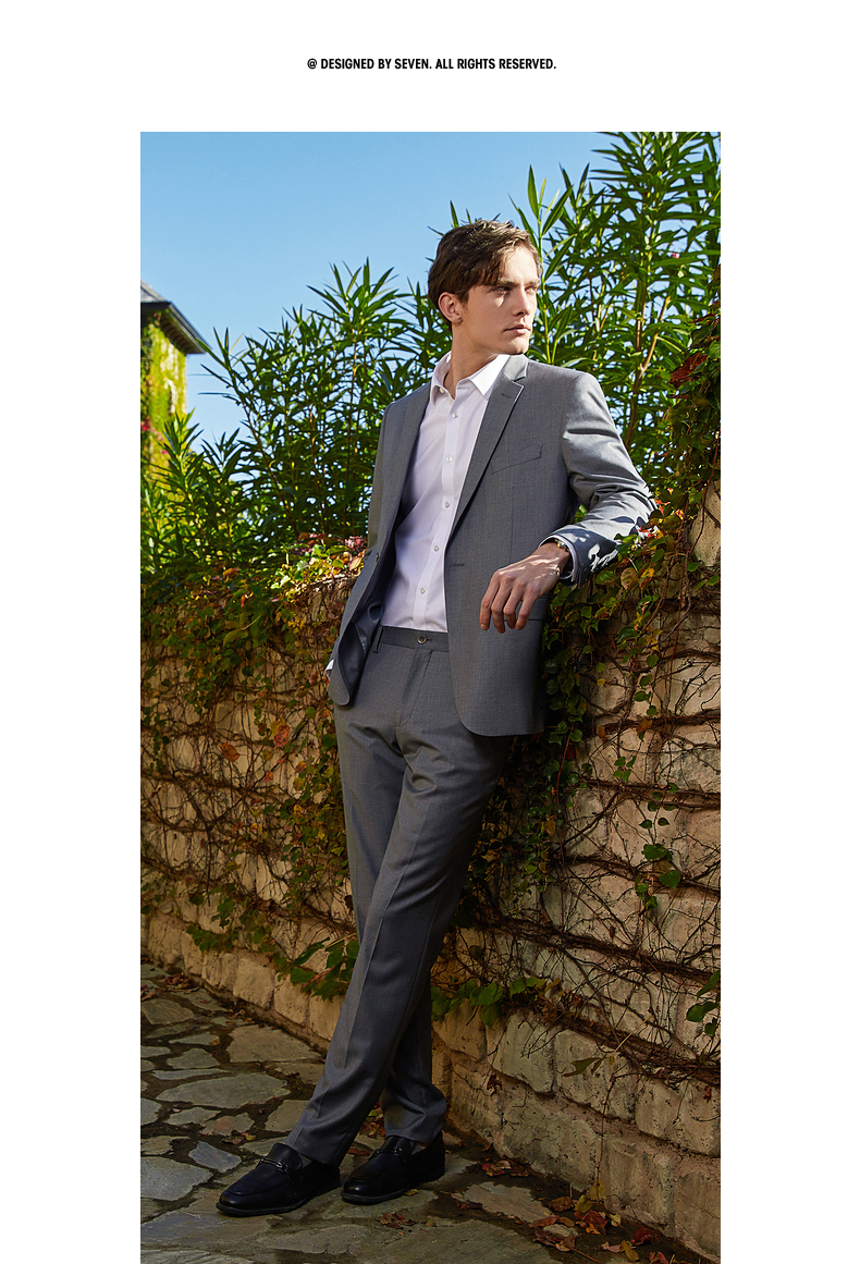 柒牌男士西服春季新款商务休闲中青年绅士平驳领西装单西外套 124C70300