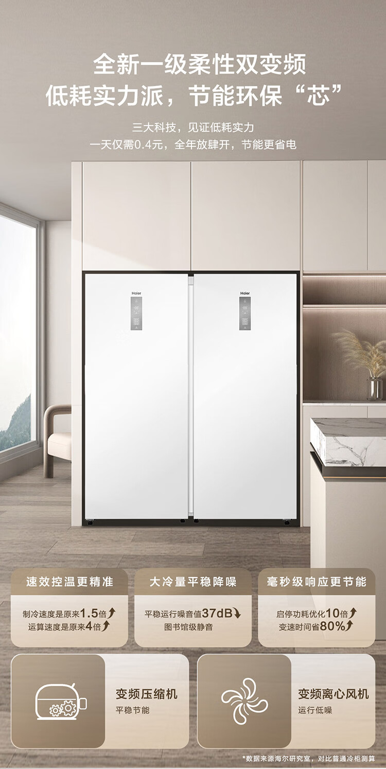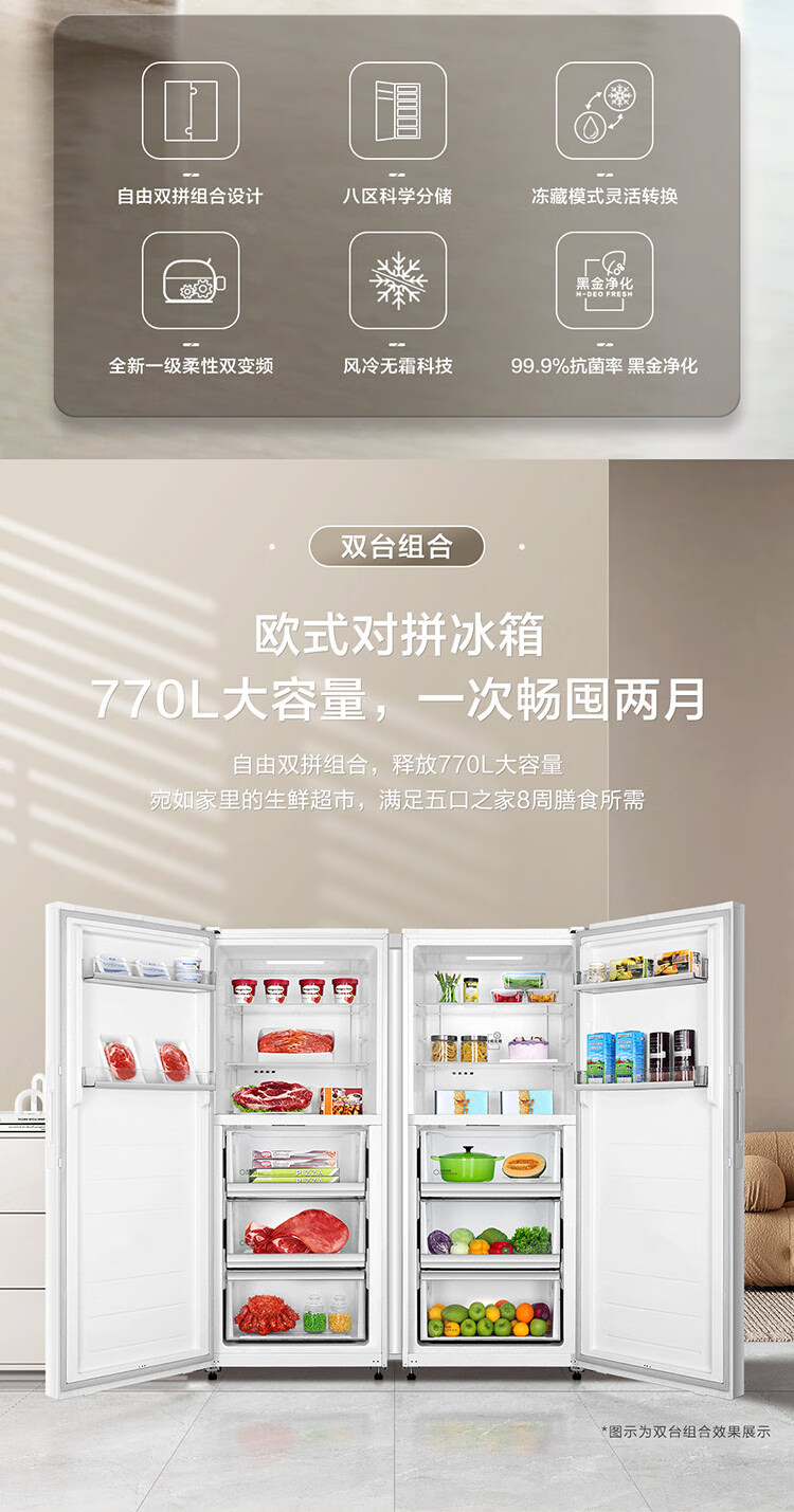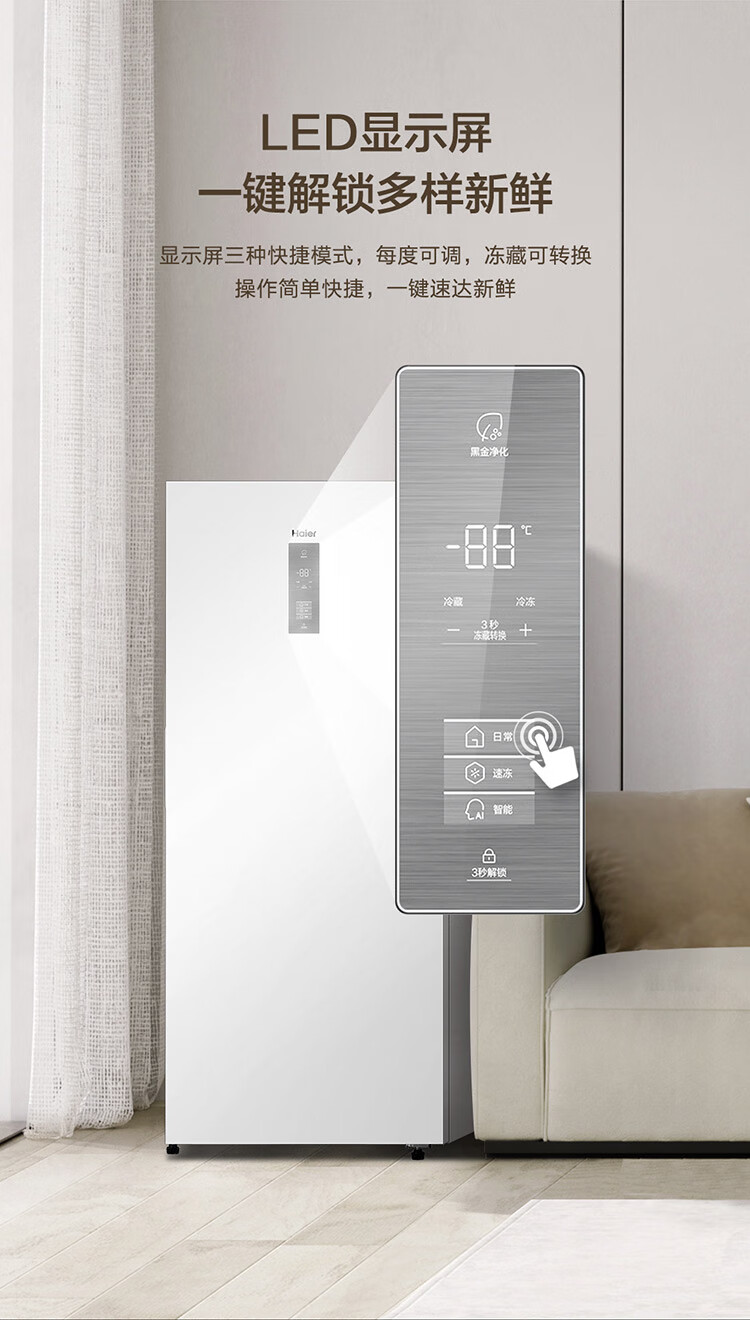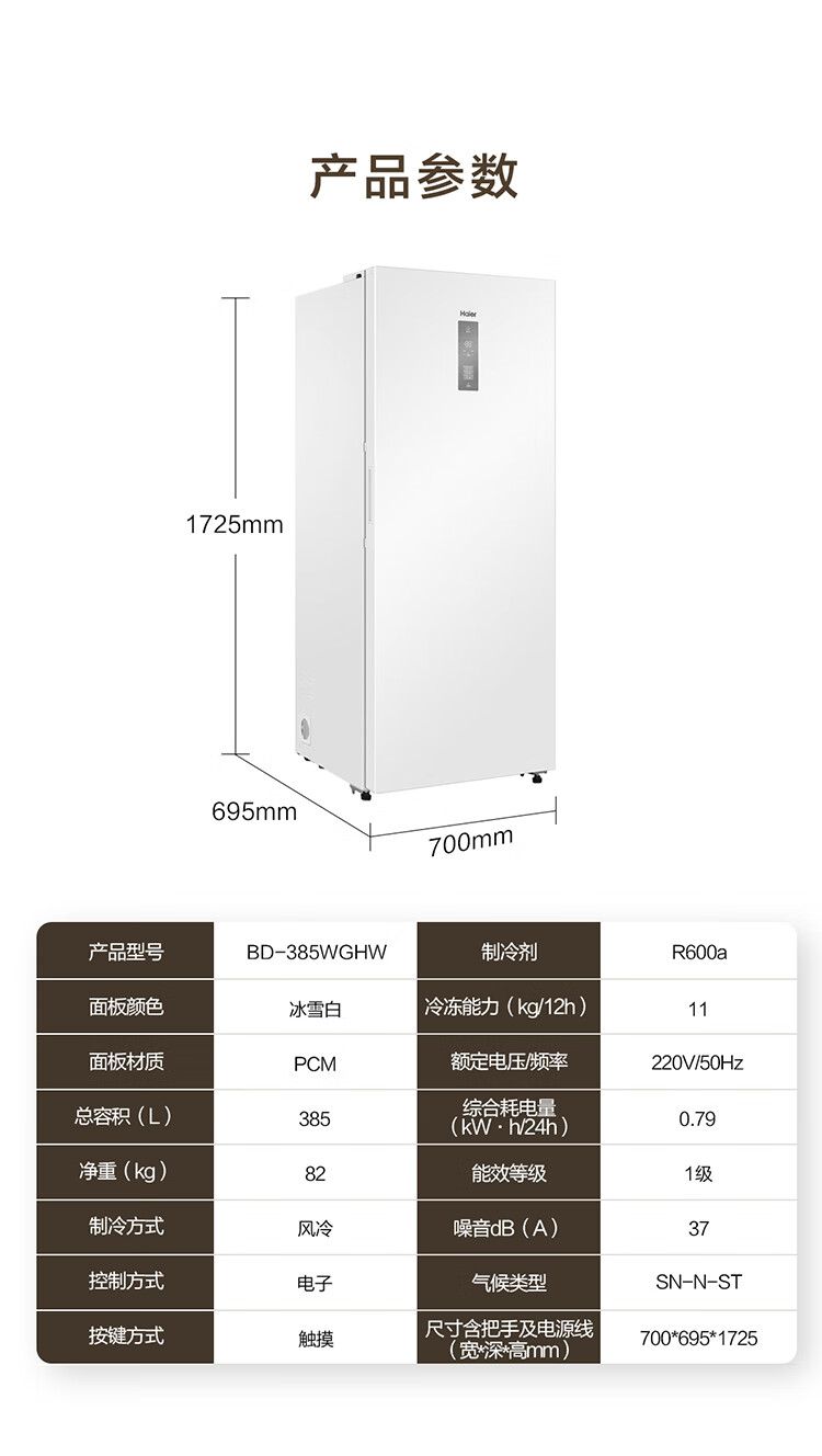 海尔(Haier)立式冰柜 家用385升可对开门大冷柜风冷无霜一级能效超大容量冷冻抽屉700mm宽 一级双变频+风冷无霜科技+黑金净化 385L