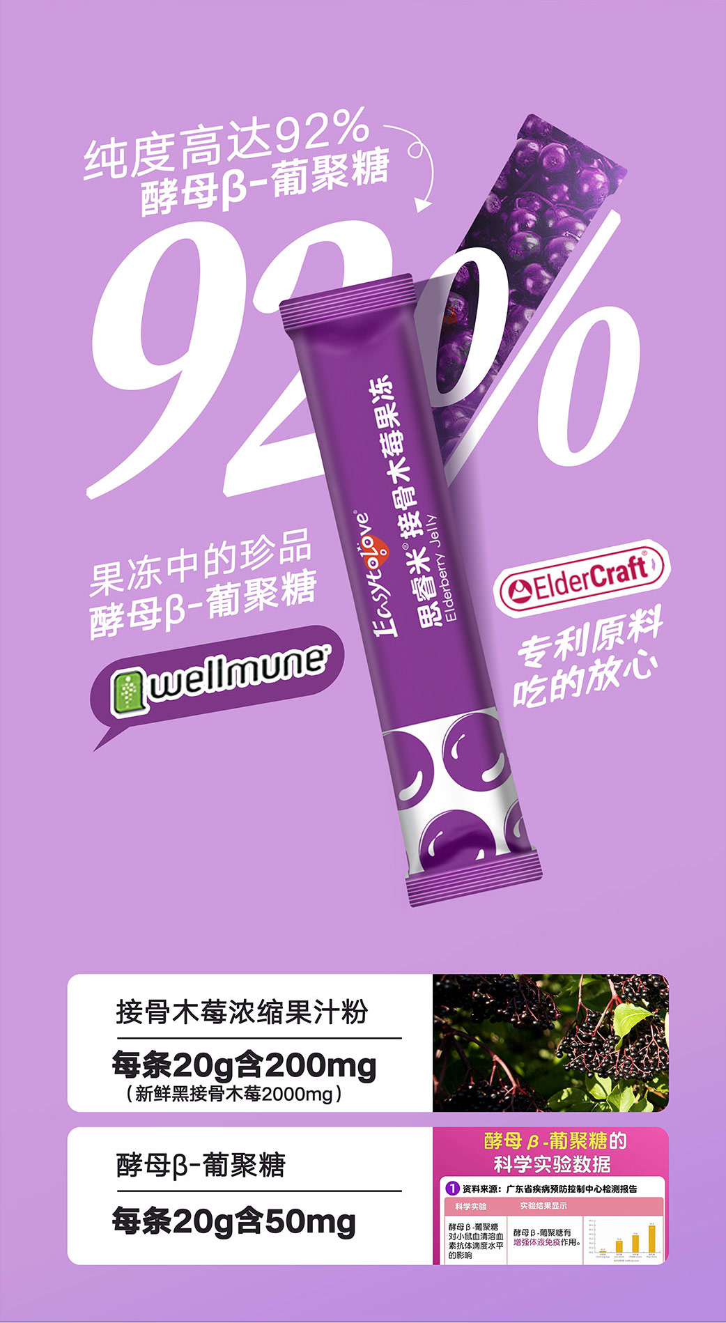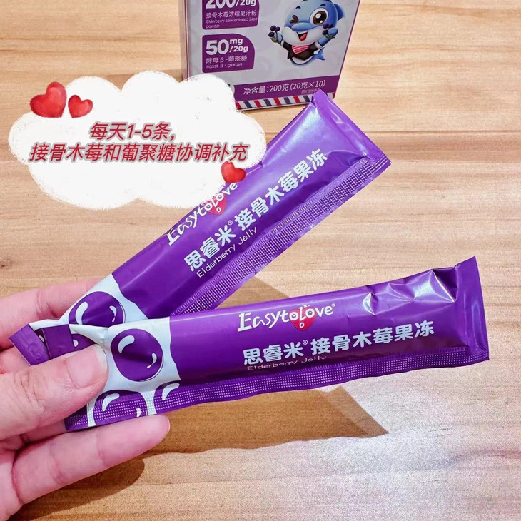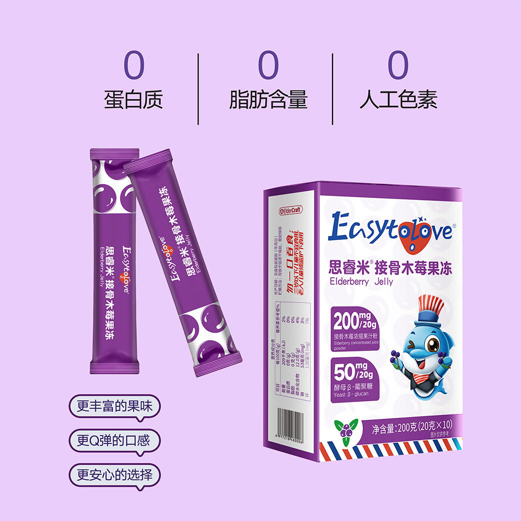 ⁵店庆活动【思睿米接骨木莓果冻条】每条含200mg浓缩接骨木莓粉+50mgβ-葡聚糖 20g*10条/盒 YY05-QTT-ZY